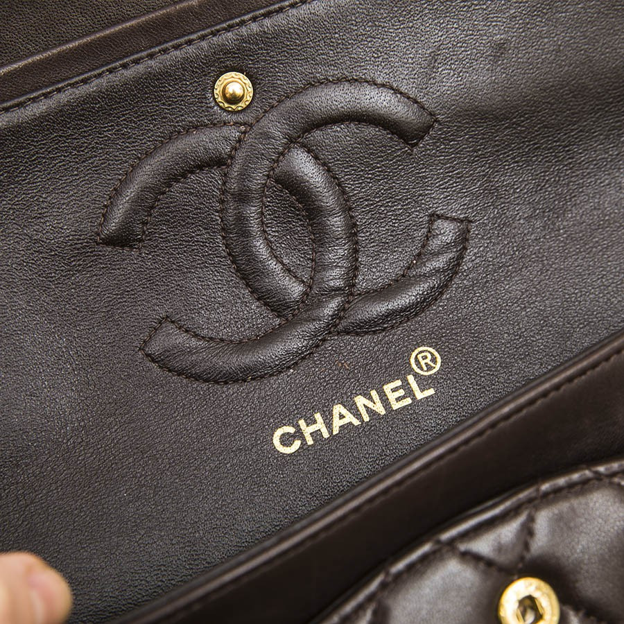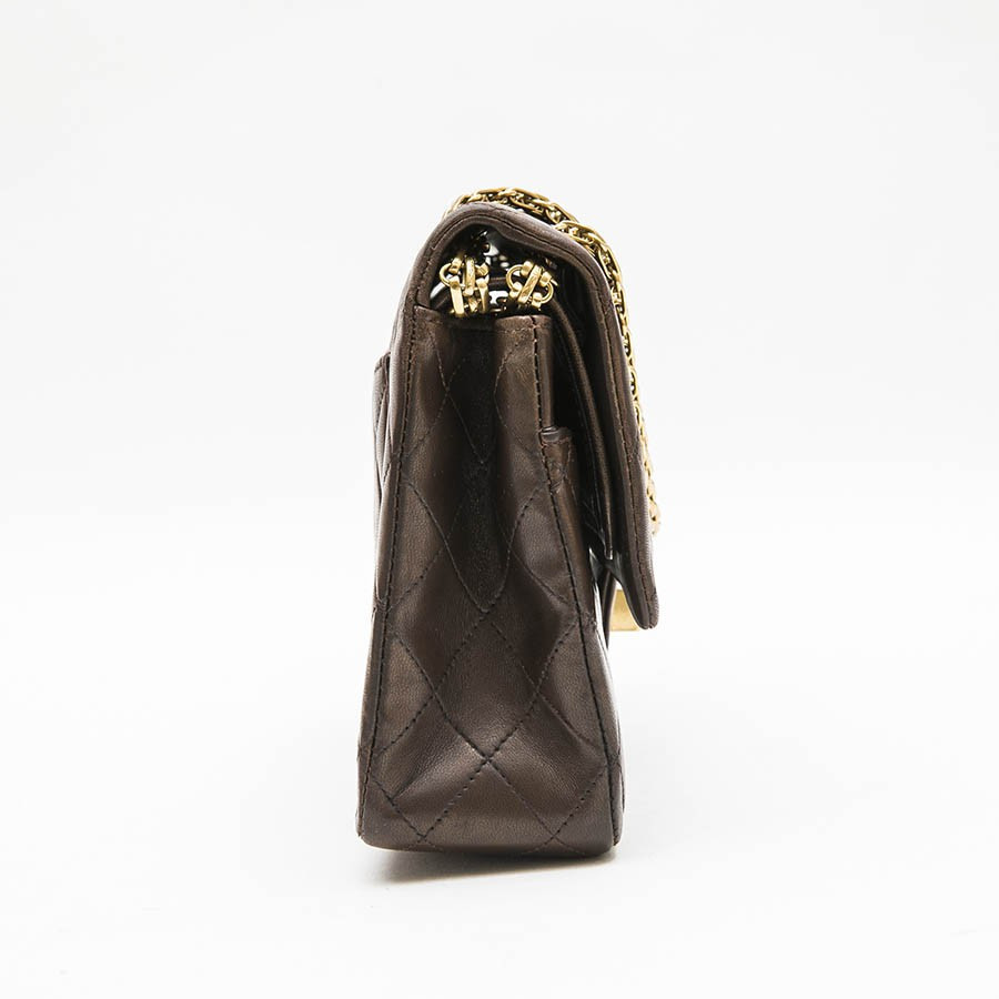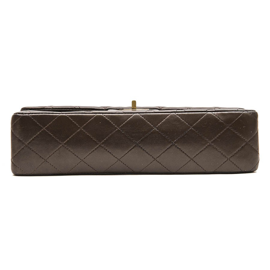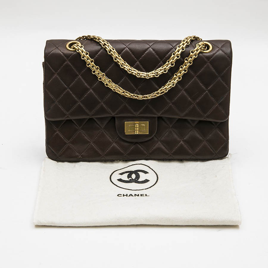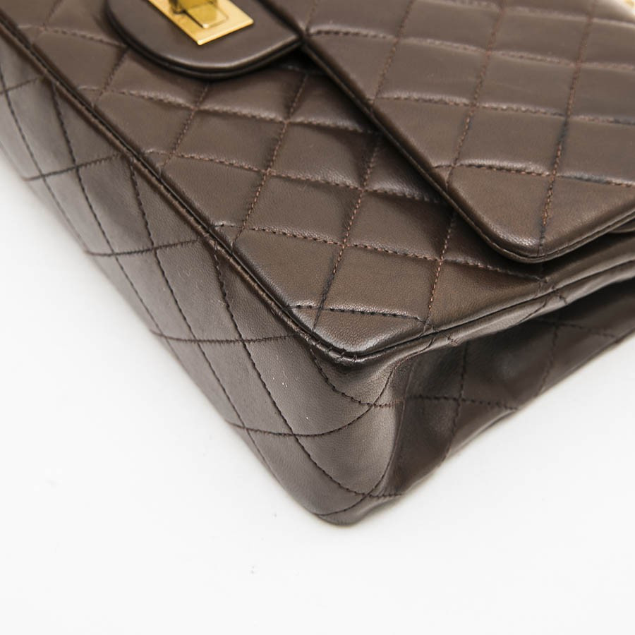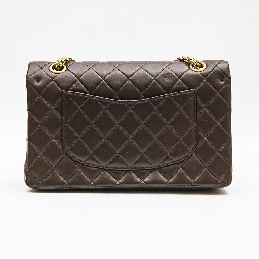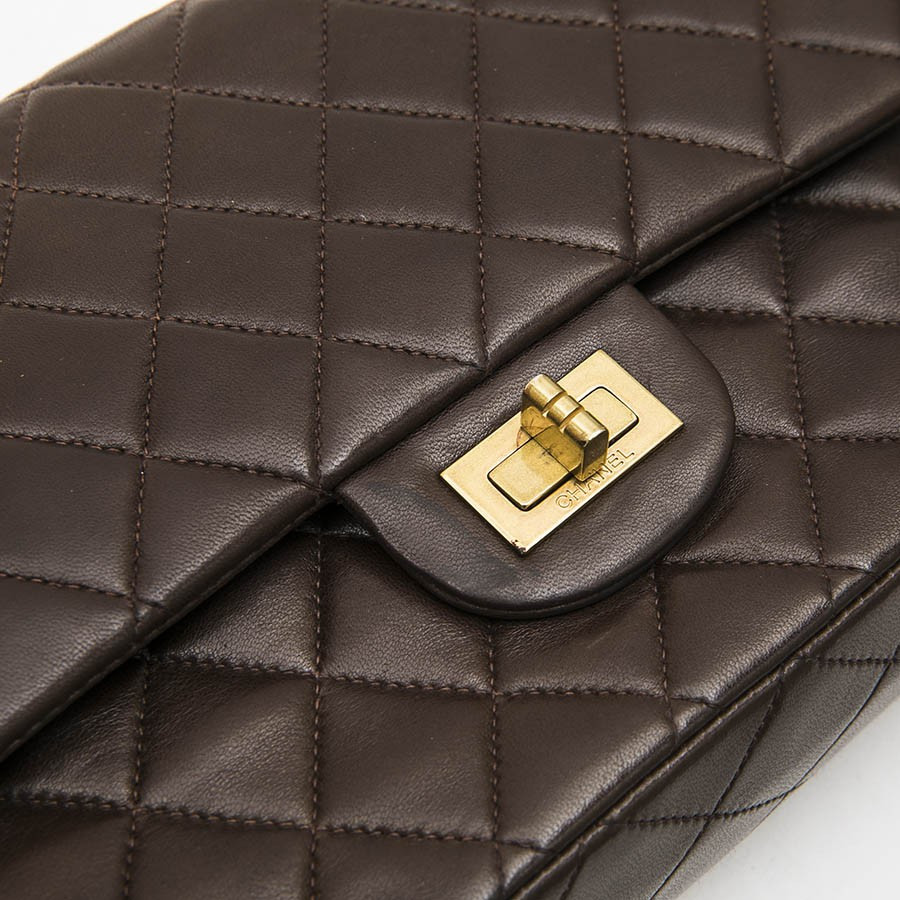 Sac Chanel en cuir d'agneau lisse matelassé marron. boucle 2.55. Accastillage doré.