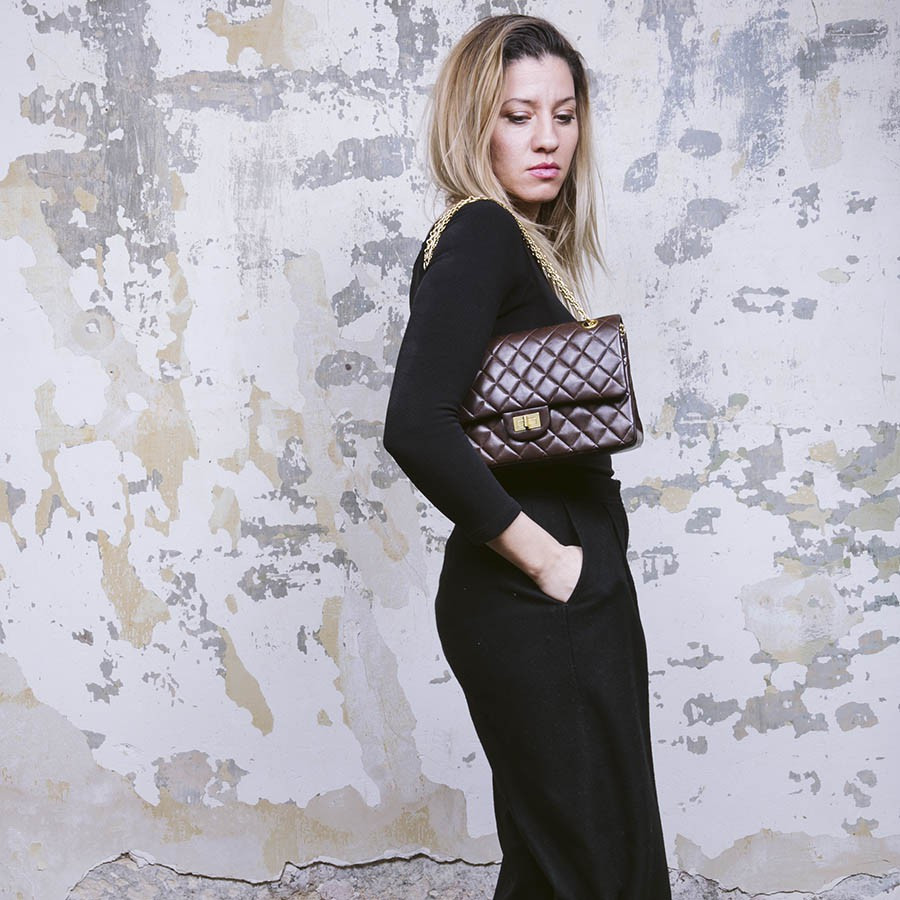 Il a un double rabat avec intérieur doublé entièrement en cuir.La chaine 'coco".