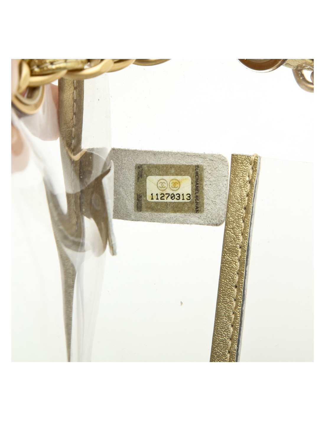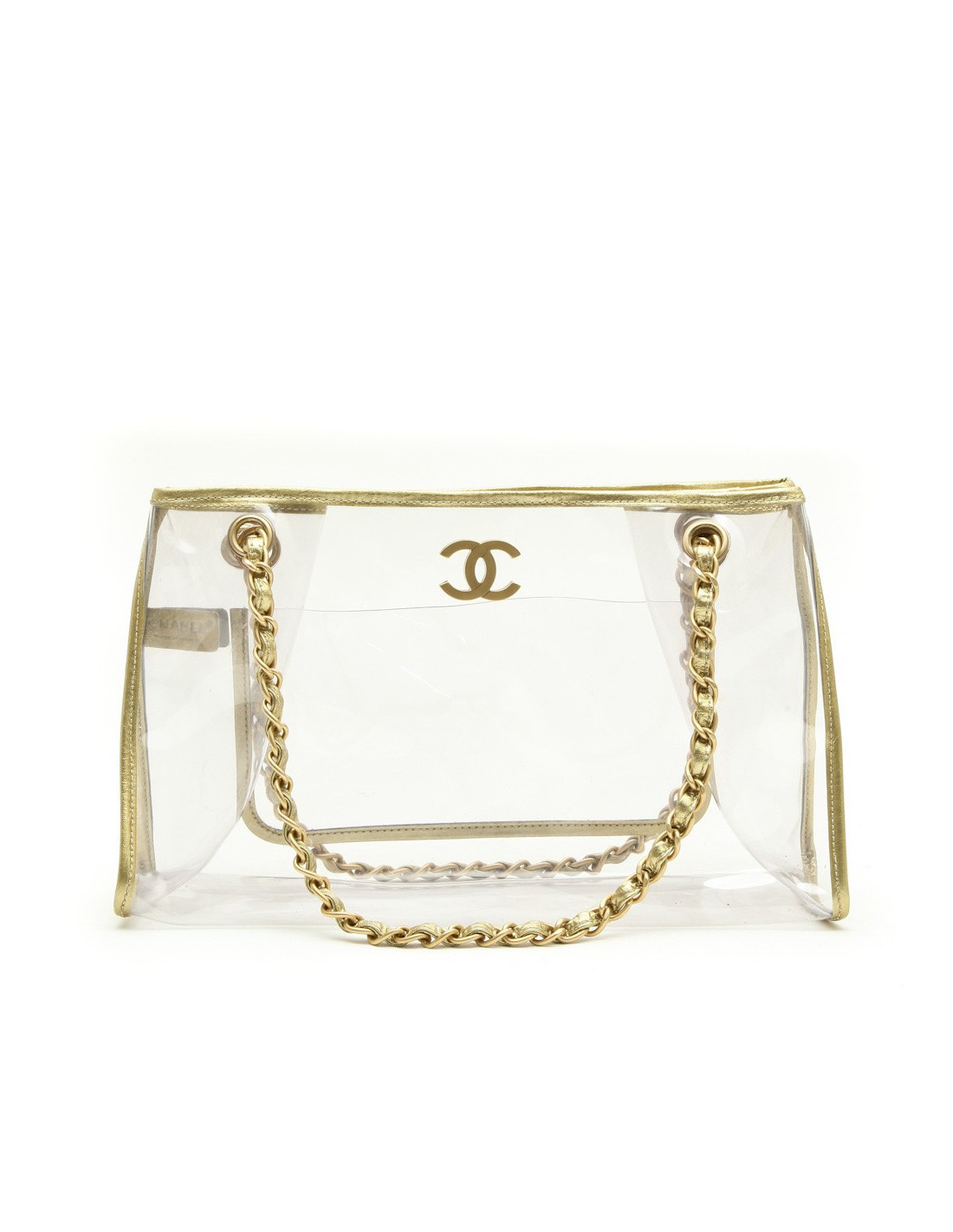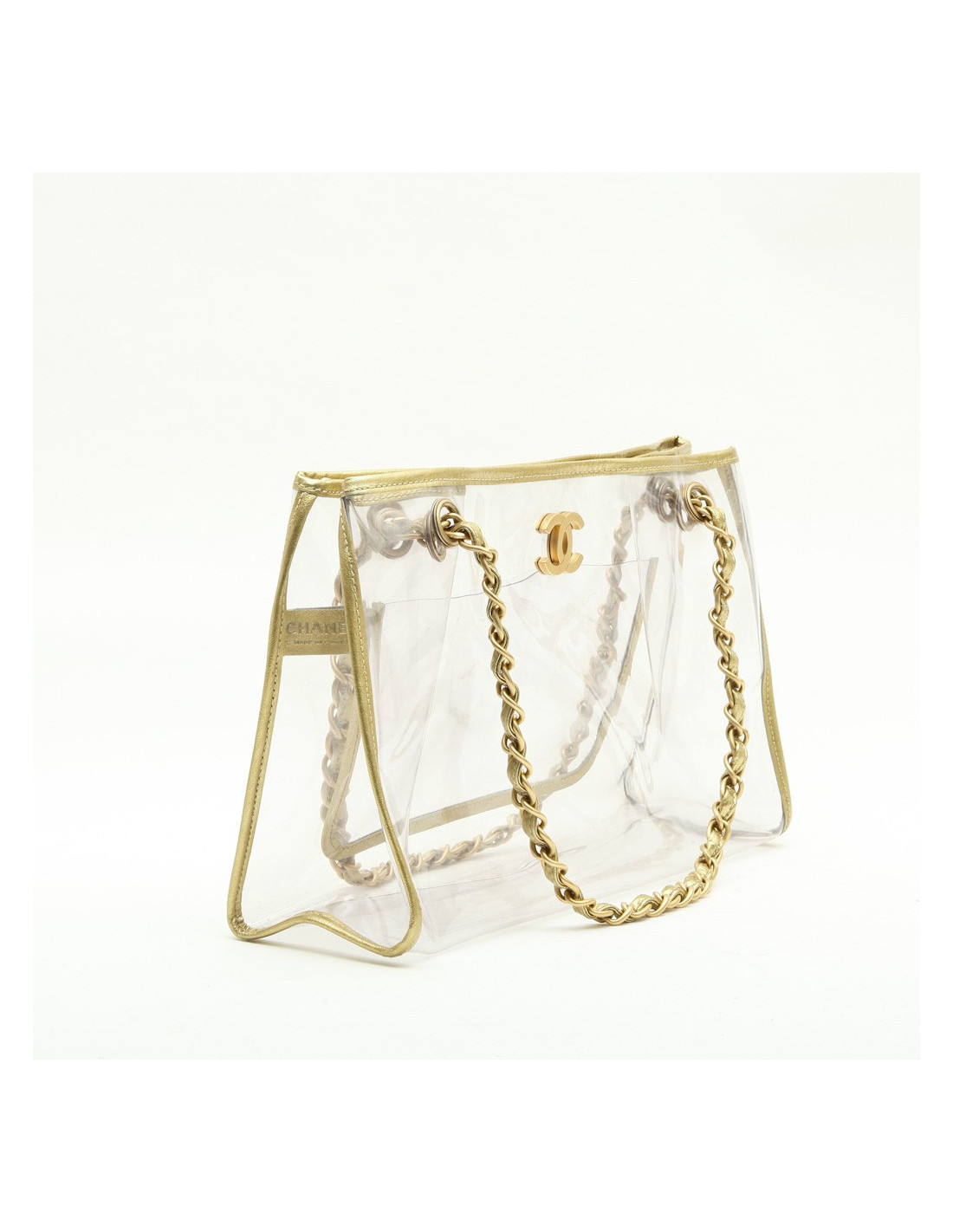 Sac Chanel transparent. Vintage! Bijouterie et cuir doré.