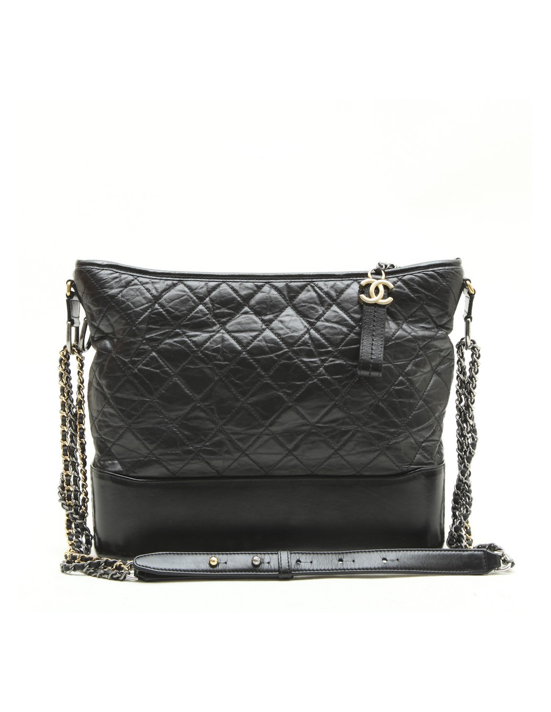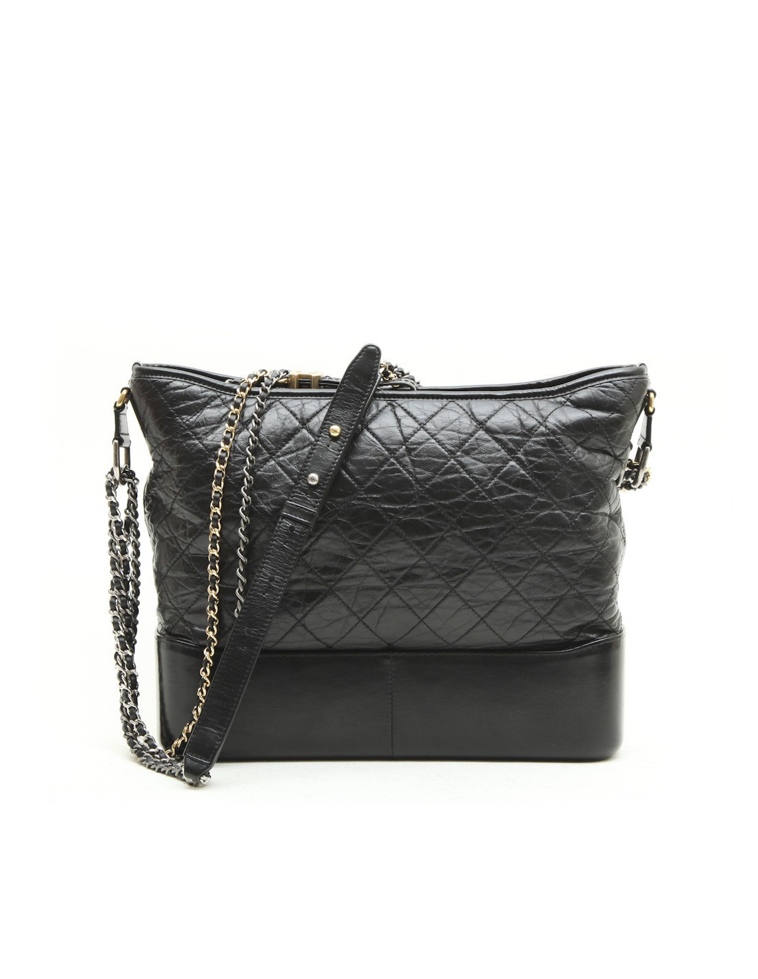 Sac Chanel 'Gabrielle Hobo' en cuir vieilli matelassé noir. Bijouterie dorée et argentée. Fermeture zippée. L'intérieur est en tissu rose. Hologramme : 2384... pas de carte d'authenticité. ventes privées 2017.