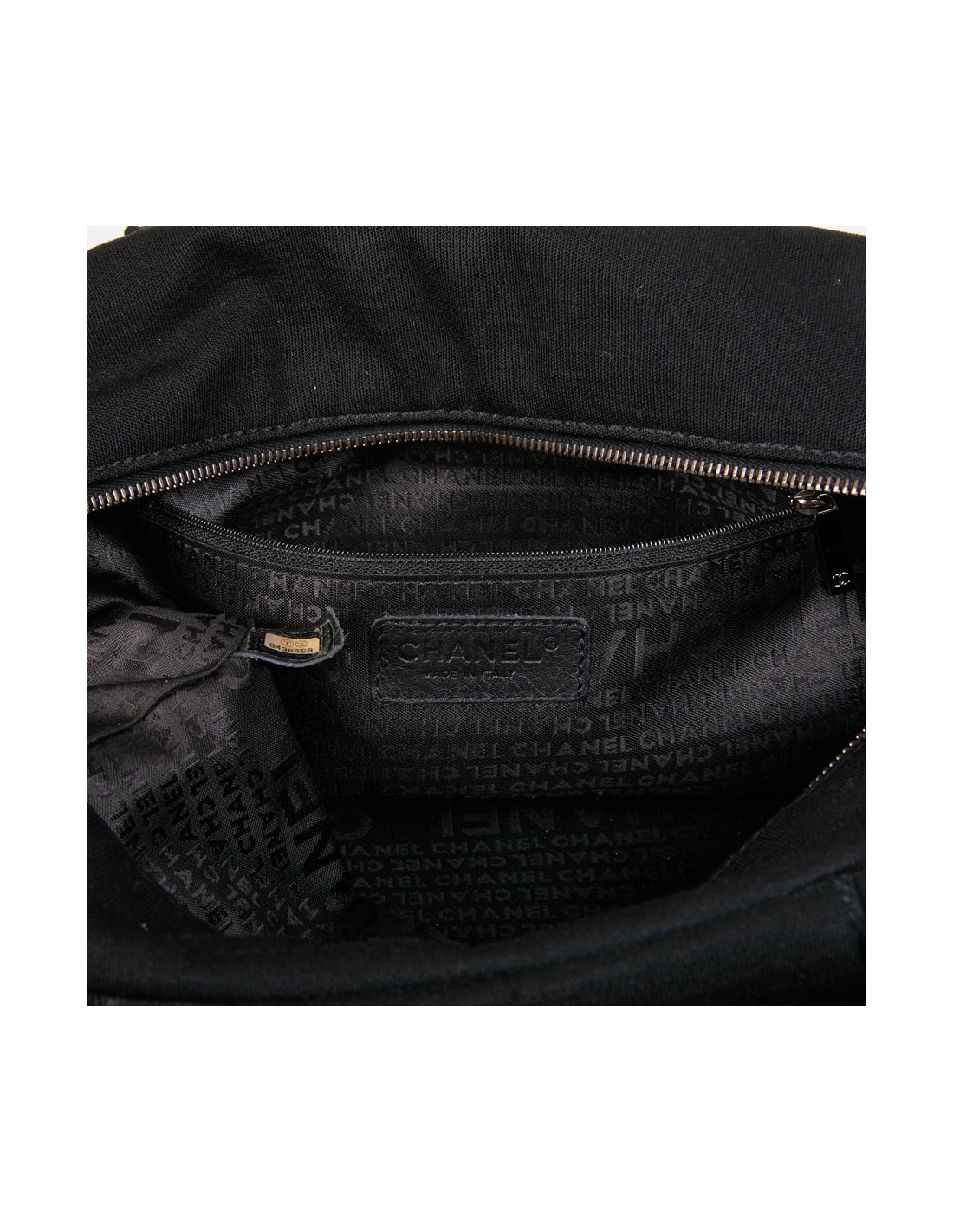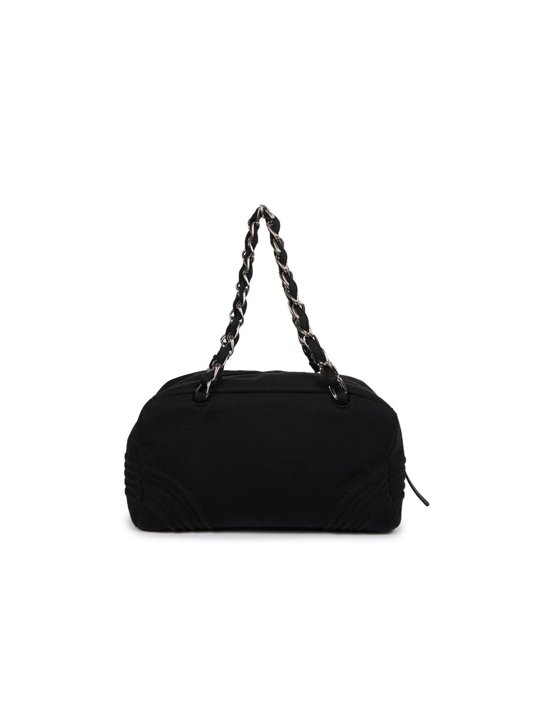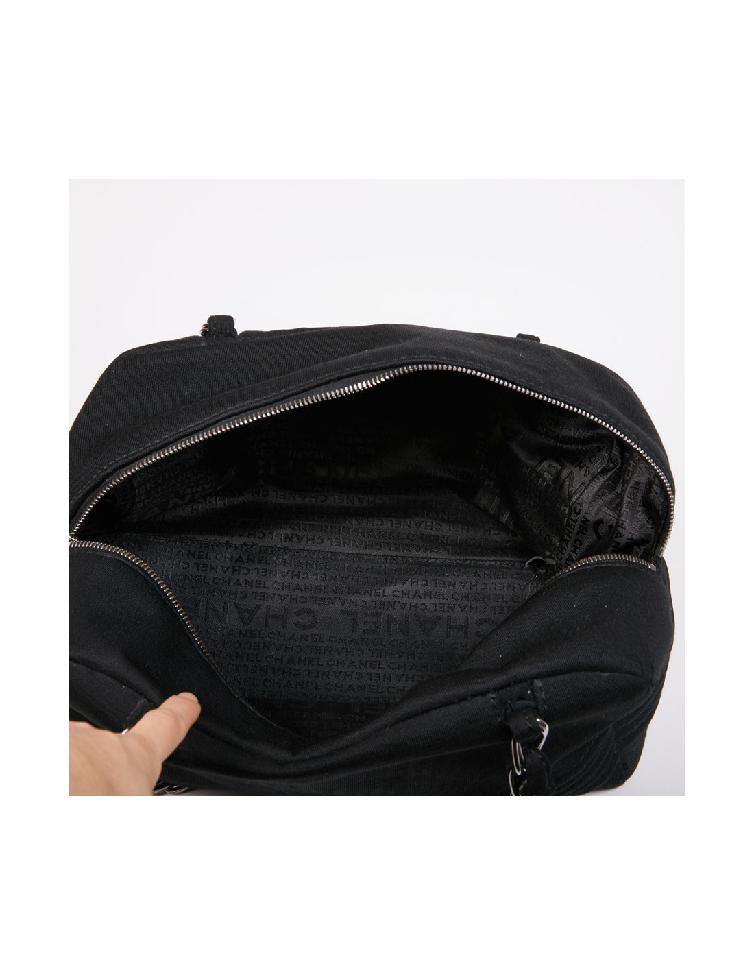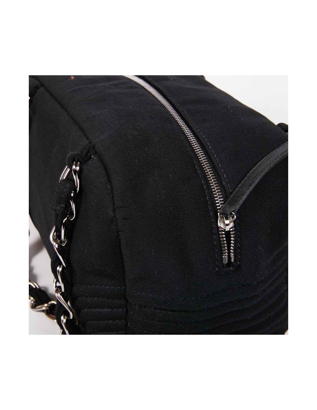 Sac CHANEL bowling en tissu jersey noir détails :
