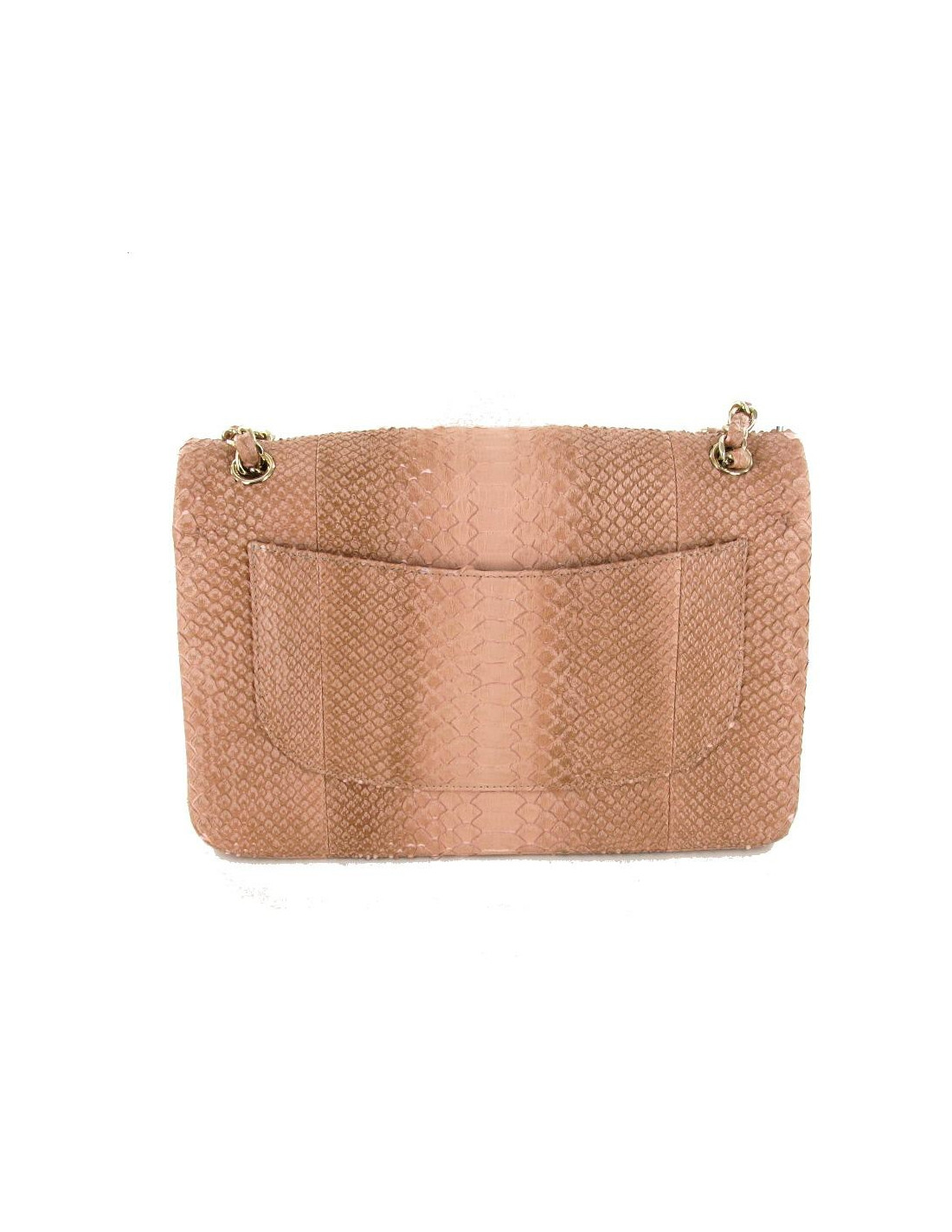 Ce sac Jumbo CHANEL en python est rose poudré. Il a été acheté à New-York : 10 887.50 $, et n'a jamais été porté. . Les ferrures sont en métal doré. Il se porte en simple ou double chaîne. Il y a une poche extérieure. A l 'intérieur : double rabat en cuir gold avec 5 poches dont 1 zippée. Il sera livré dans sa boîte d'origine avec dustbag, petits livrets, carte d'authenticité et la facture.