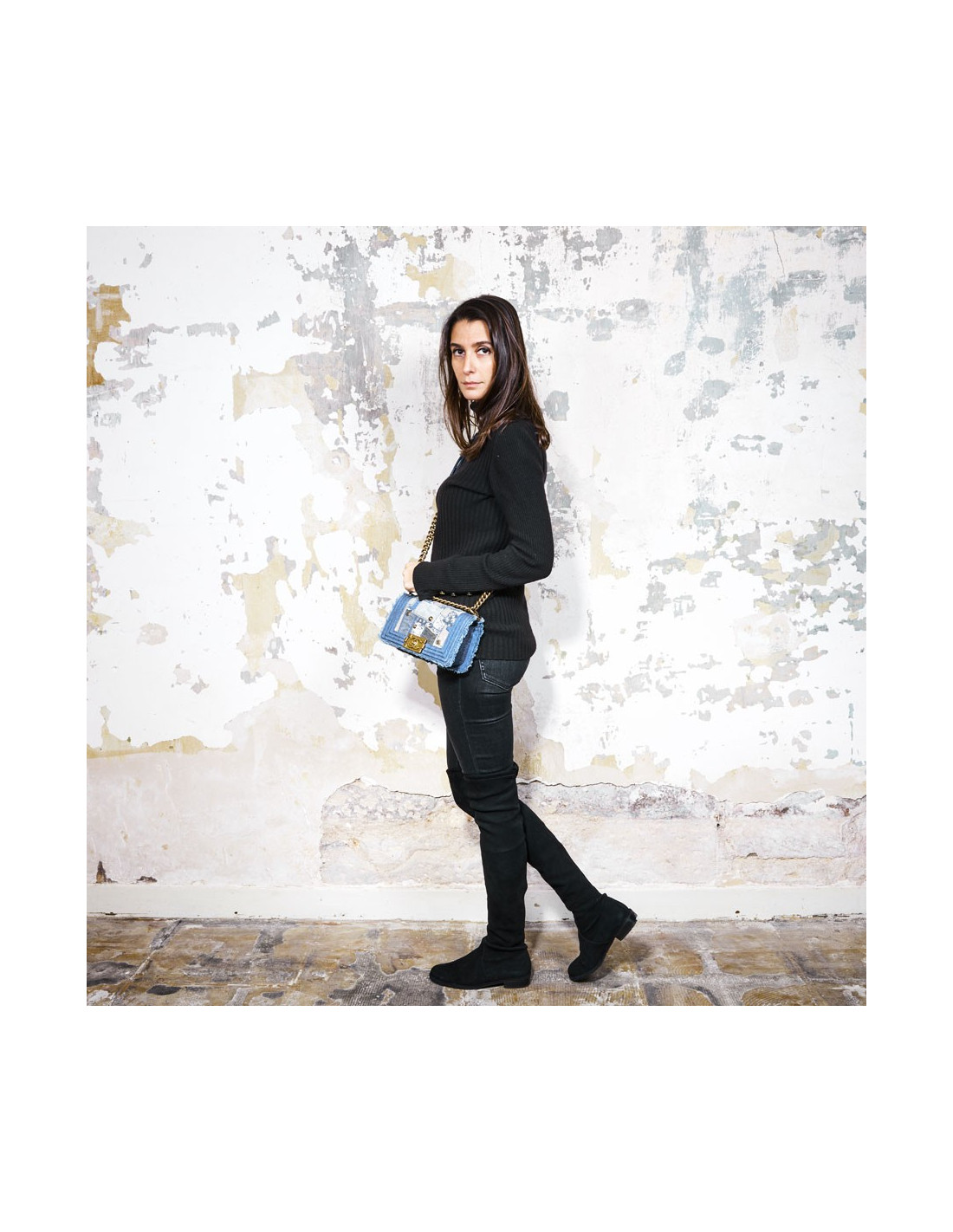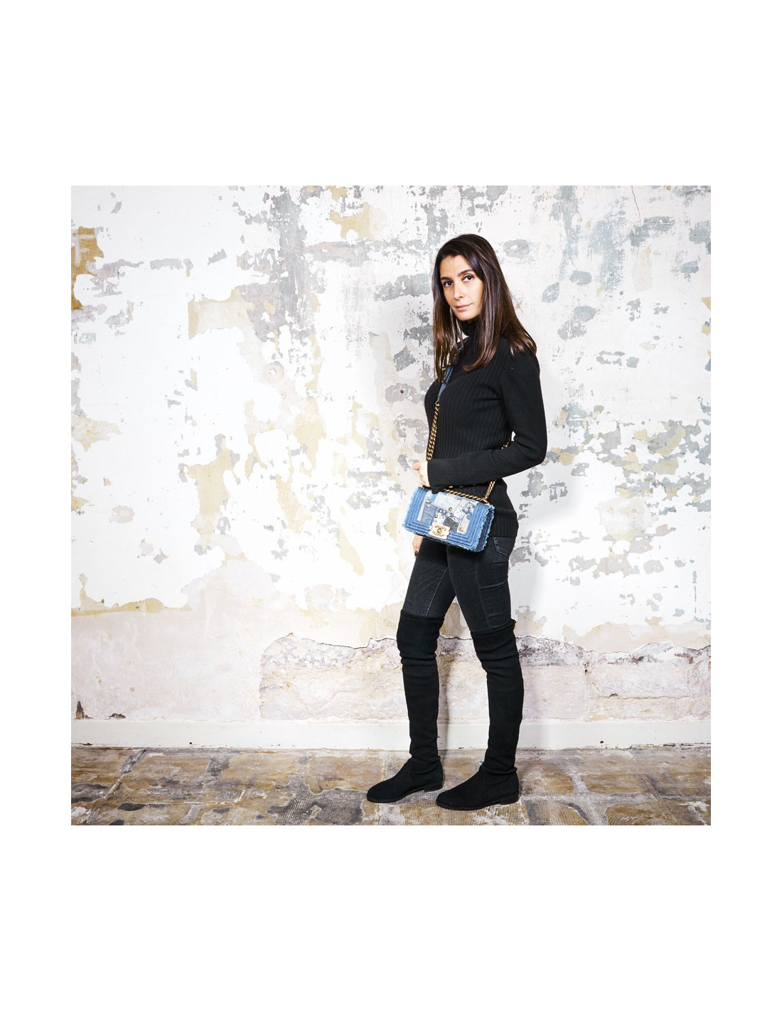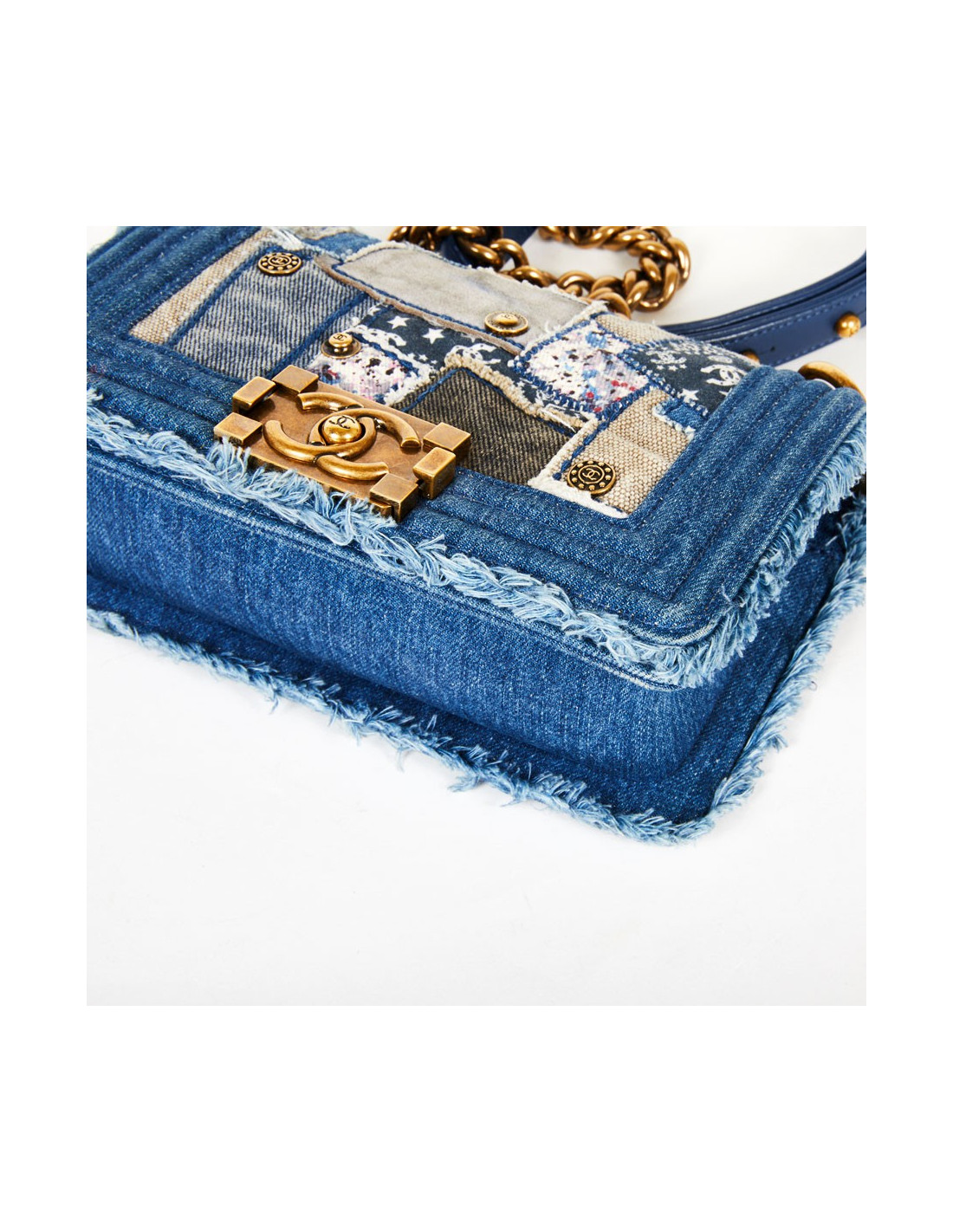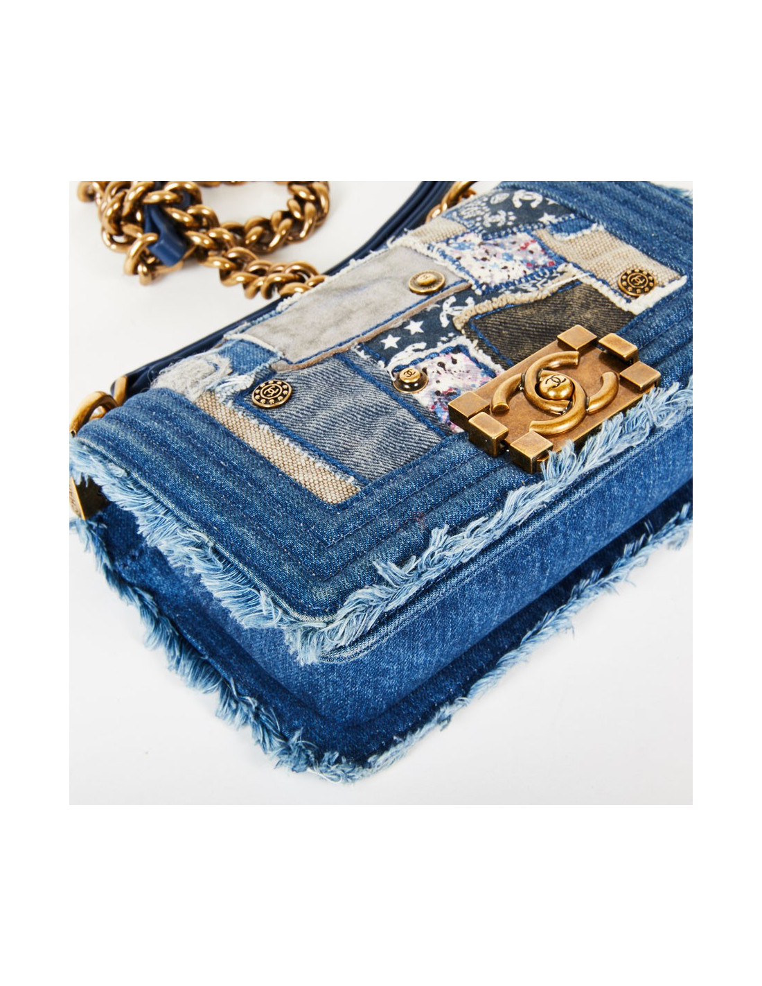 Petit sac Boy CHANEL patchwork denim bleu détails: