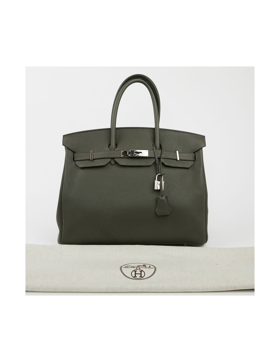 MAGNIFIQUE Sac HERMES BIRKIN 35 cuir togo vert olive - détails :