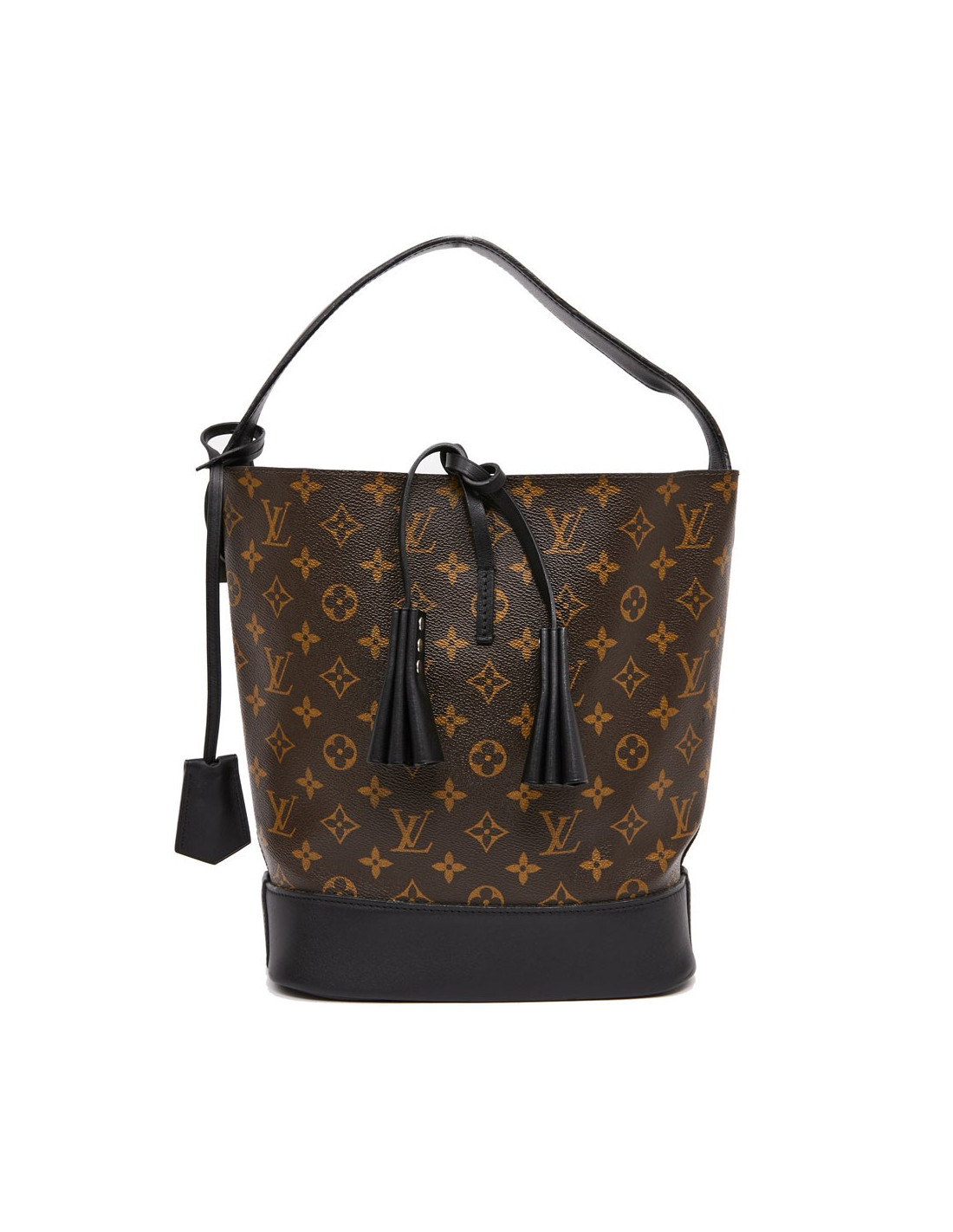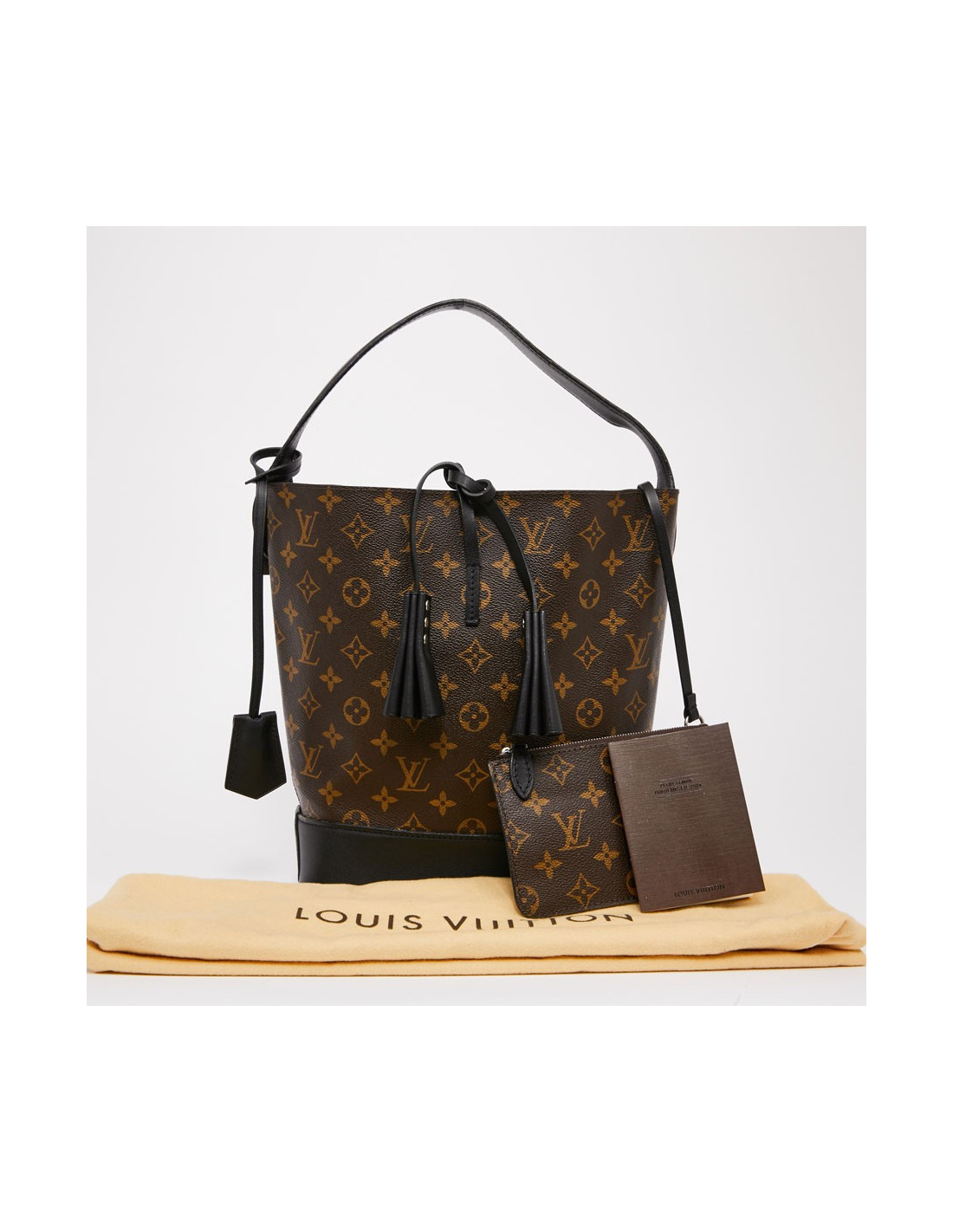 COLLECTOR! Ce sac "Idole NN14 a été fabriqué en série limitée (sold out) de la Maison Louis Vuitton. Il a été réalisé pour rappeler le sac Noé des années 30 par Marc Jacobs en 2014. Il est en toile Monogram marron et cuir noir. L'intérieur est en alcantara noir avec une pochette amovible. Il se fermer par deux languettes, pompon en cuir plissé. Il a son son cadenas et ses clés clochette. Le sac n'a jamais été porté.