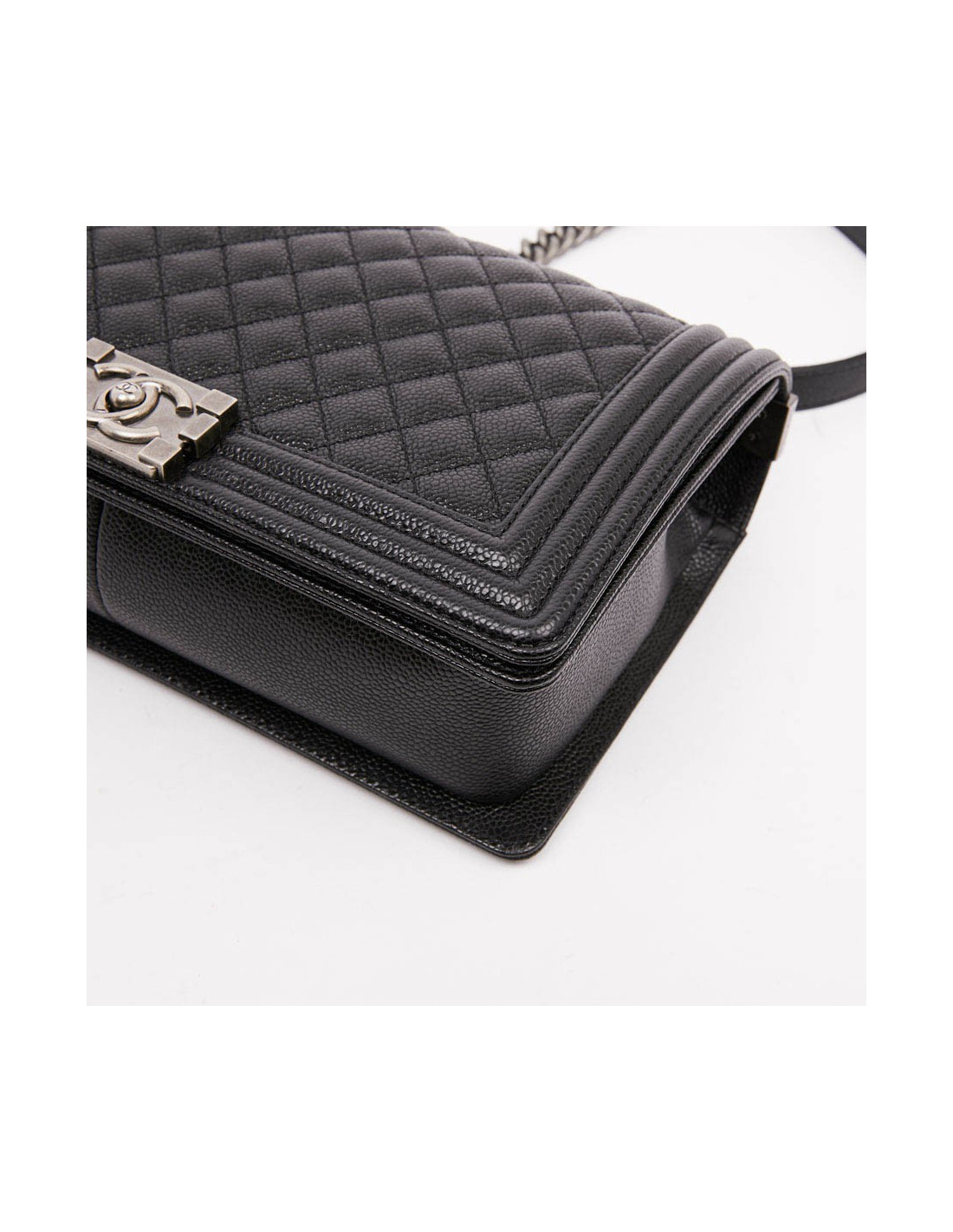 Sac Boy noir CHANEL en cuir grainé