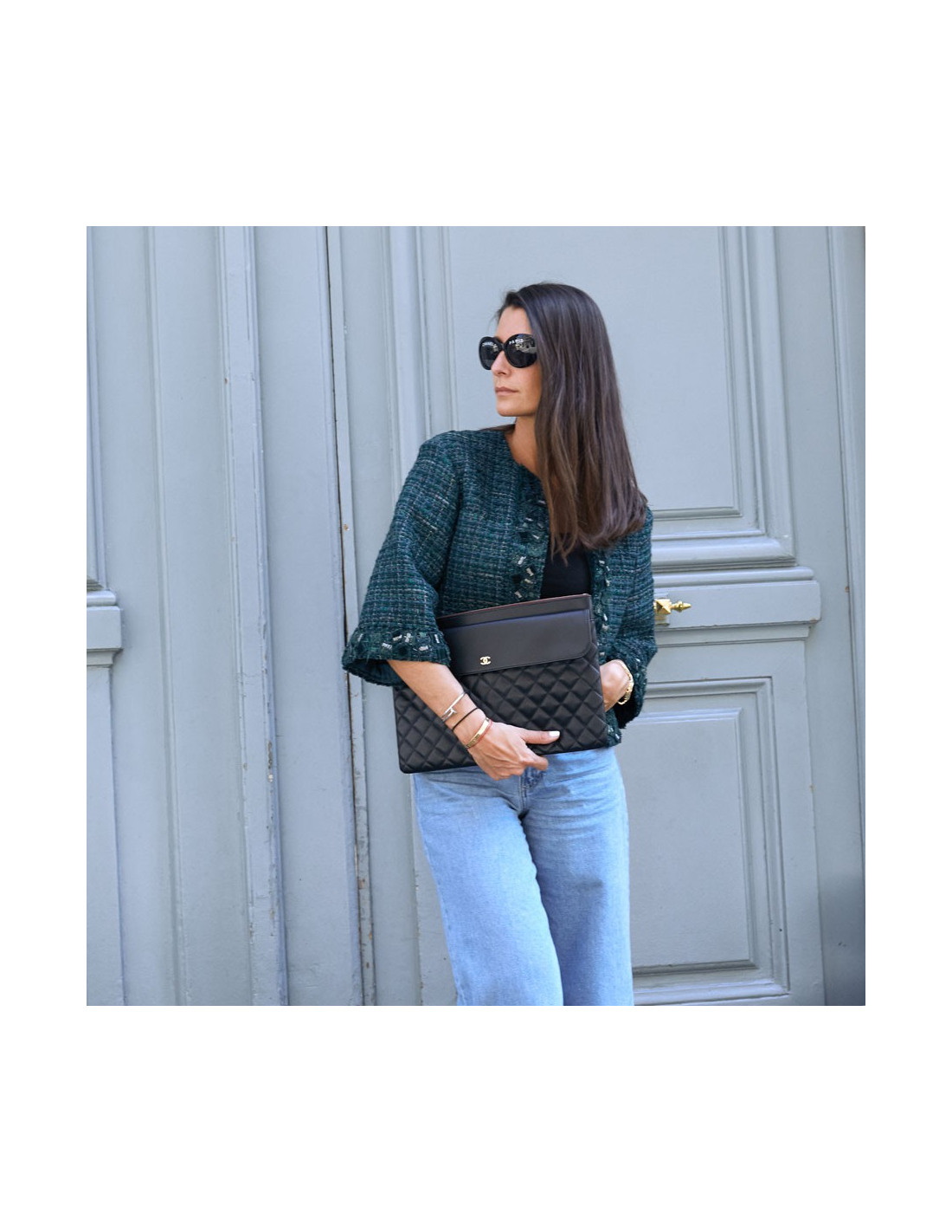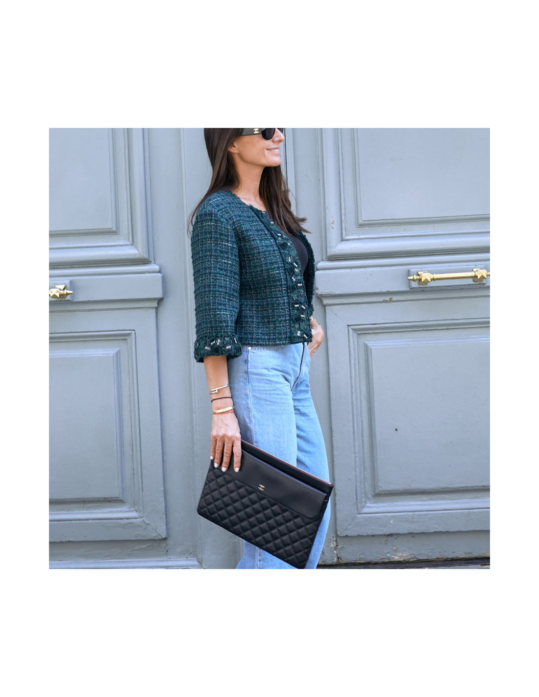 Plusieurs possibilités d'usage de cette Grande pochette CHANEL noire, détails