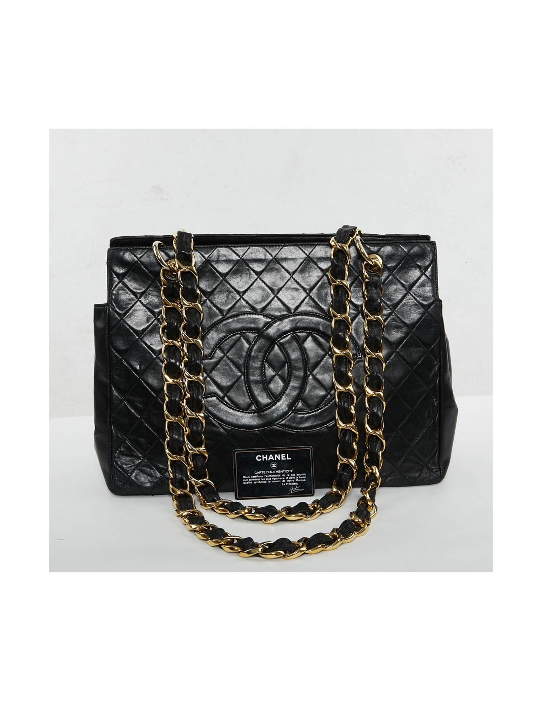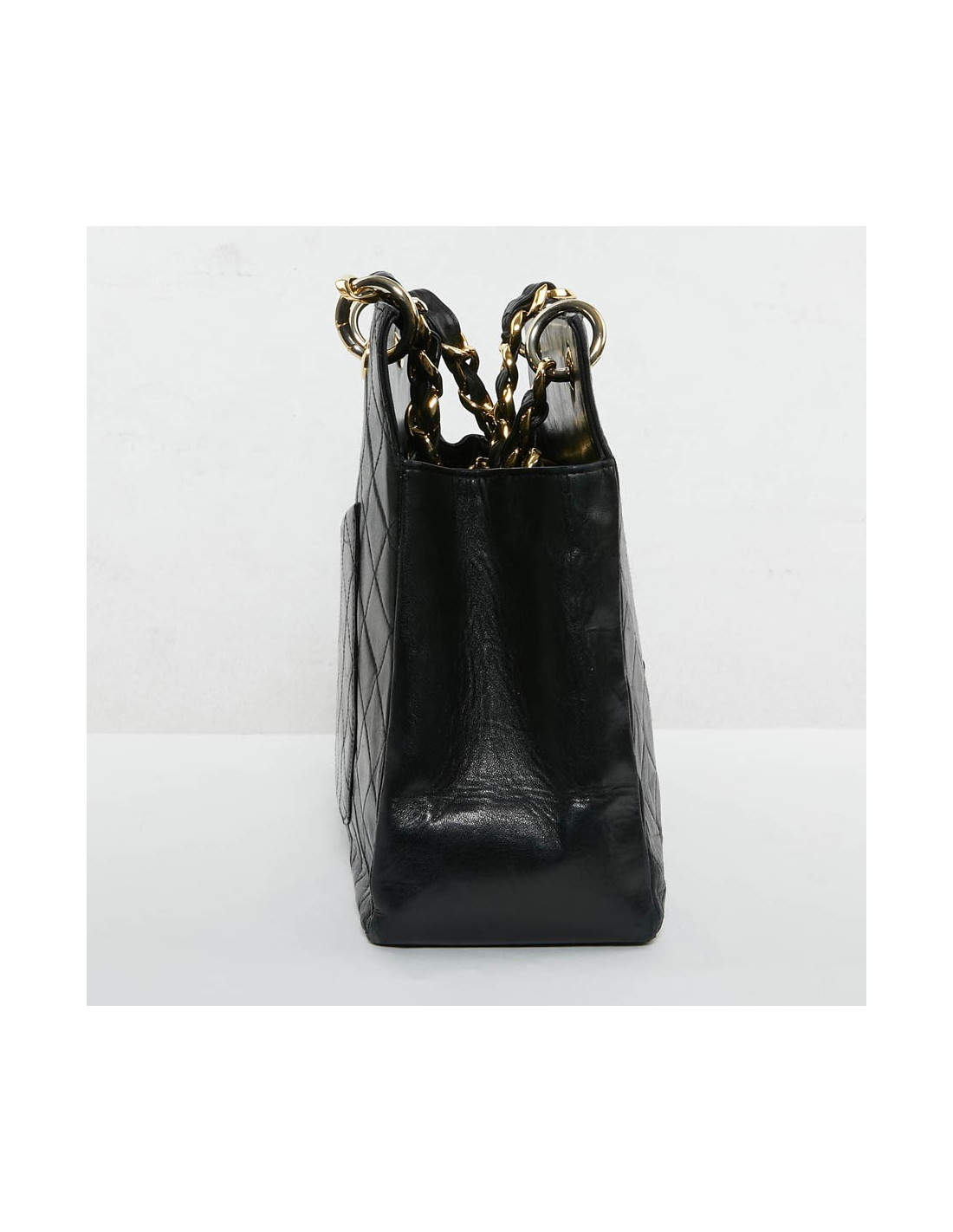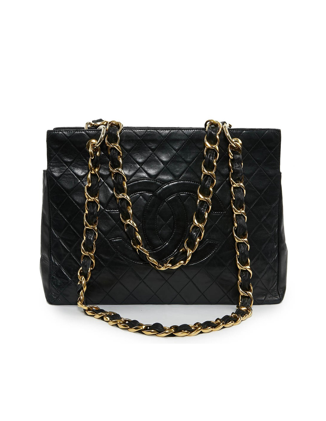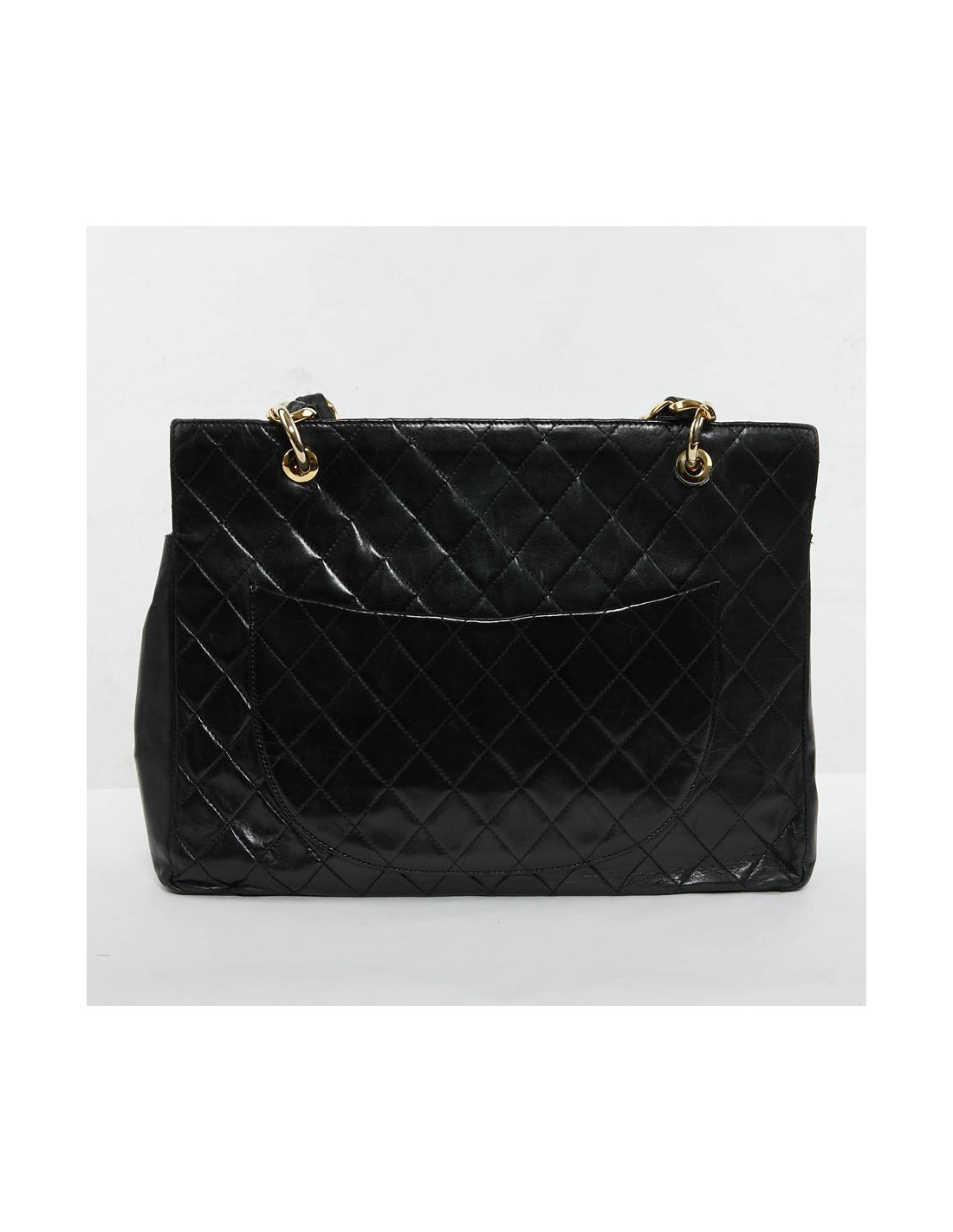 Sac cabas grand shopping vintage en cuir d'agneau matelassé de la Maison Chanel. Le sac idéal pour tous les jours afin d'y glisser tous vos accessoires du quotidien.