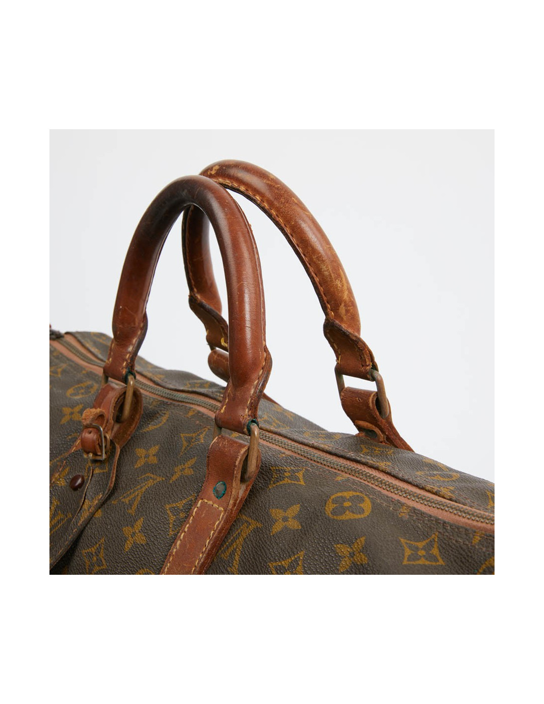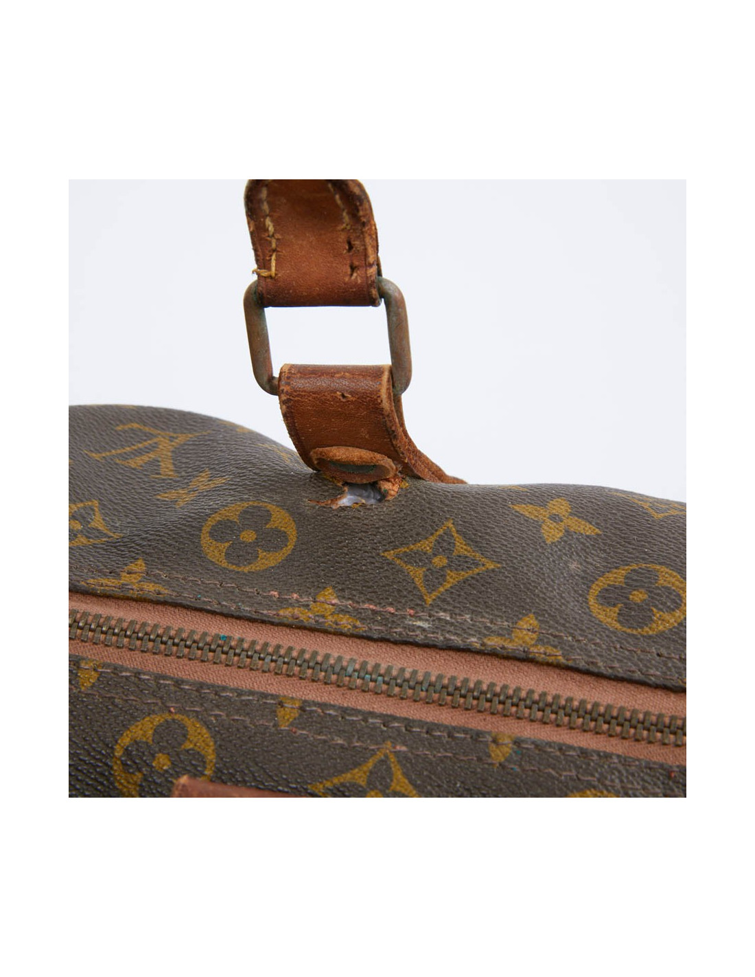 De fabrication française, ce sac a beaucoup servi. Son état est correct. Il doit a voir plus de 30 années. Les poignées sont marquées, avec petite déchirure à l'extrémité Les parties en cuir de vachette sont usées.Il mesure : 45 cm de longueur x 24 cm de hauteur x 19 cm de profondeur.