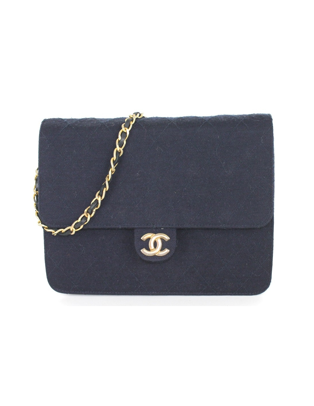 Sac CHANEL vintage en jersey bleu marine