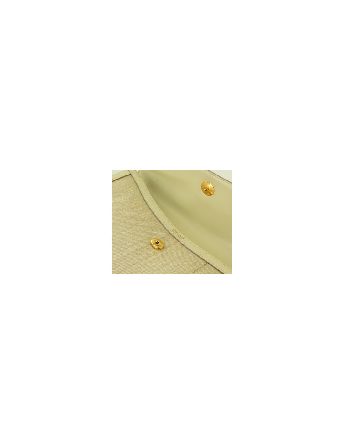 Rare et belle pochette vintage Hermès, en cuir beige et crinoline (crin de cheval), fermoir H doré sur bouton de fermeture à pression.
