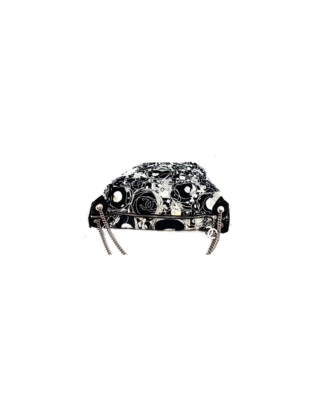 Sac CHANEL en soie, imprimé noir gris et blanc