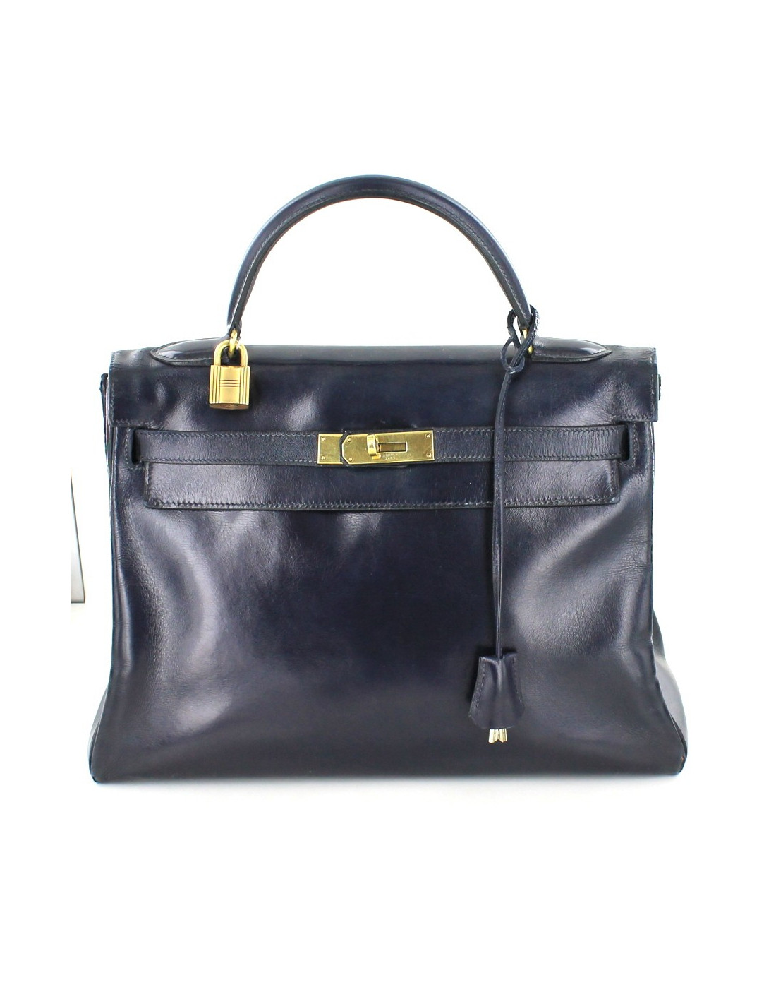 Très vintage plus de 40 ans. ! Kelly 32 Hermès en box bleu marine.