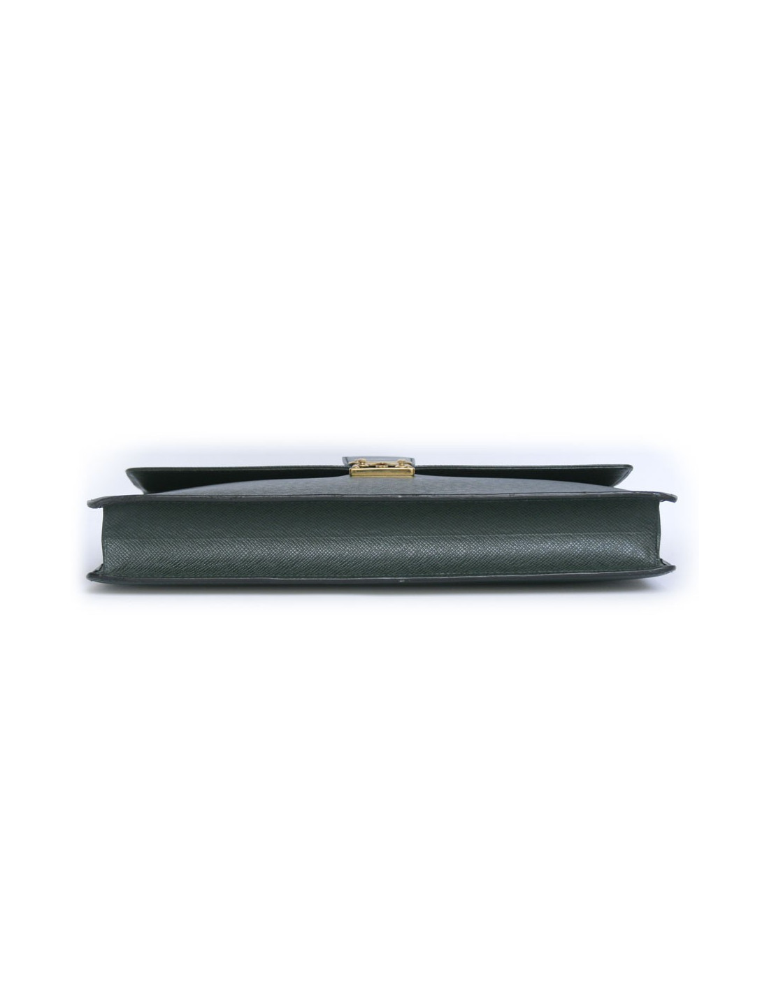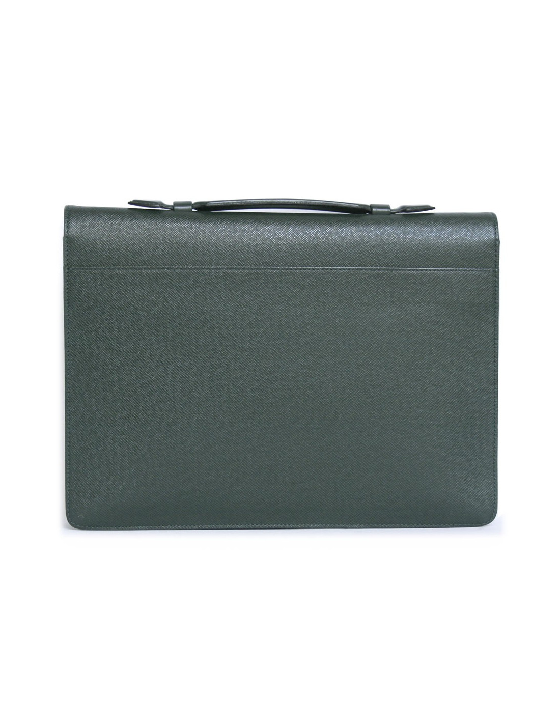Porte-documents "Robusto" de la Maison Louis Vuitton en cuir taiga vert. L'accastillage est en laiton doré. Fermoir à loquet en métal doré. Poignée simple. Une poche plaquée au dos du sac. En très bon état.