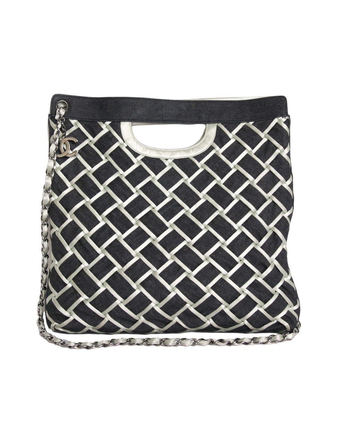 Sac cabas CHANEL en satin duchesse et denim , très bon état (malgré quelques traces à l'intérieur du sac).