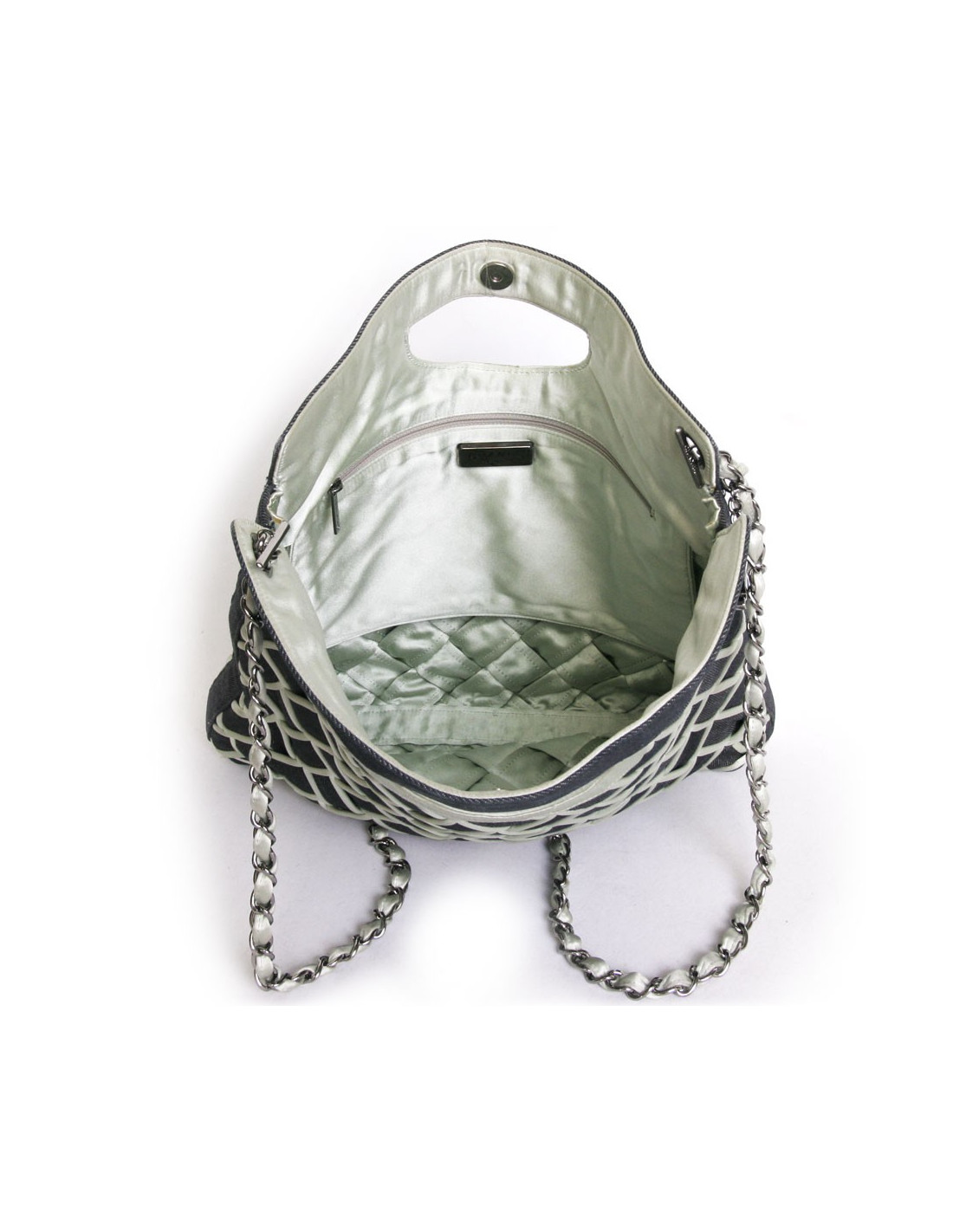 Sac cabas CHANEL en denim bleu et satin duchesse vert d'eau