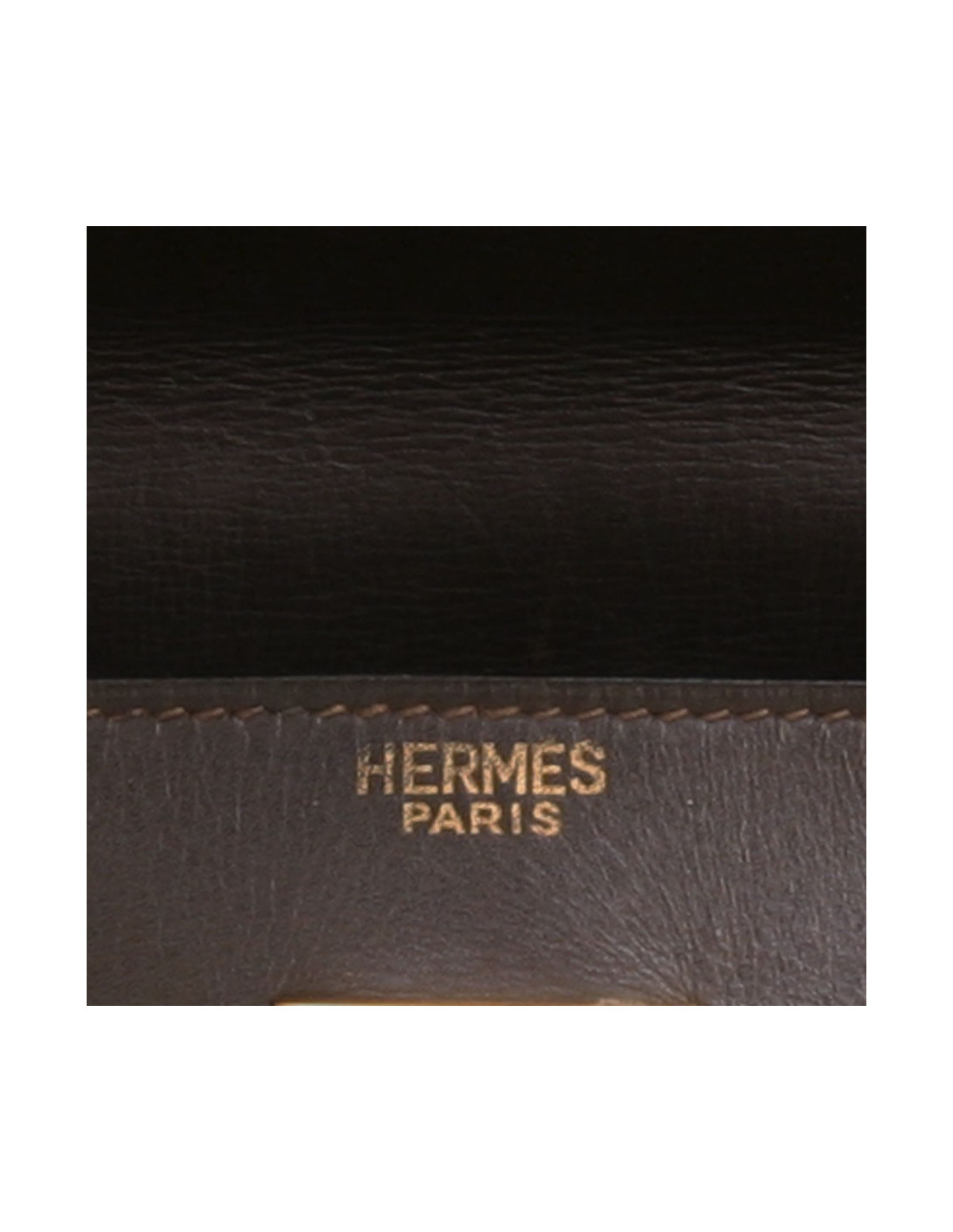 Sac en cuir box souple marron chocolat Hermès Vintage, Lettre G dans un rond, en très bon état.