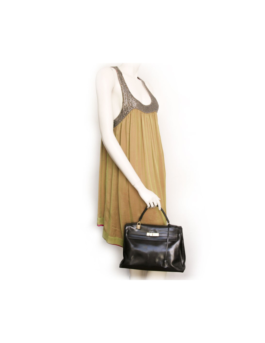Sac Kelly 32 cuir box marron chocolat Vintage