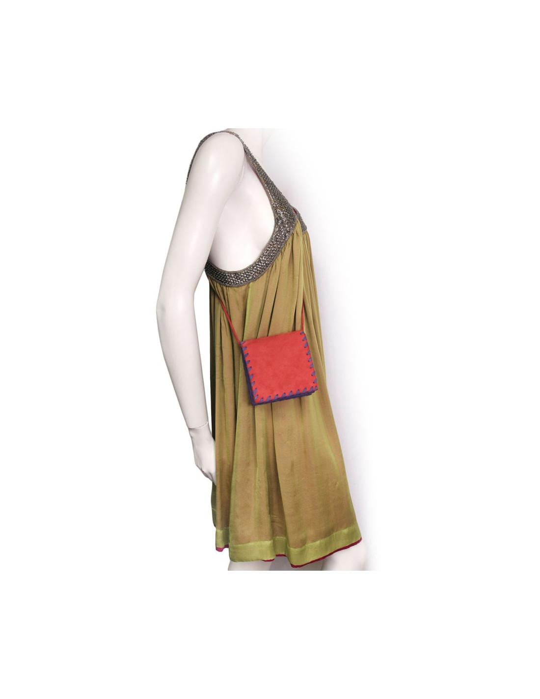 Pochette YVES SAINT LAURENT en veau velours rouge et violet Vintage