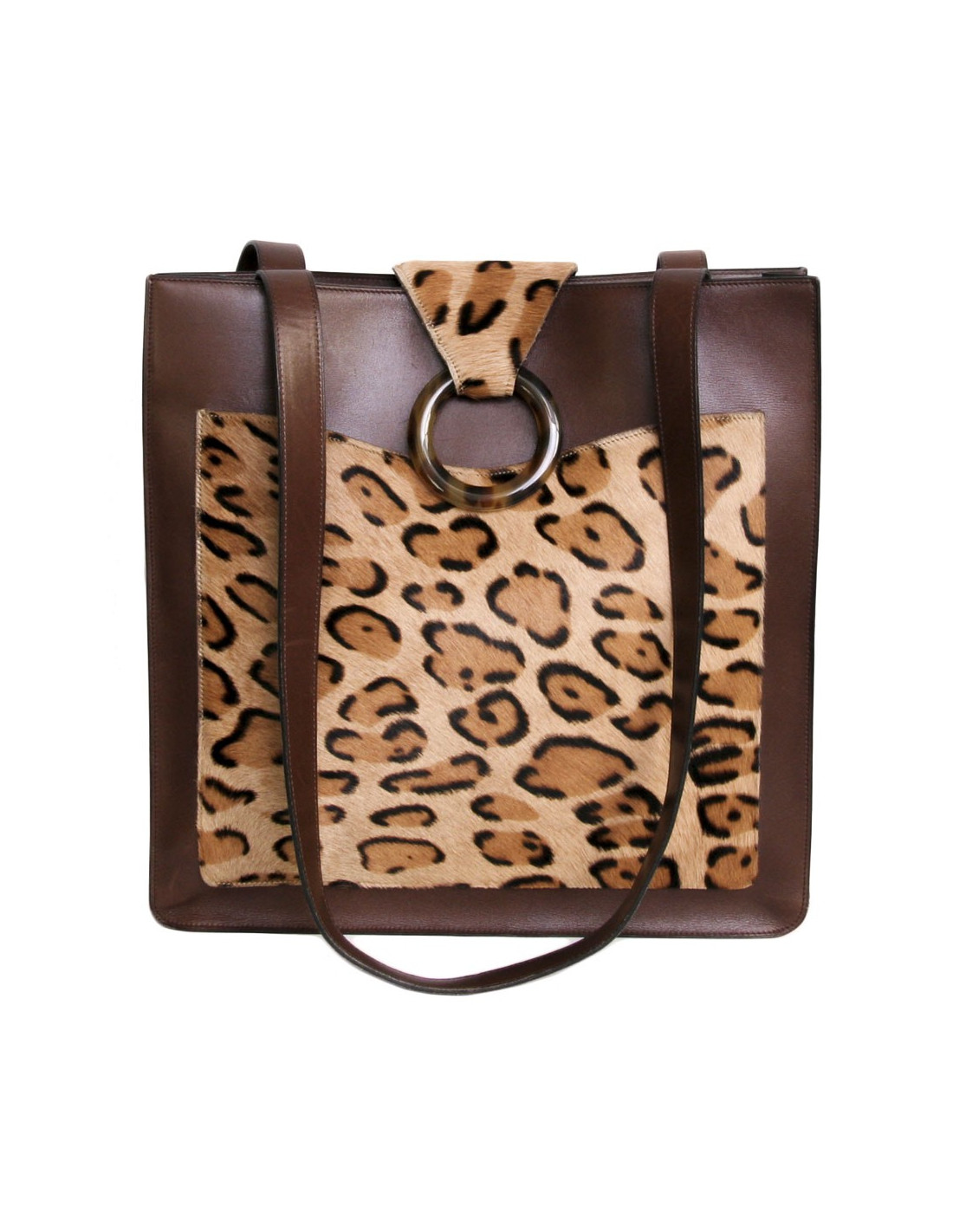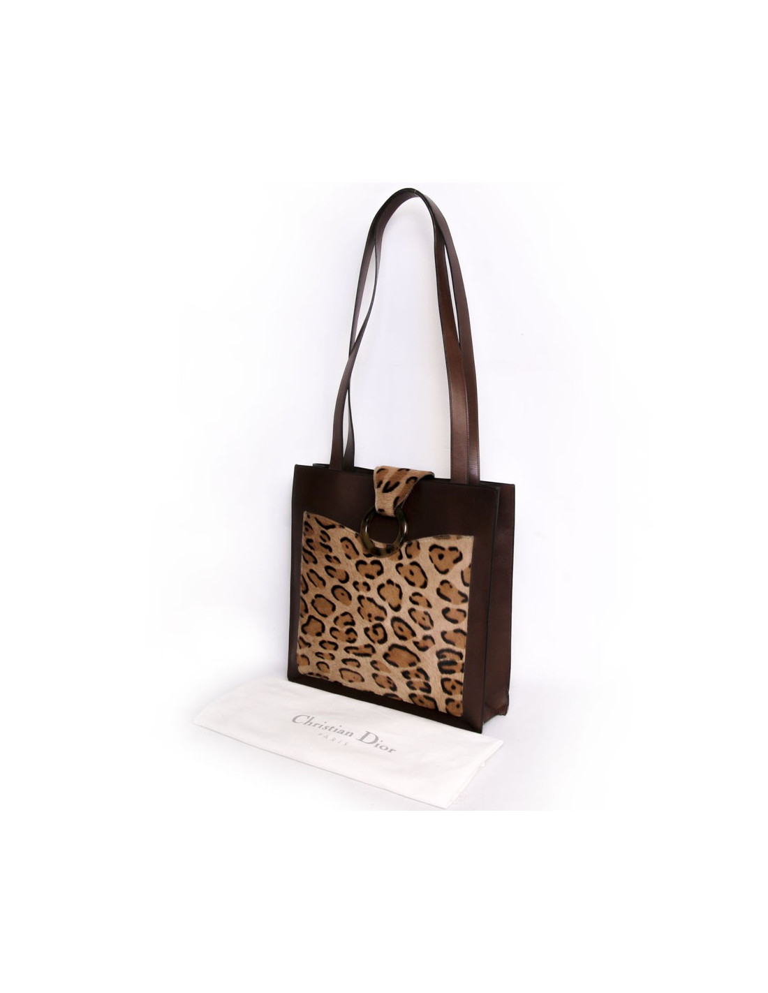 Sac CHRISTIAN DIOR en cuir et peau façon léopard