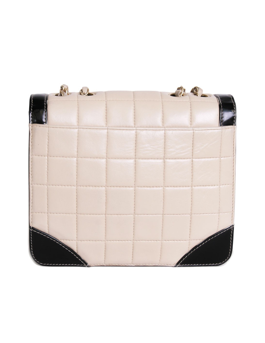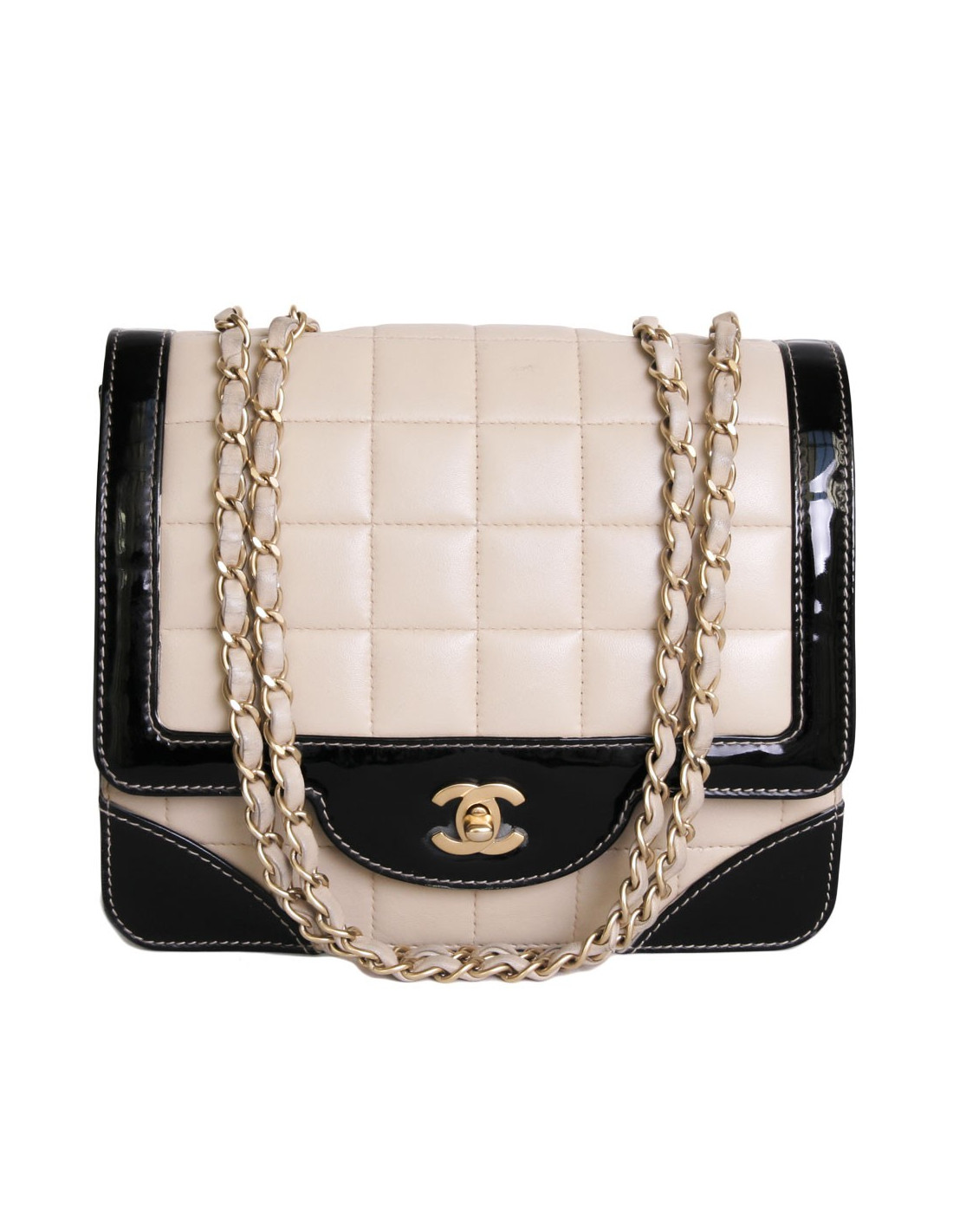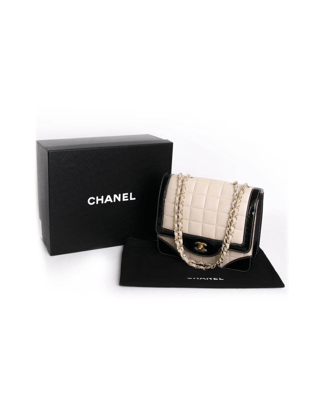 Fermeture "double C" par pivot, contours en cuir noir verni.