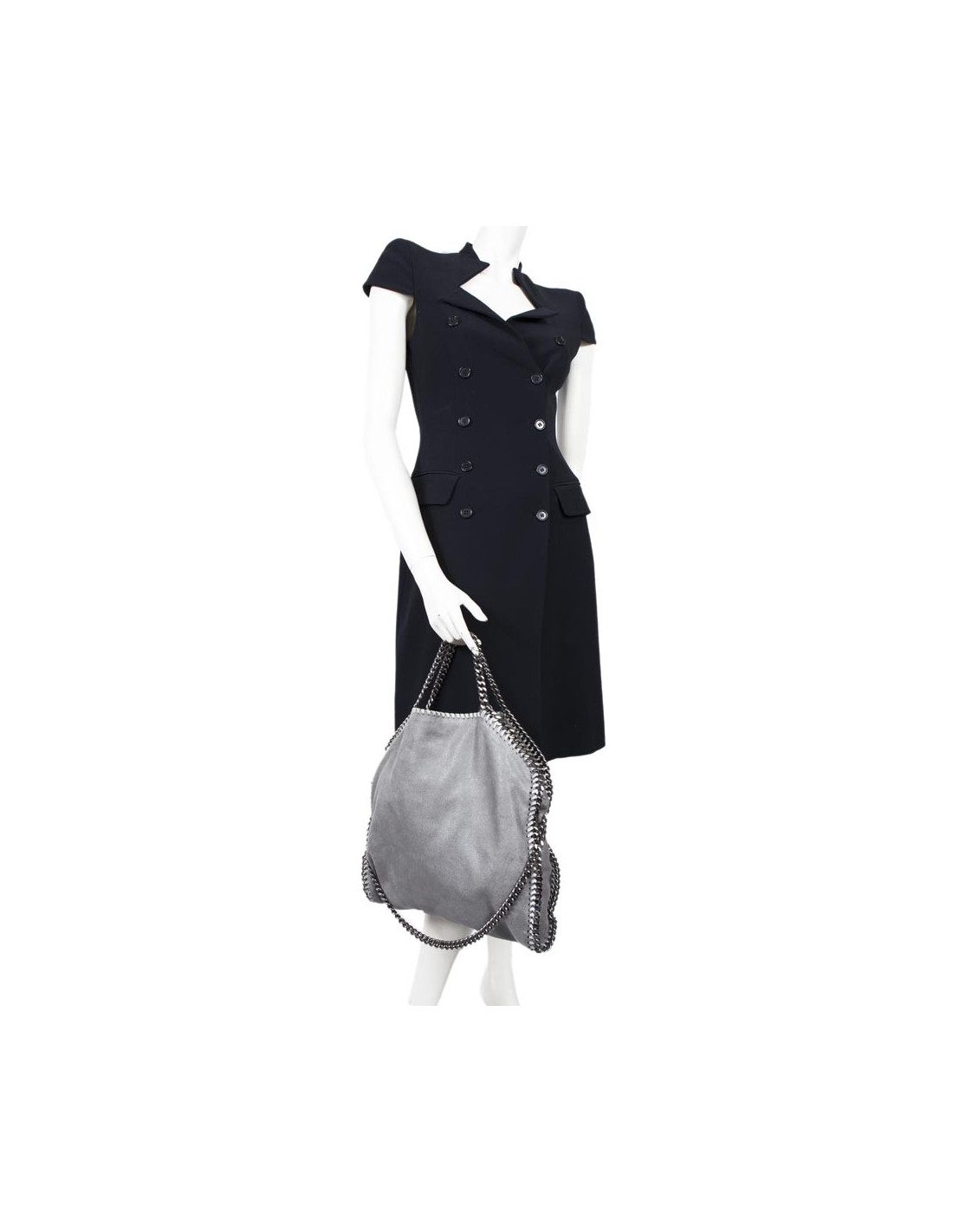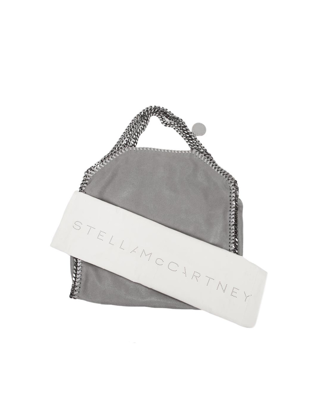 L'indémodable sac 'Falabella' de la Maison Stella Mc Cartney en cuir façon daim gris perle.Pièces métalliques ruthénium. Fermeture par bouton pression. L'intérieur est en toile beige monogram avec une poche zippée. En très bon état.