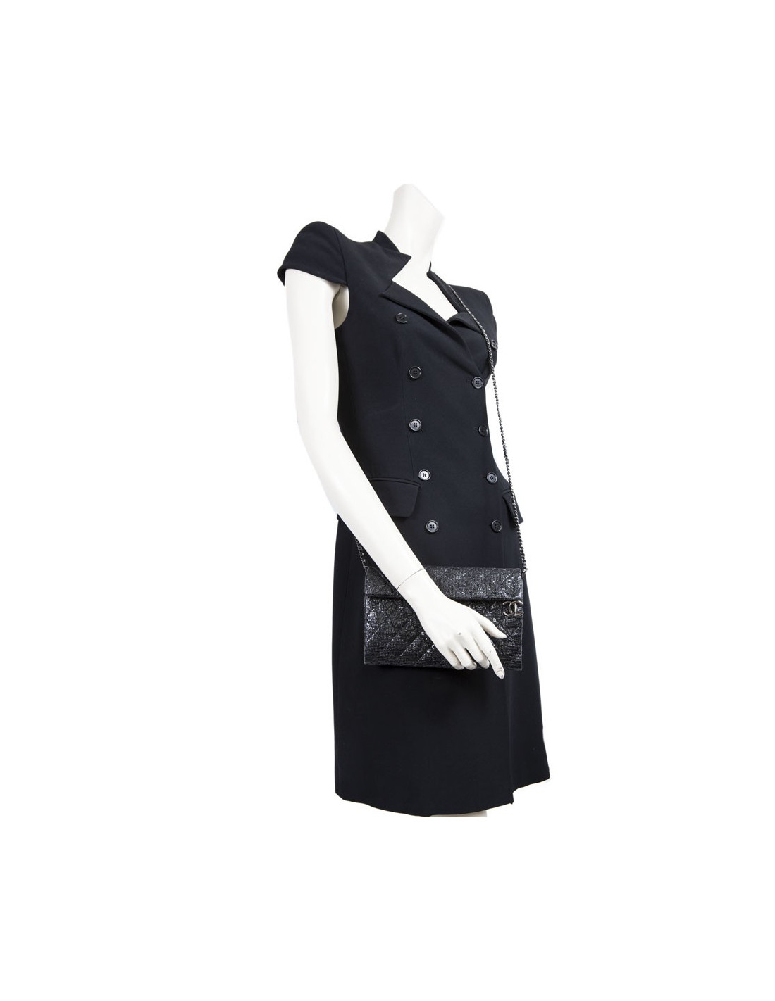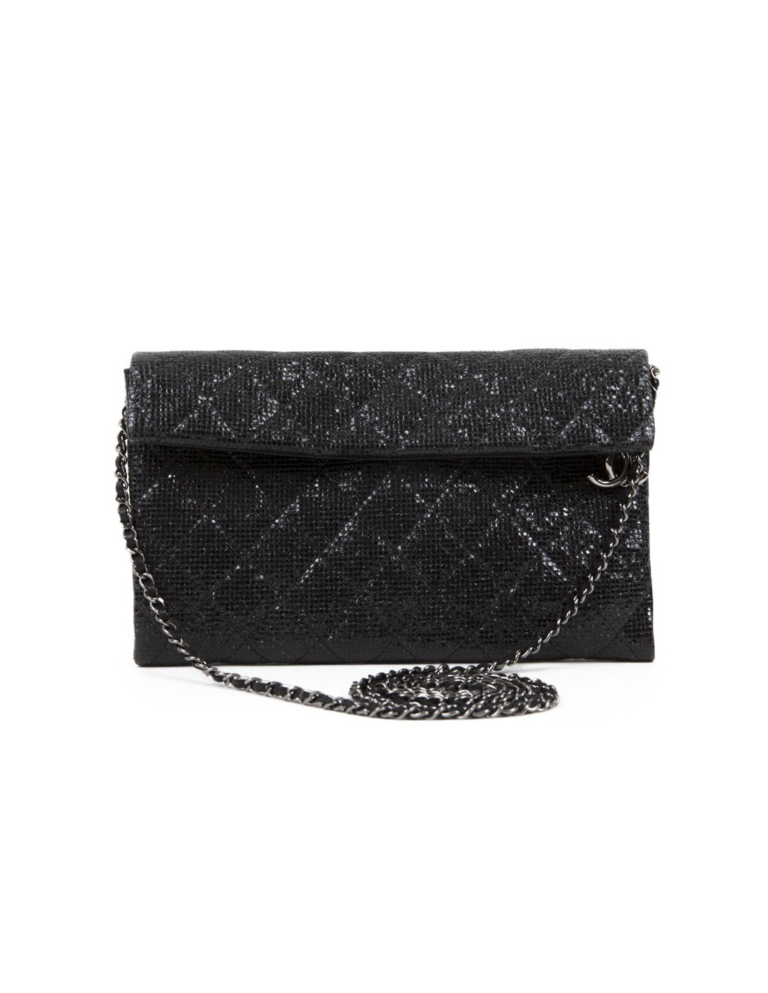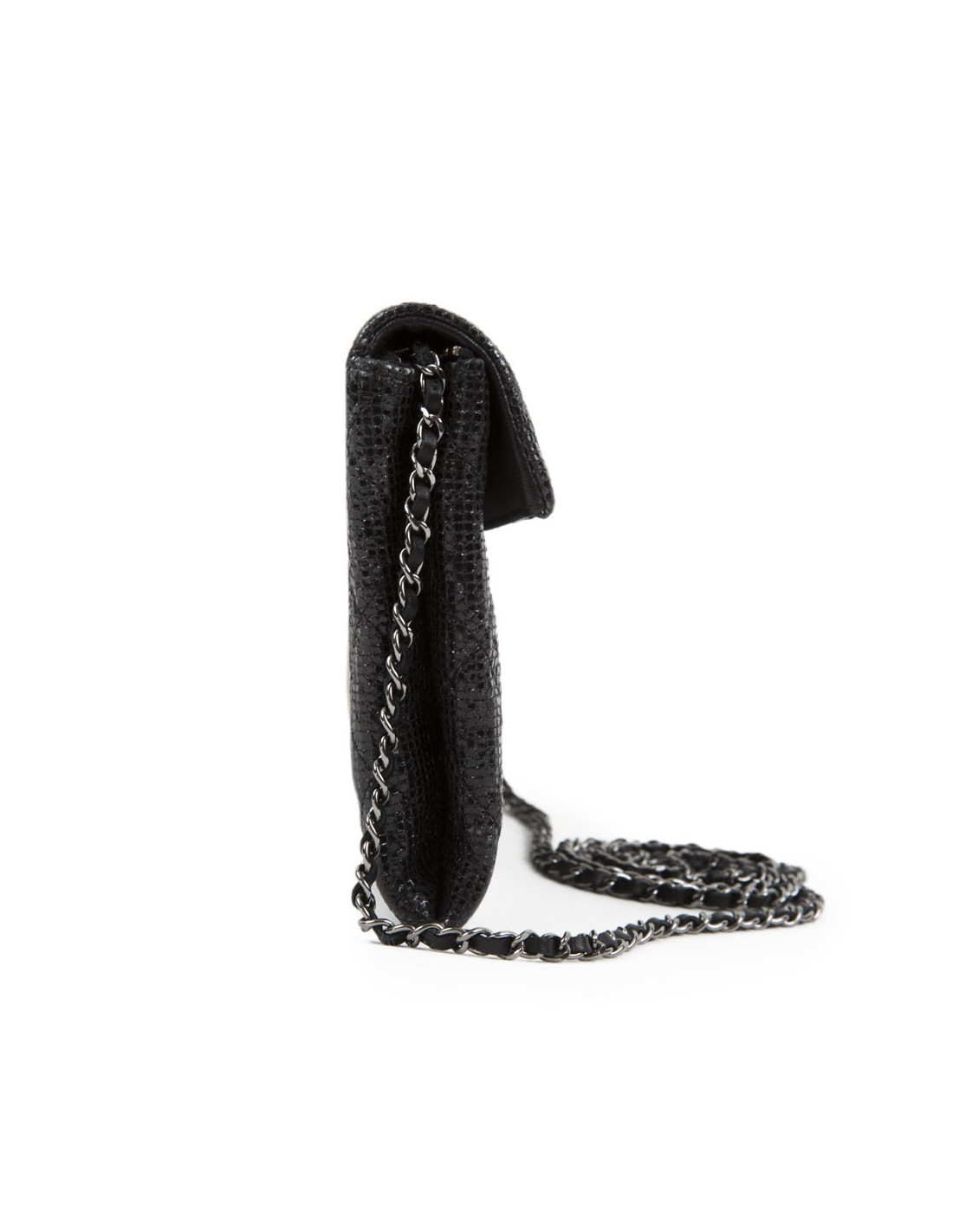 Pochette de la Maison Chanel en cuir matelassé avec des brillants noirs.