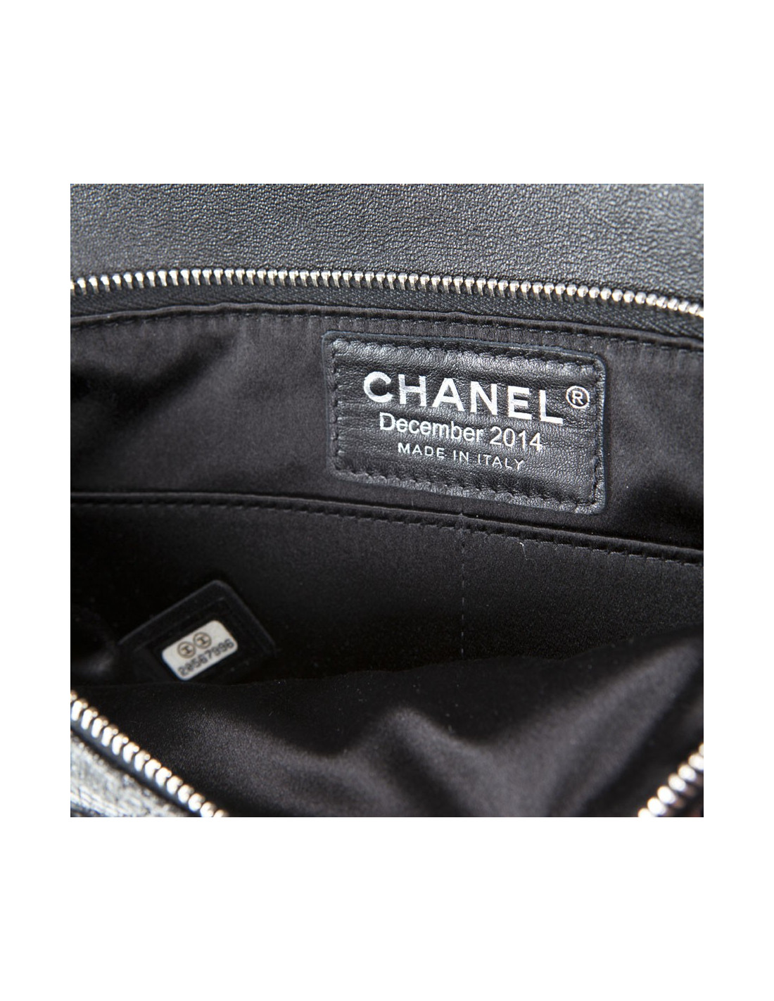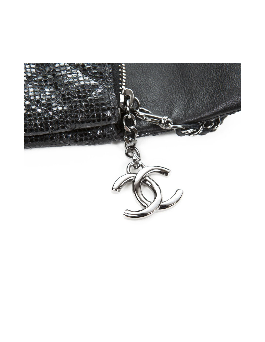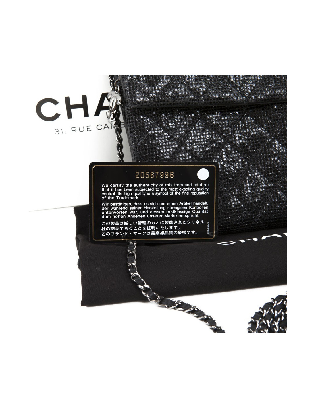Pochette de la Maison Chanel en cuir matelassé avec des brillants noirs.