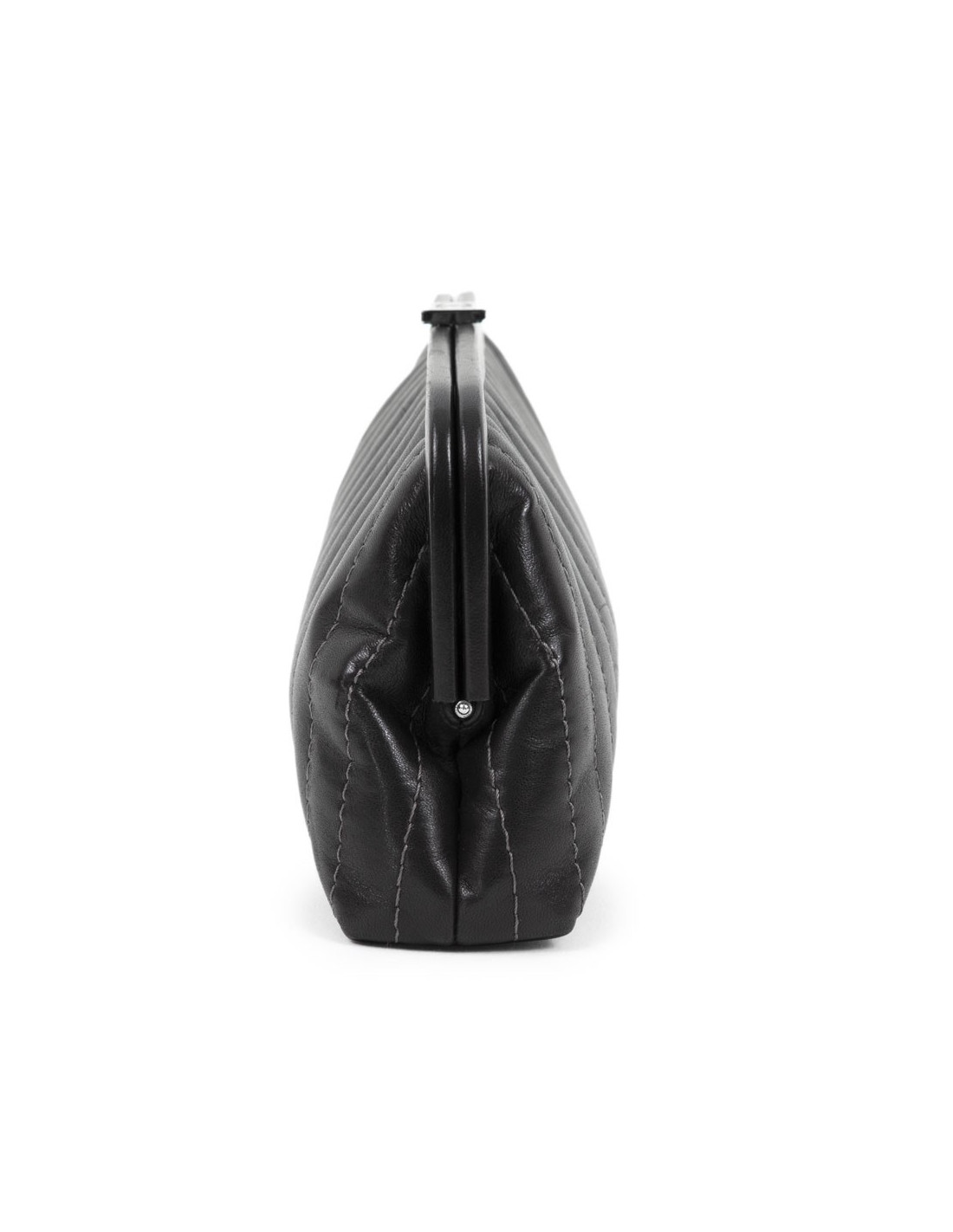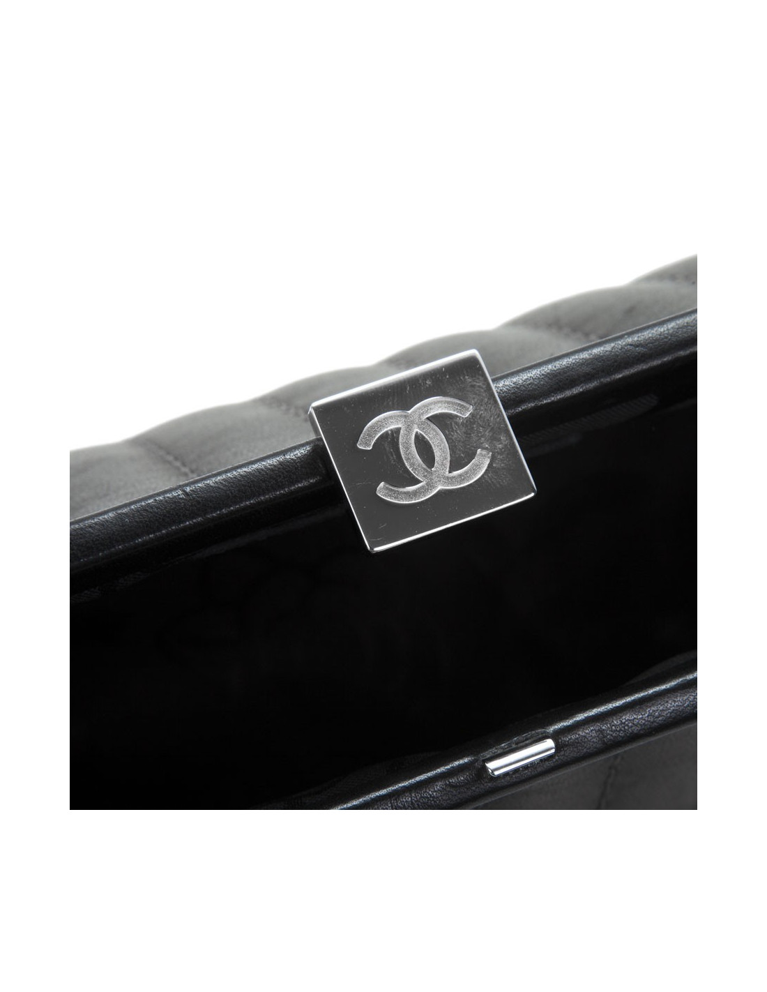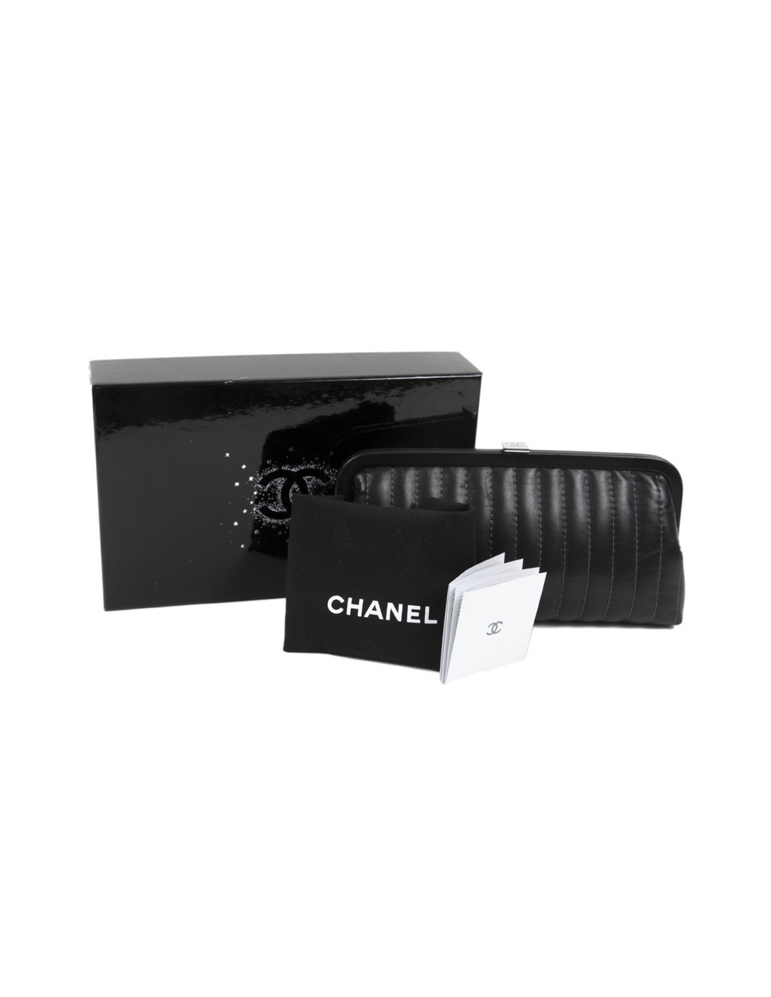 Pochette CHANEL en cuir d'agneau lisse noir