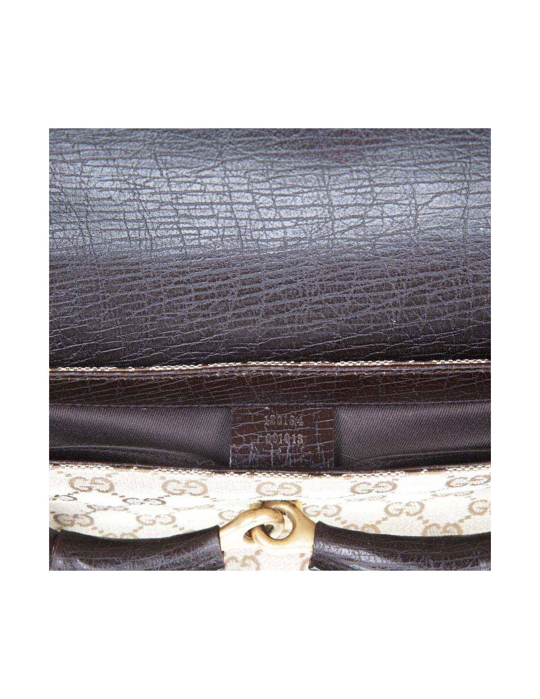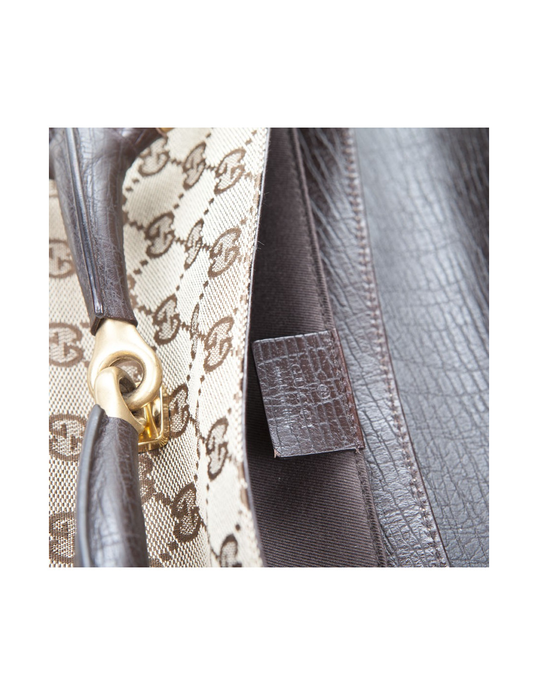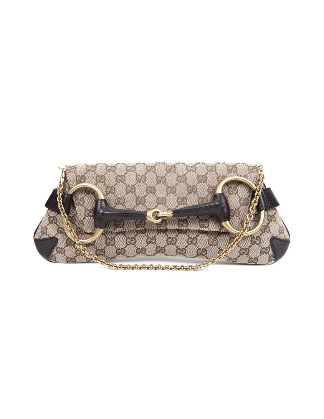 Sac "Mors" GUCCI, en toile monogram. Bijouterie dorée cuivrée. Intérieur doublé en textile marron avec une poche. Sous l''étiquette de la marque : numéro de série 120135- 001013;