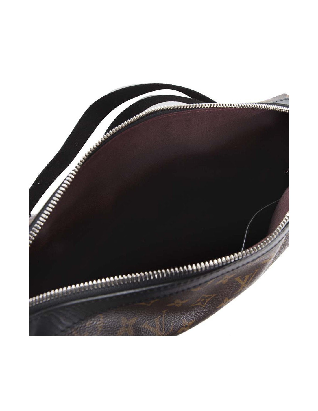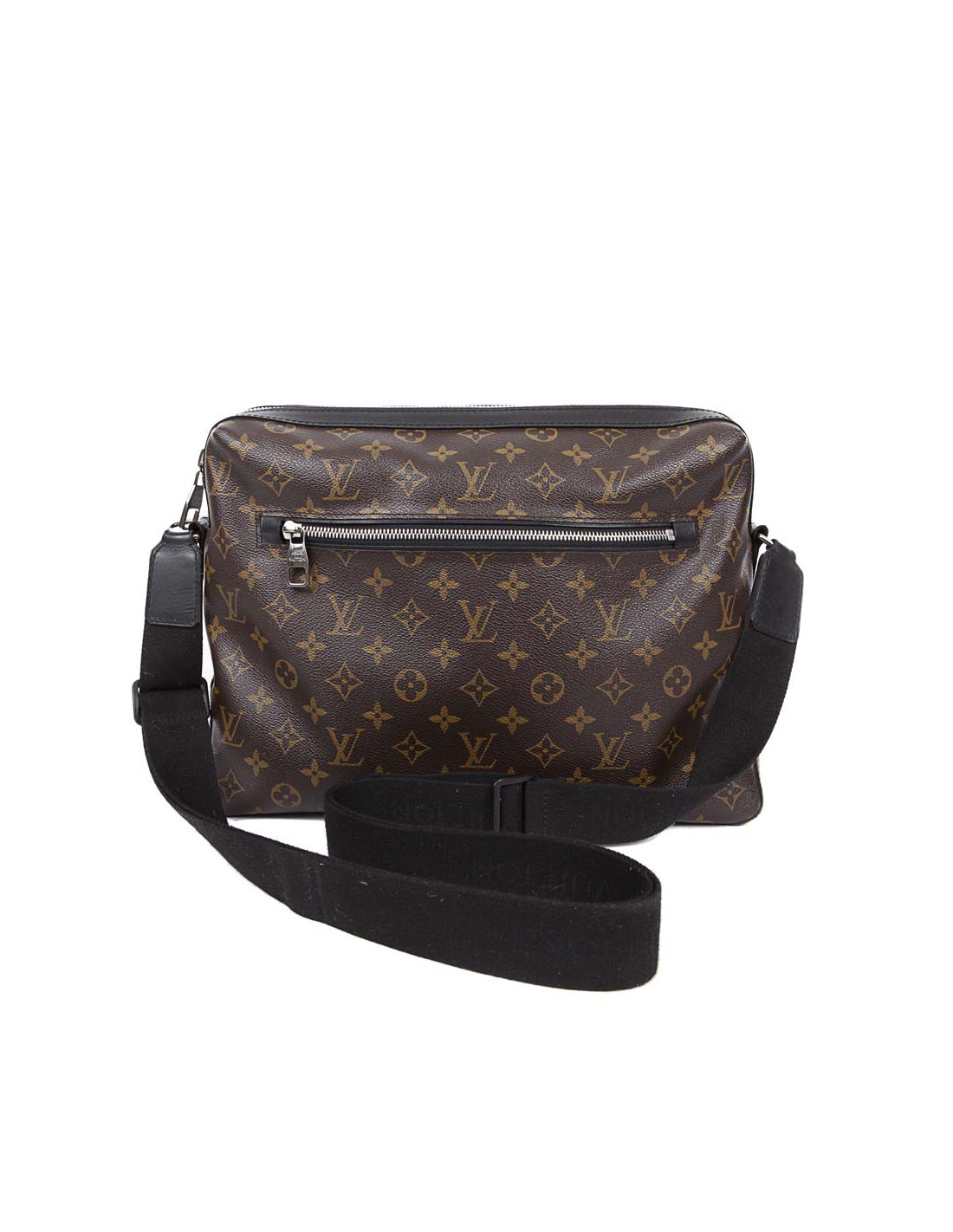 Sacoche en toile monogram marron de la Maison Louis Vuitton. Bandoulière ajustable en toile noire. Doublure textile bordeaux. Poche extérieure. Finitions en cuir de vache noire. Bijouterie argenté. En très bon état.