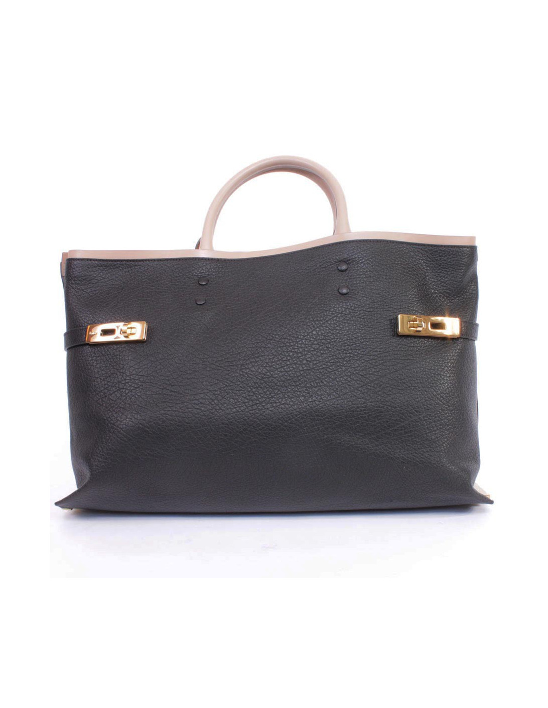 Sac Porté main Chloé Cuir Noir modèle " Charlotte ", cuir grainé noir et beige.