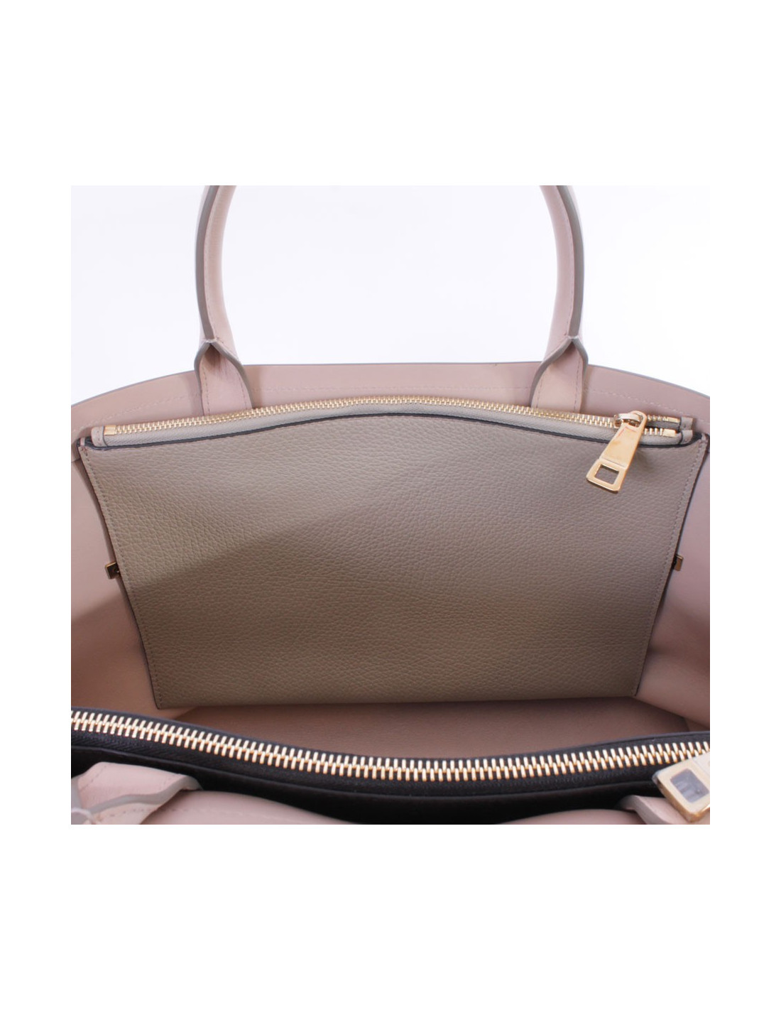 L'intérieur est doublé cuir beige avec deux pochettes sur les côtés, une couleurnoire et une couleur taupe