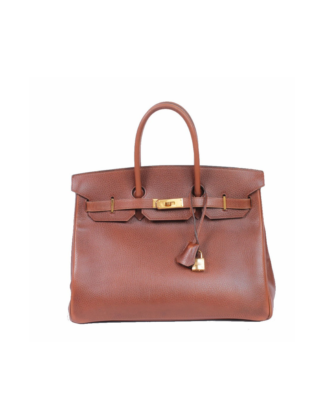 Birkin 35 en cuir de vache Ardennes, couleur cognac.