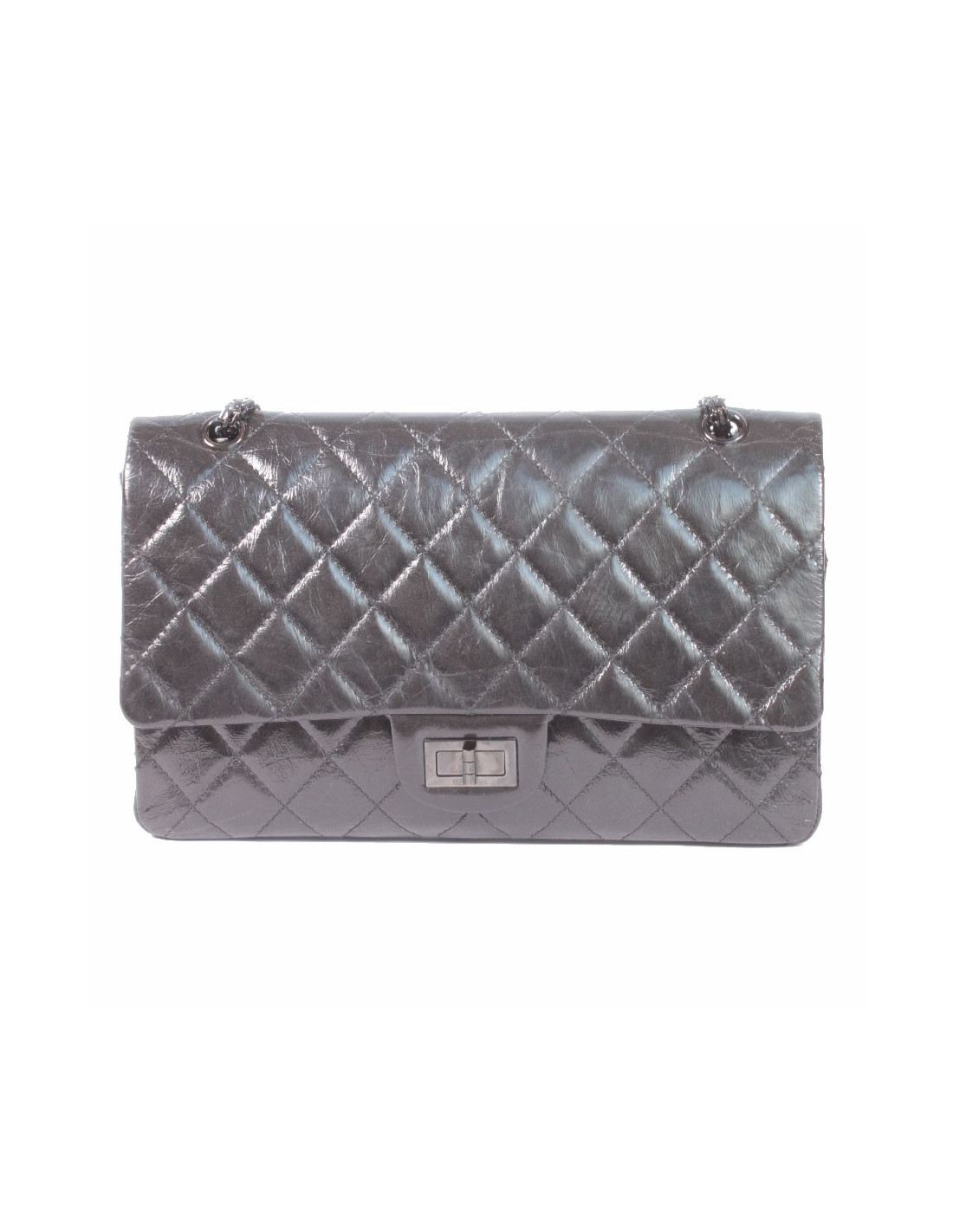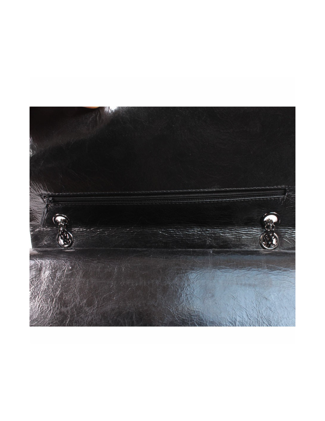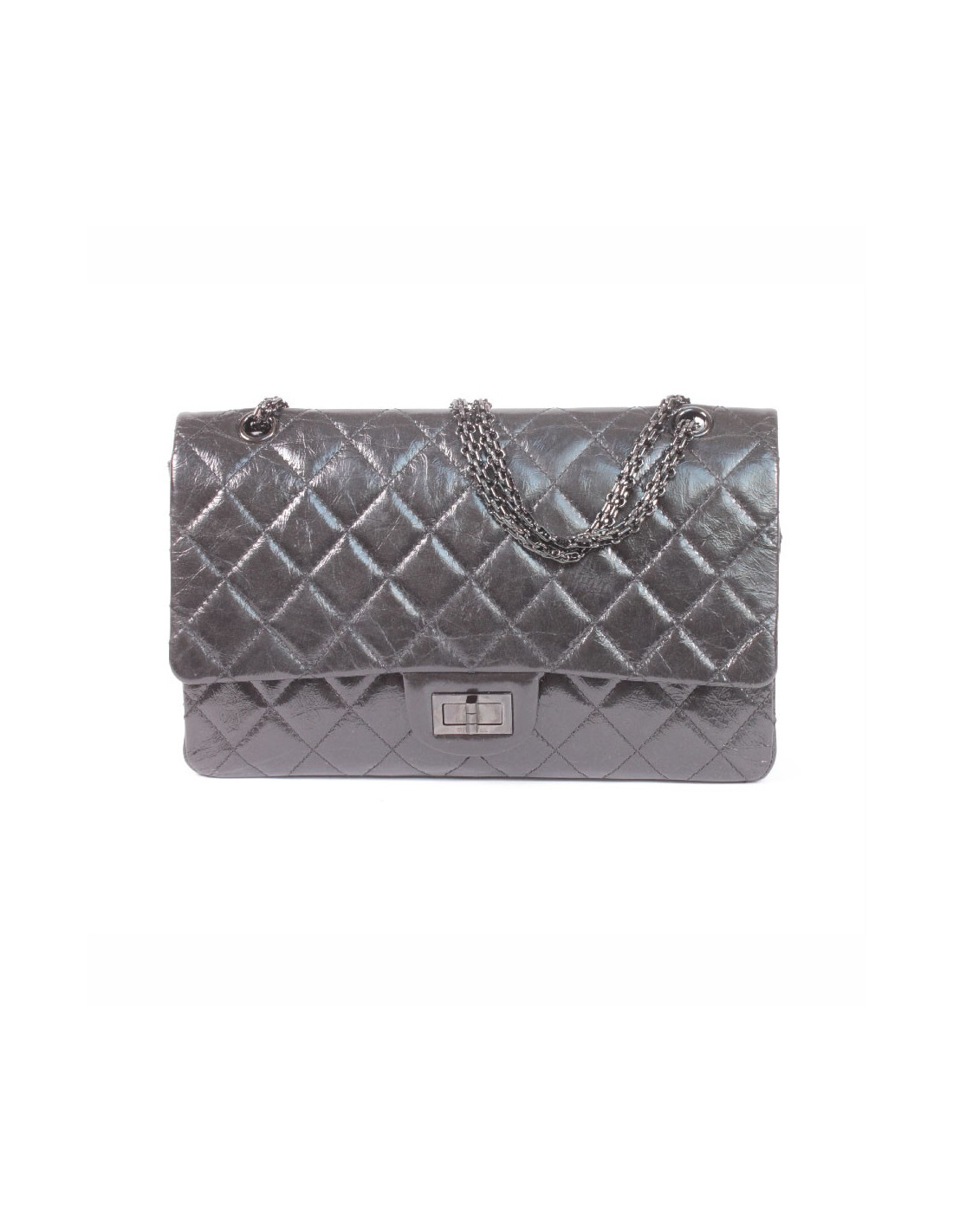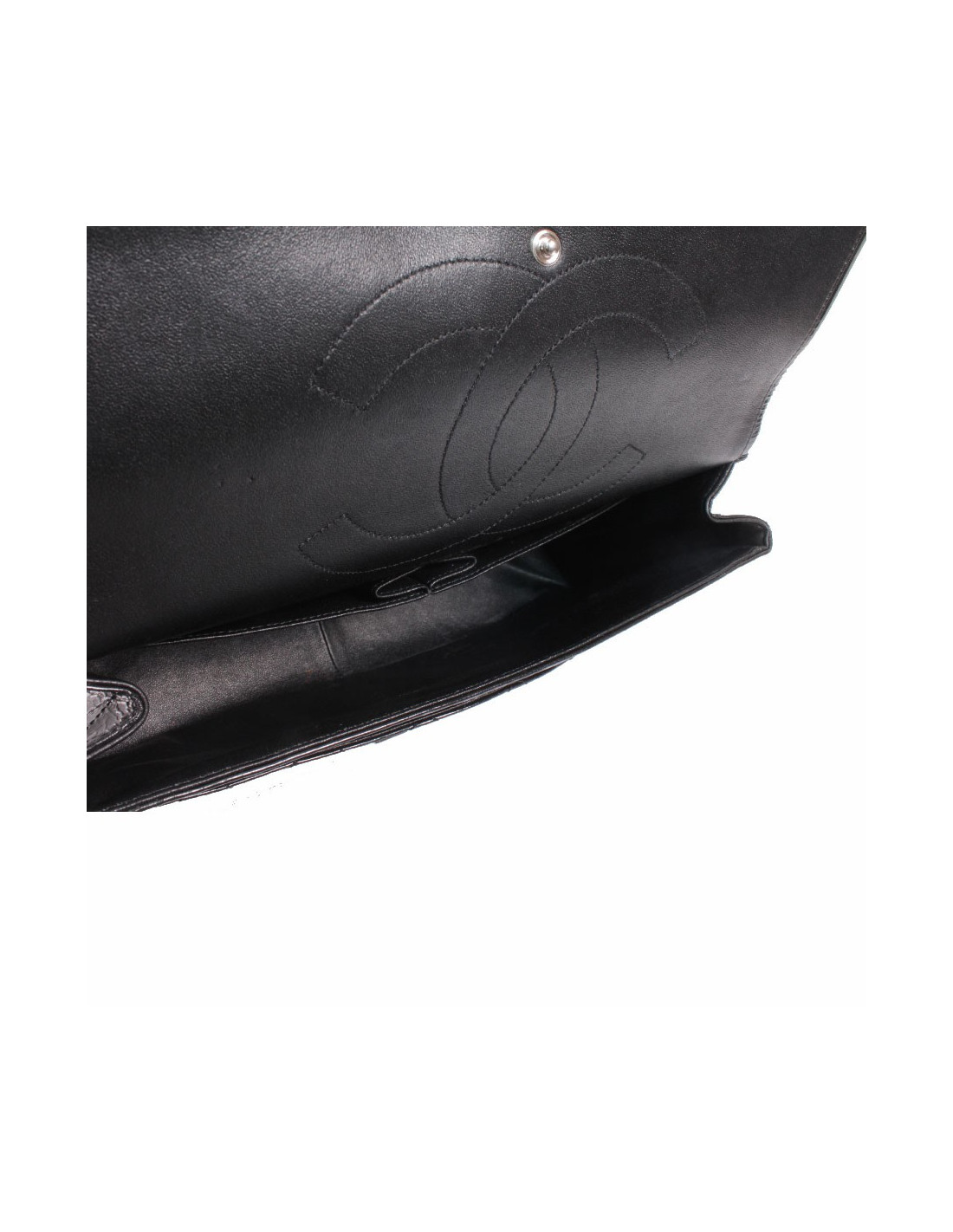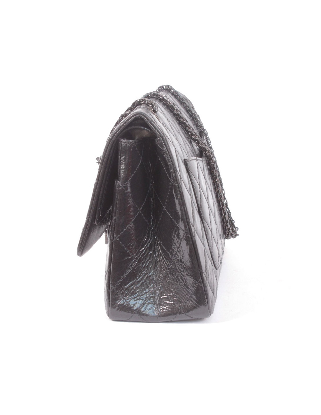 Série Limitée. Sac jumbo 2.55 Chanel, en cuir vieilli noir verni semi mat. "So Black". Il a un double rabat et l'intérieur est entièrement doublé en cuir noir.