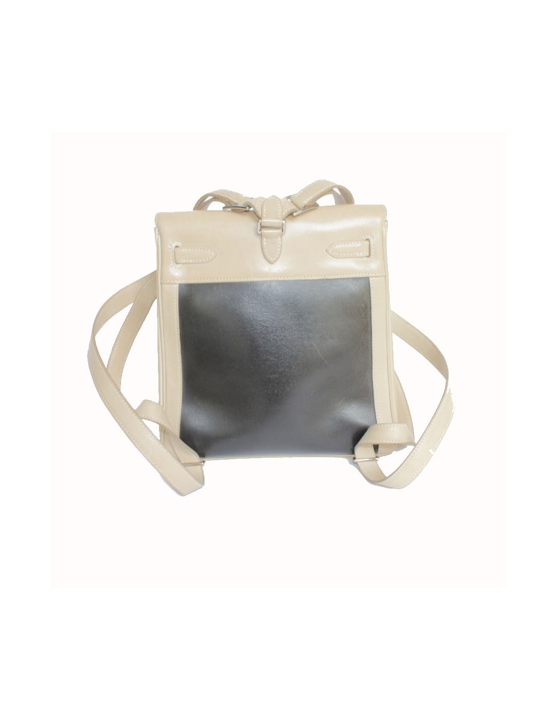 Sac à dos Backpack, Kelly Hermès, bicolore en cuir d'agneau et Amazonia: matériau technique : sève extraite d'un arbre d'Amazonie. Bijouterie argenté. L'intérieur est en cuir et toile avec une poche.