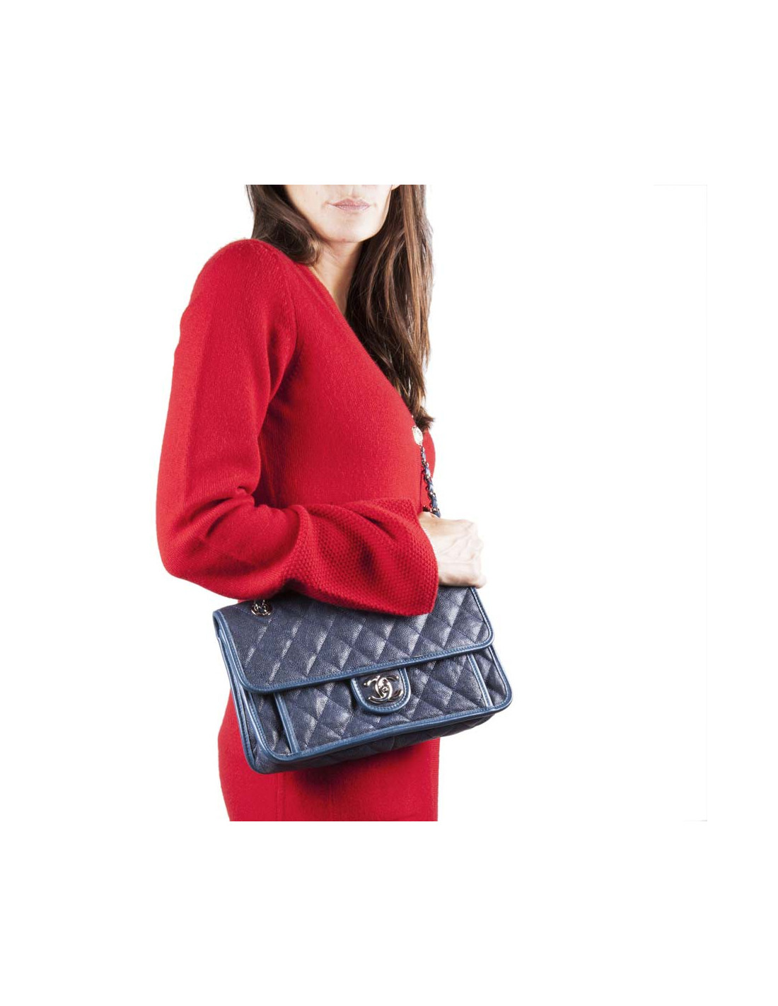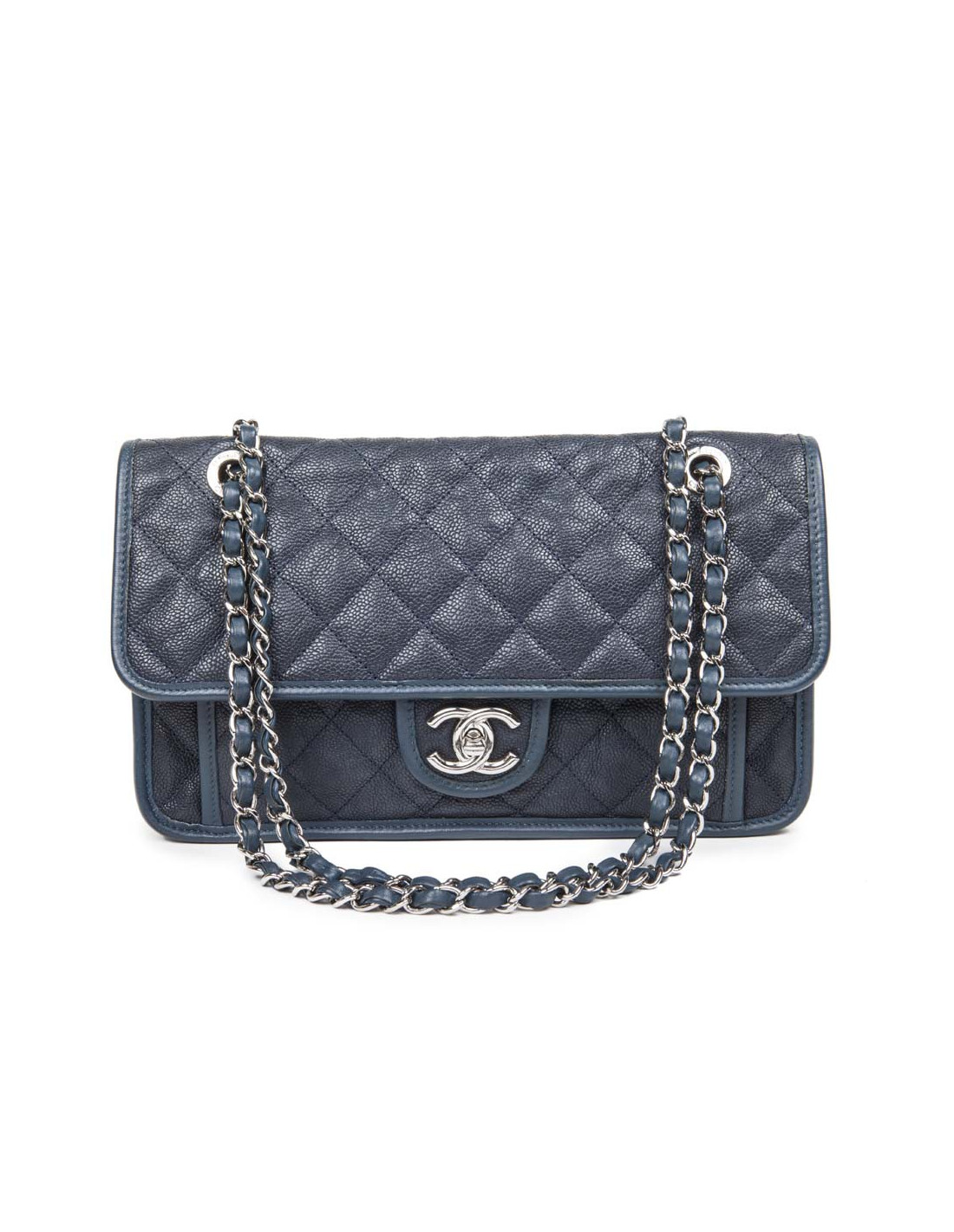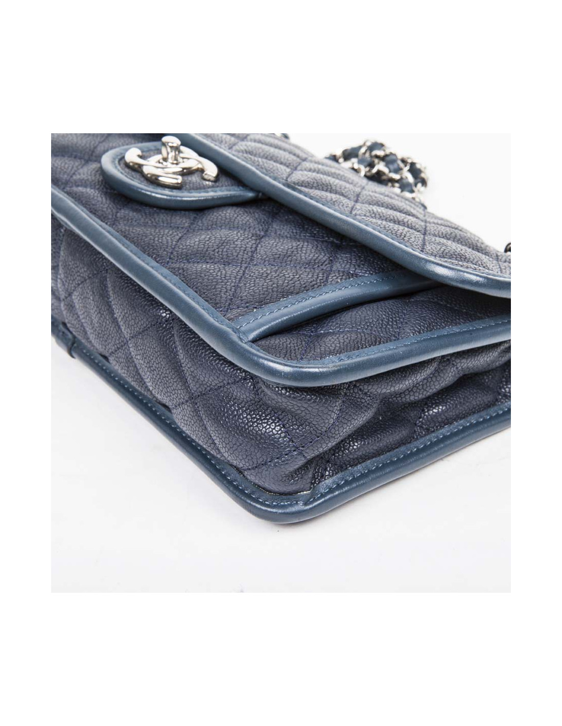 Sac CHANEL cuir matelassé grainé bleu