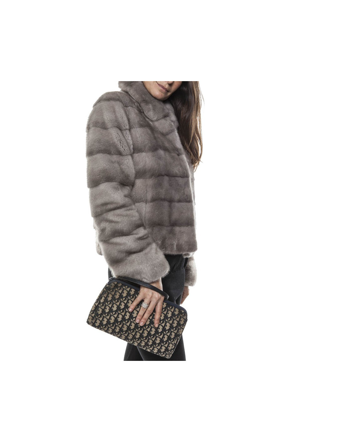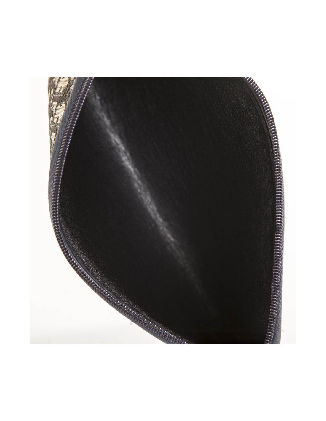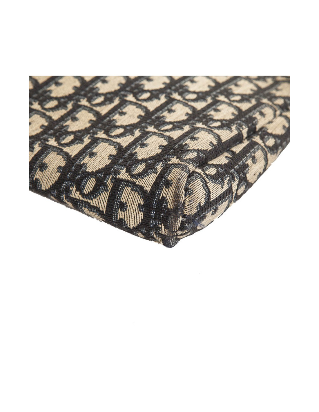 Pochette Dior en toile Dior oblique bleu gris, elle se ferme par un zip et se tient au poignet à l’aide d’une dragonne en cuir bleu. L’intérieur est en toile bleu marine. Usure d’usage dû à son age.