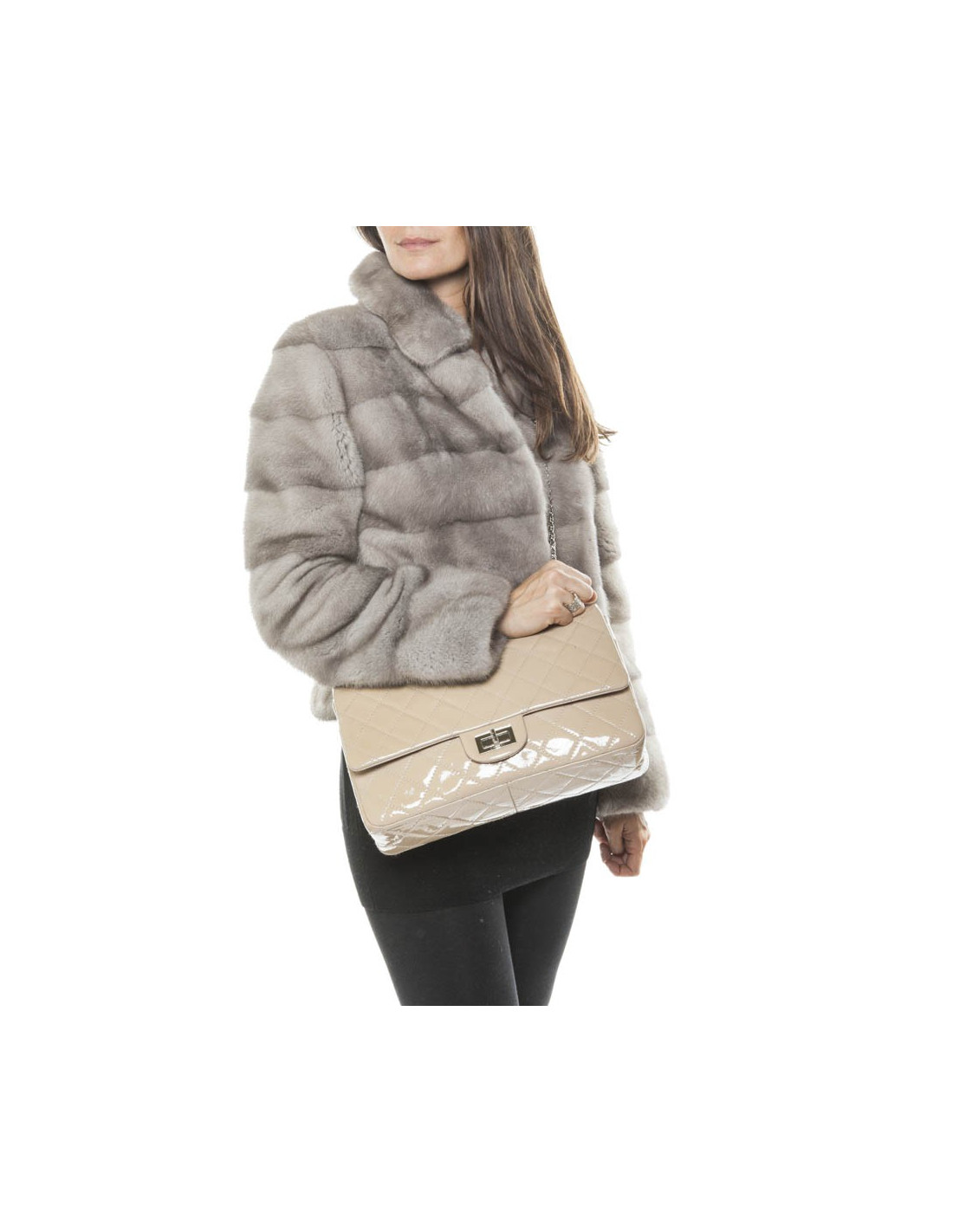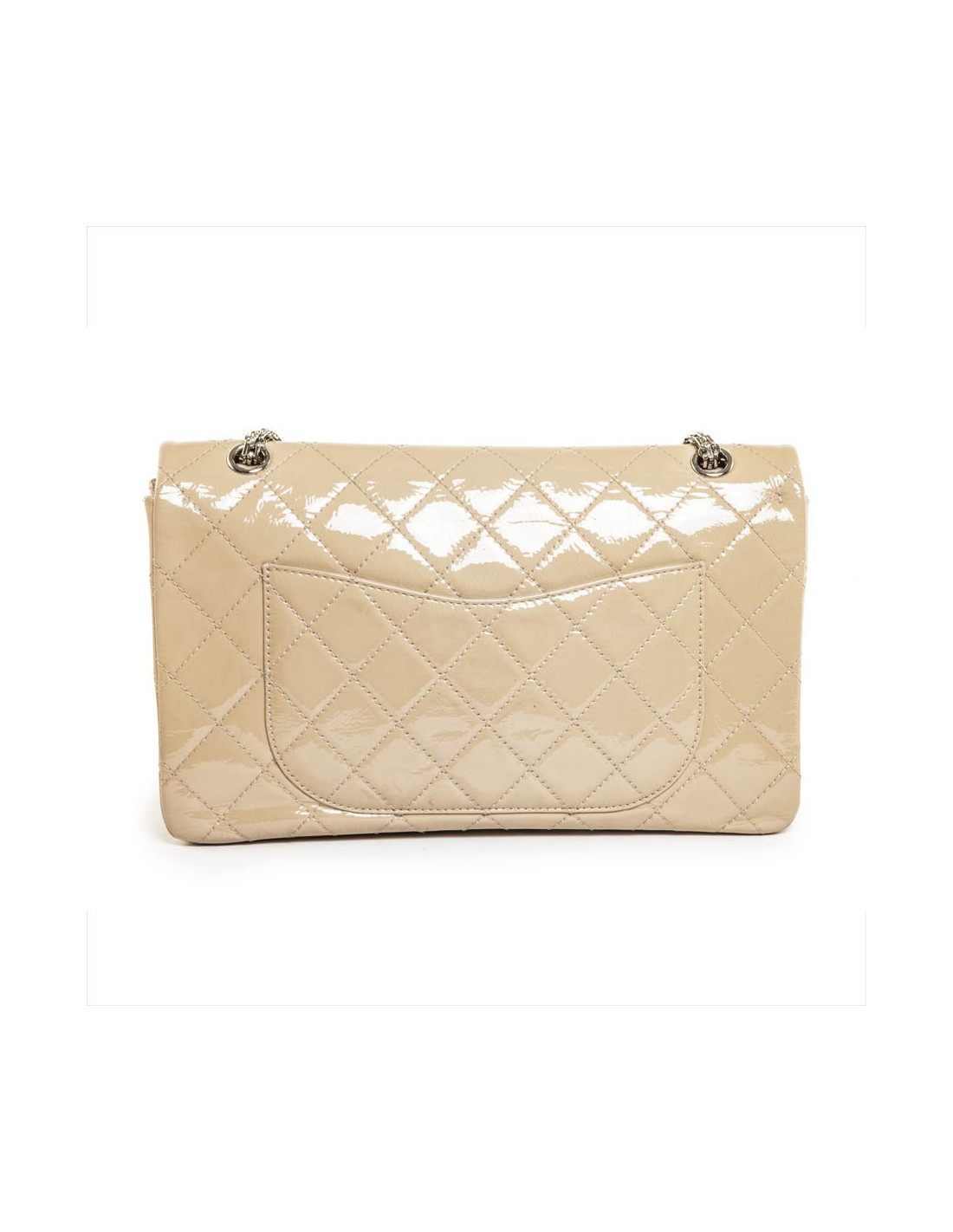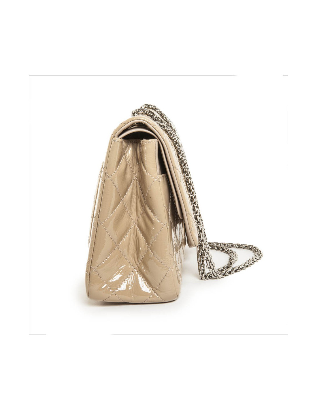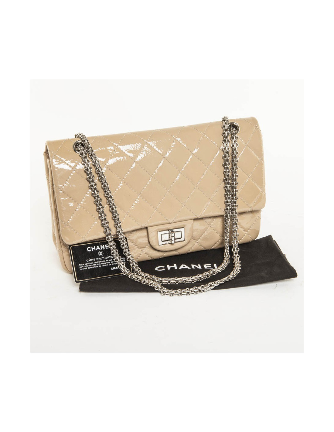 Sac 2.55 CHANEL cuir verni beige bijouterie argent