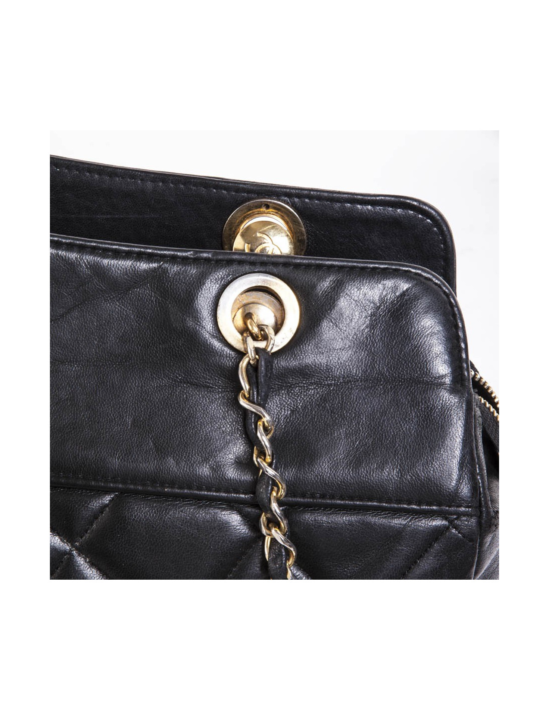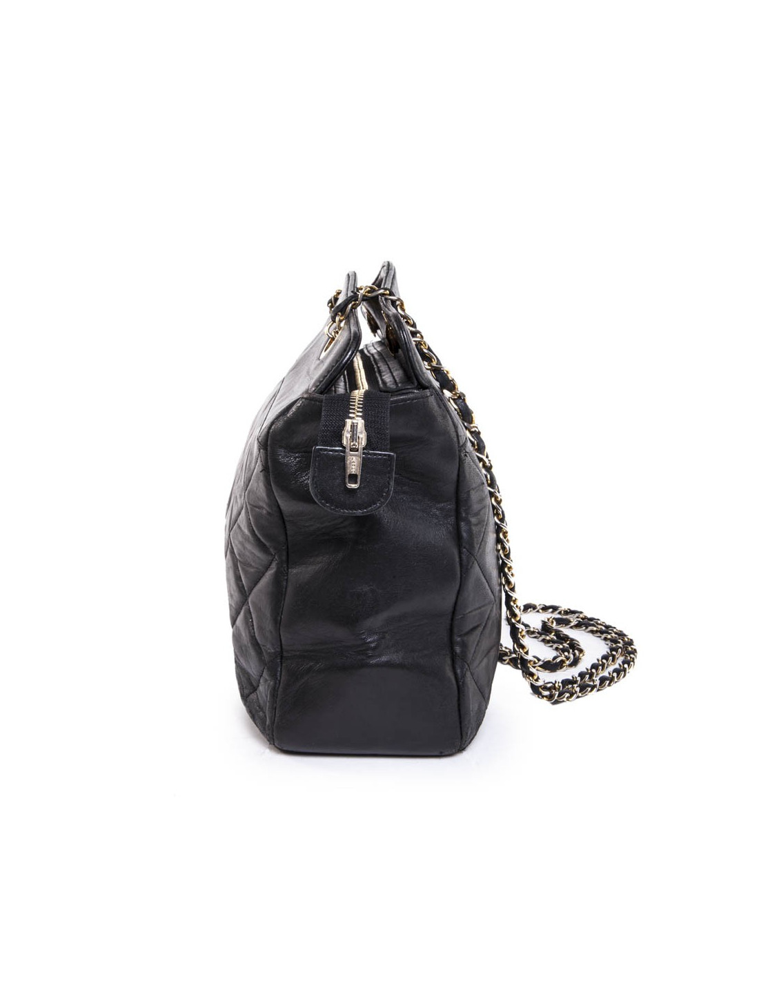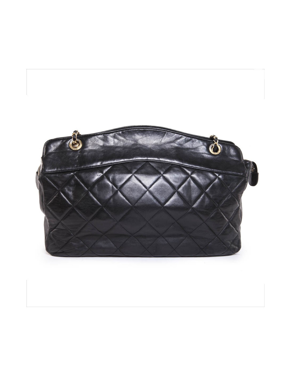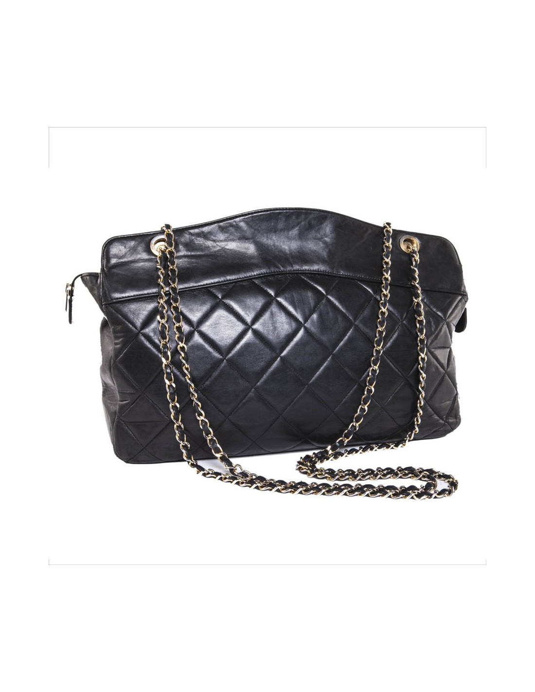 Sac cabas CHANEL vintage cuir matelassé noir