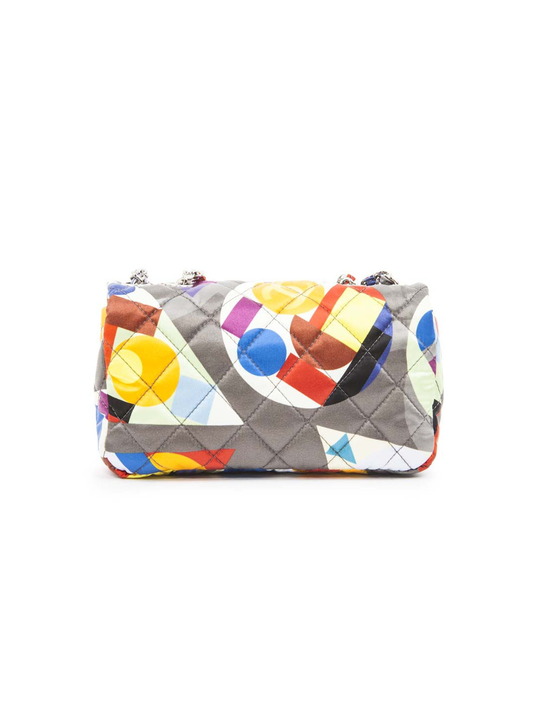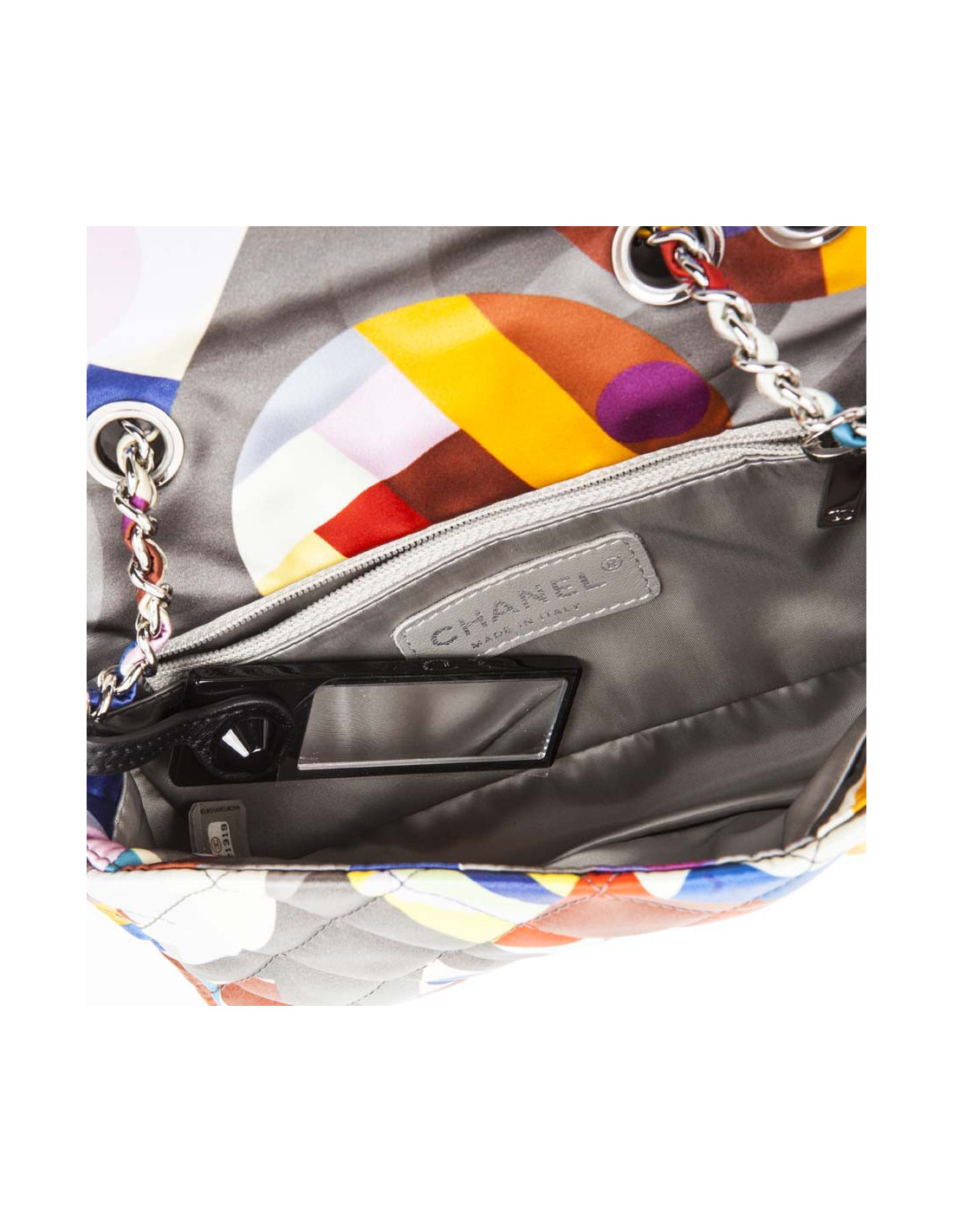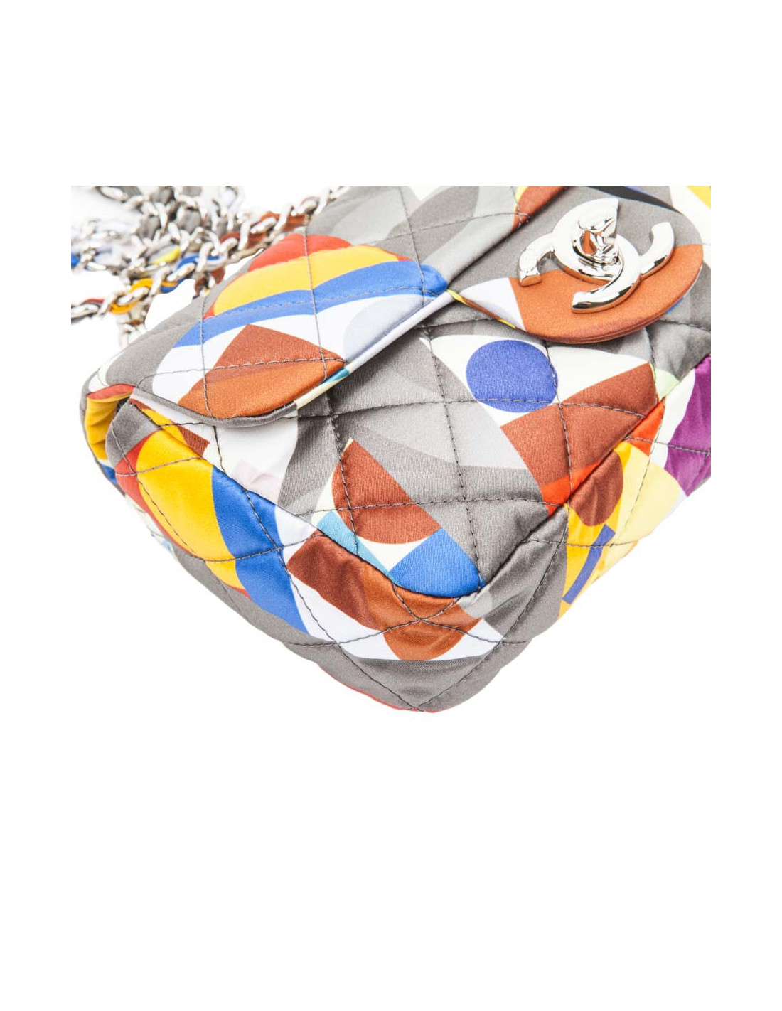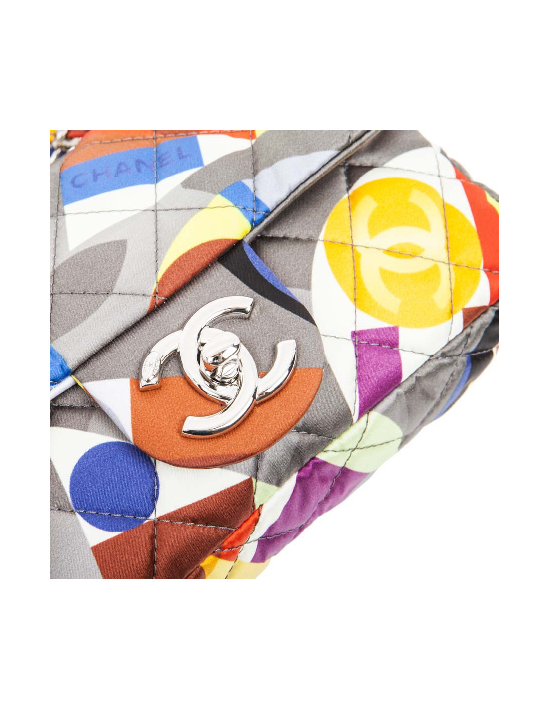 Sac de la Maison Chanel en soie géométriques multicolores. Bijouterie argentée. Fermoir CC. Porté crossover ou à l'épaule. Hologramme : 2002.... pas de carte d'authenticité. Etat neuf.