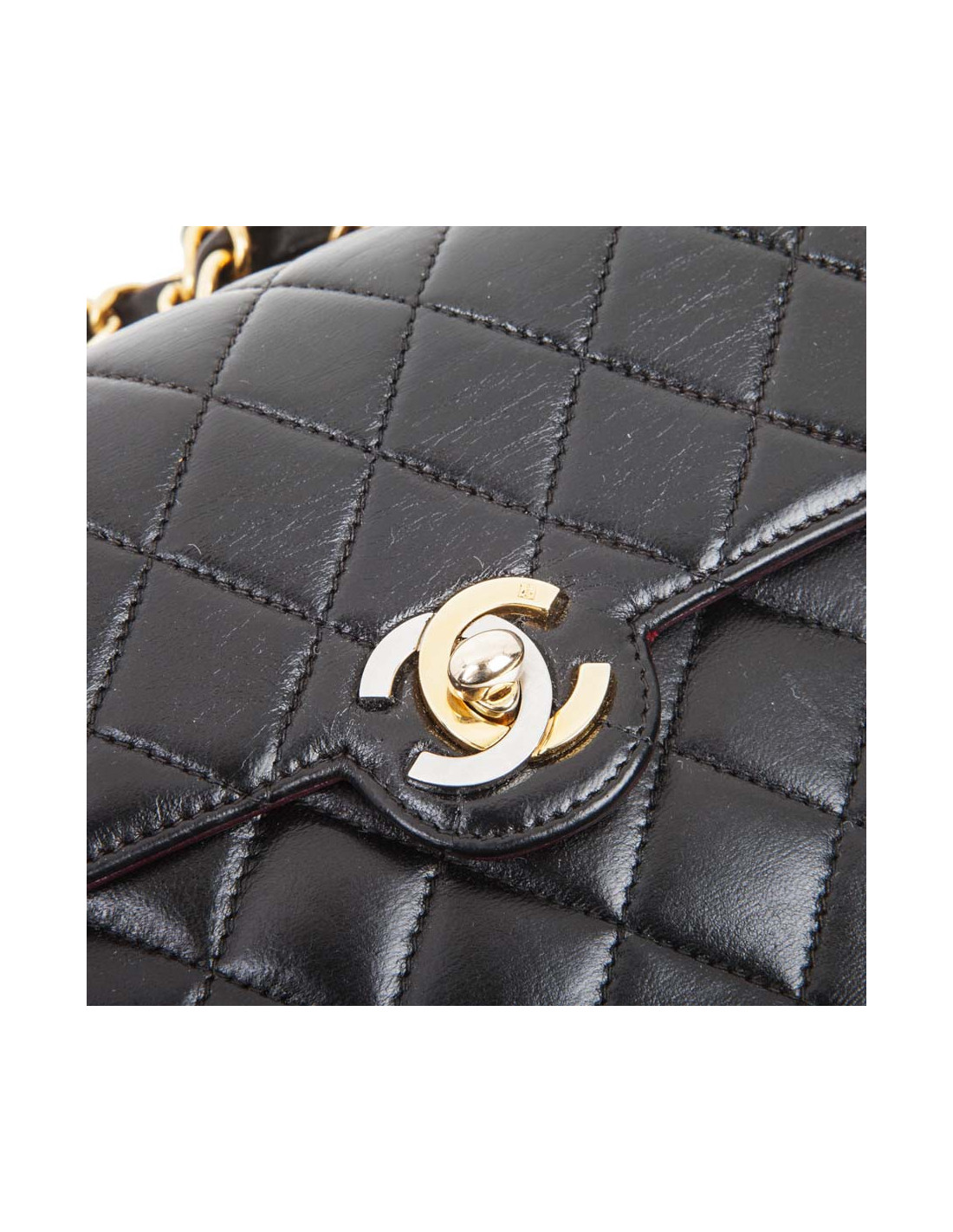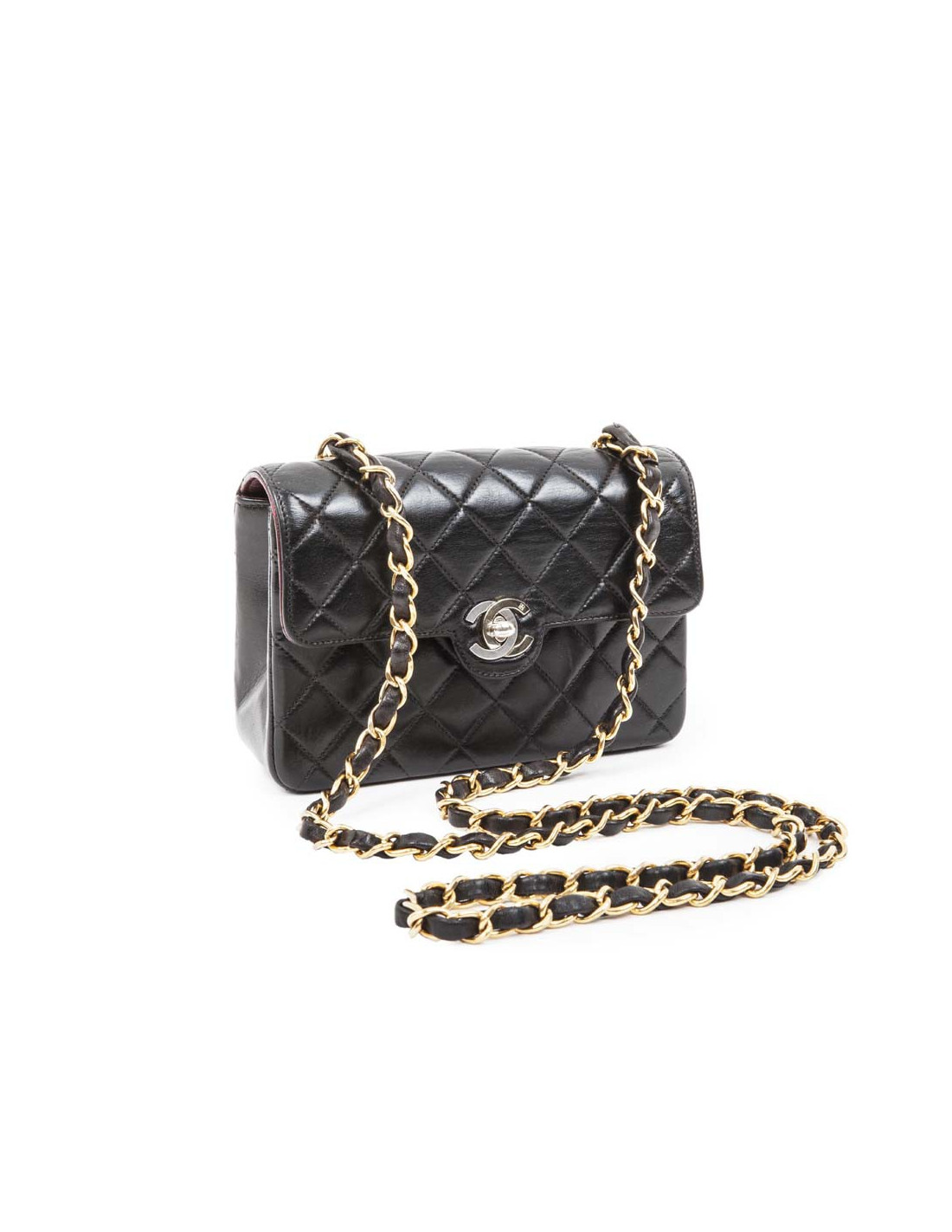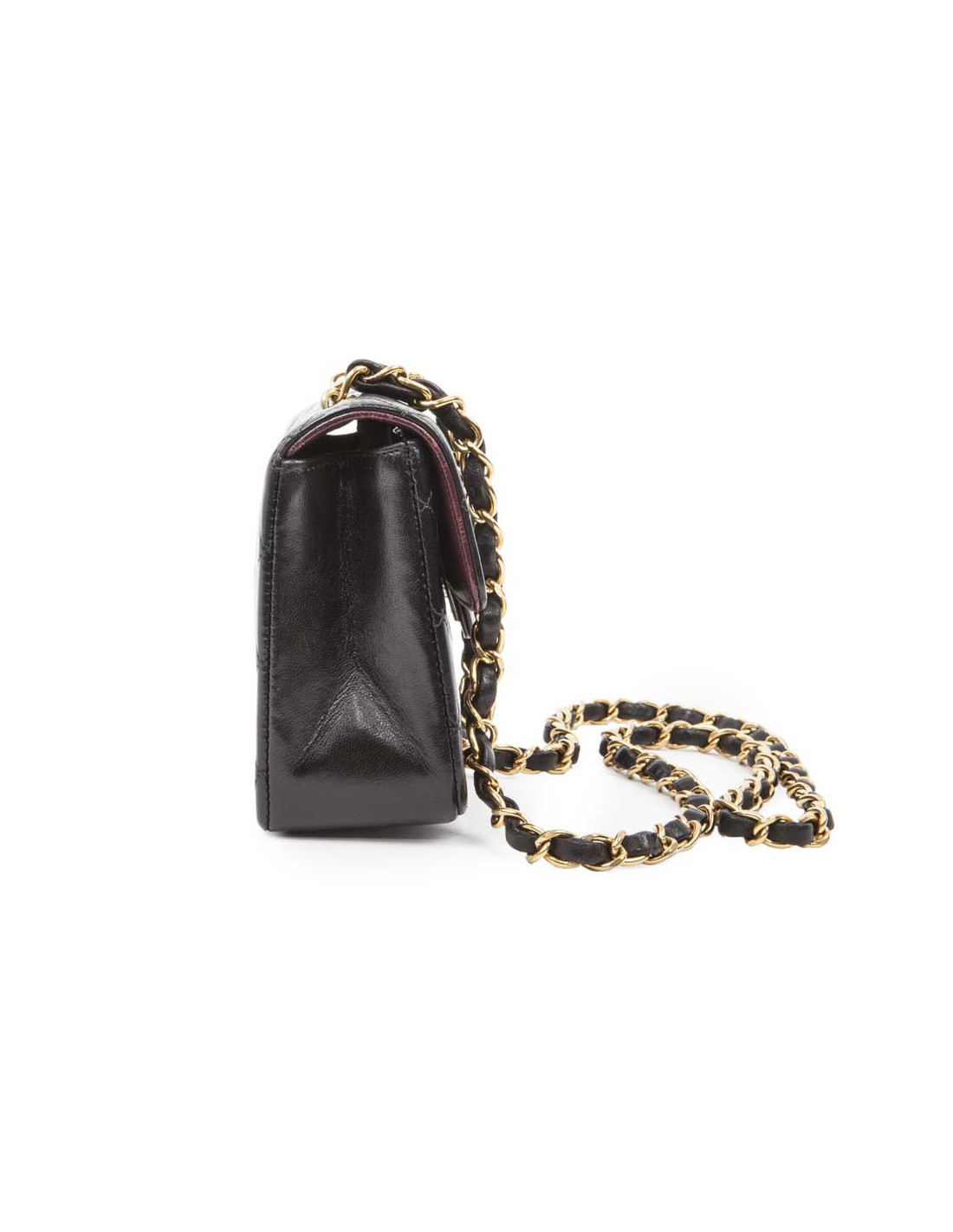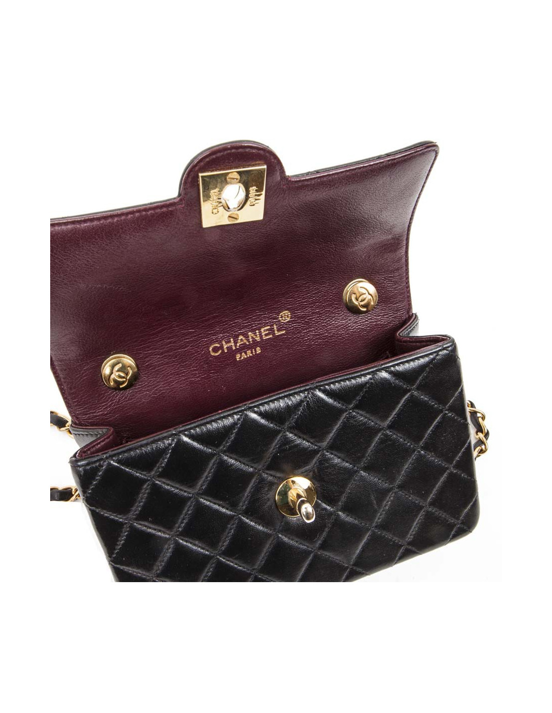 Mini sac CHANEL cuir d'agneau lisse matelassé noir