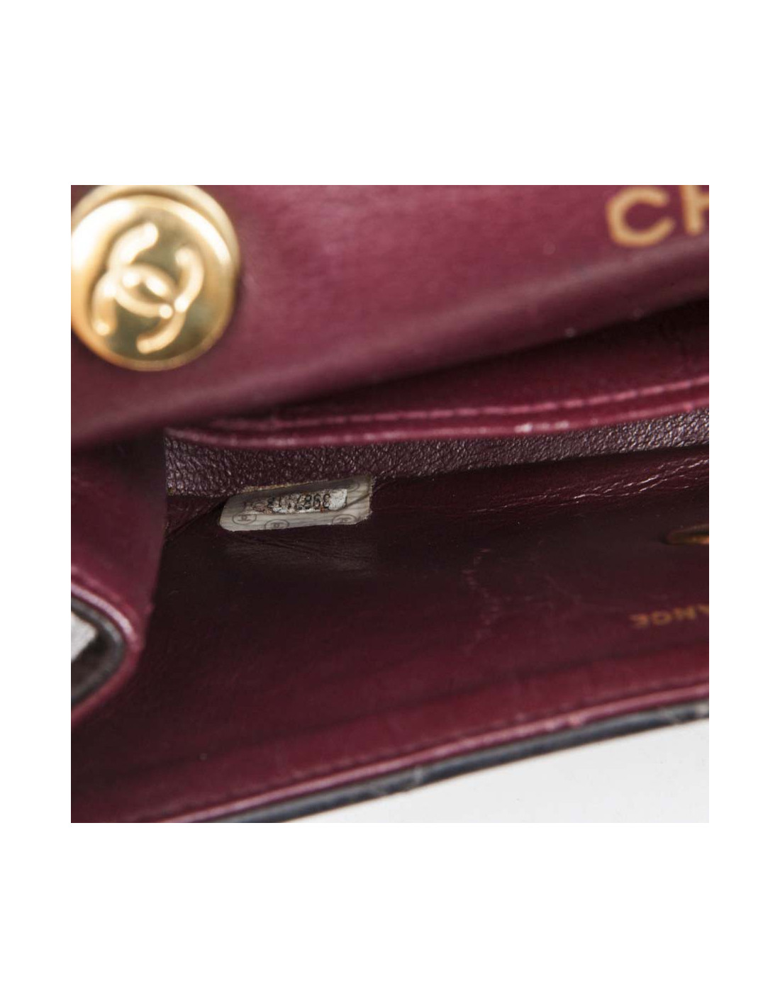 Mini sac en cuir matelassé noir de la Maison Chanel. Modèle Haute Couture : Fermoir CC or et argent. Bijouterie dorée. Porté épaule ou en crossover. L'intérieur est en cuir bordeaux. Hologramme : 3987... pas de carte d'authenticité. En très bon état.