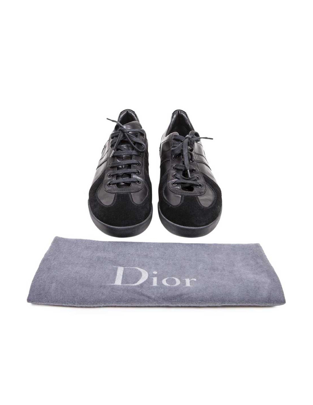 Sneakers homme T 44 CHRISTIAN DIOR en cuir lisse et veau velours noir à lacets.