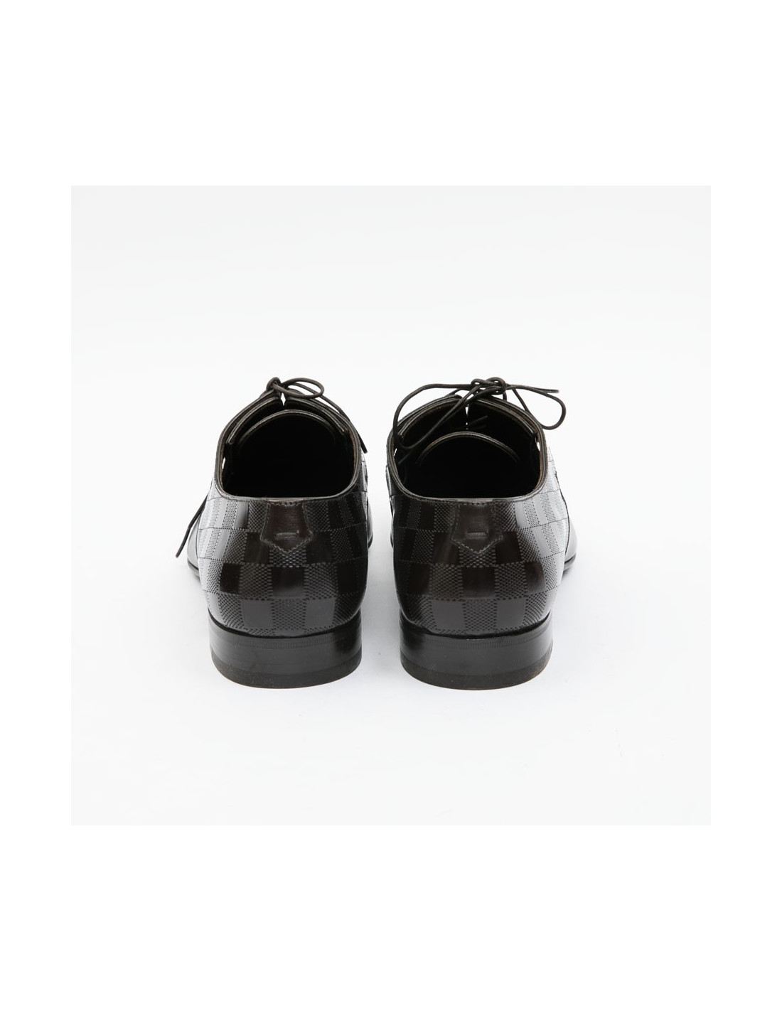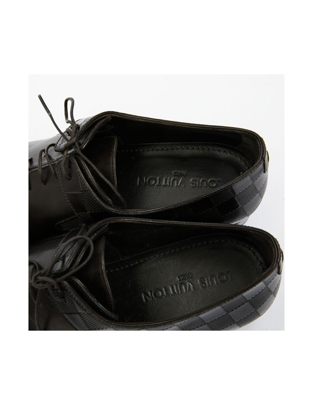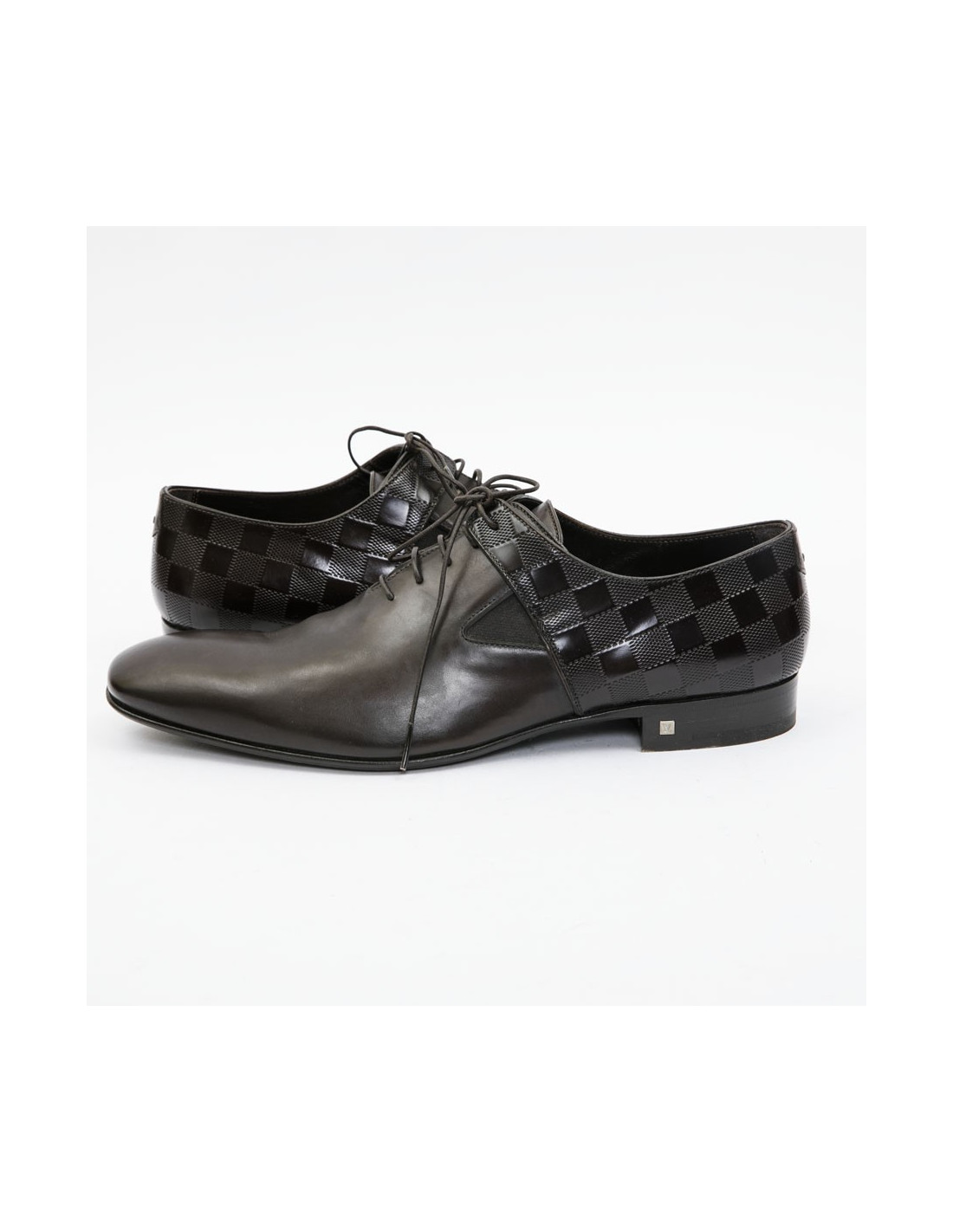 Chaussures "Delaware Richelieu" Louis Vuitton en cuir marron foncé à lacets, taille 45,5 FR. Cuir de veau damier et cuir de veau lisse sur l'avant.