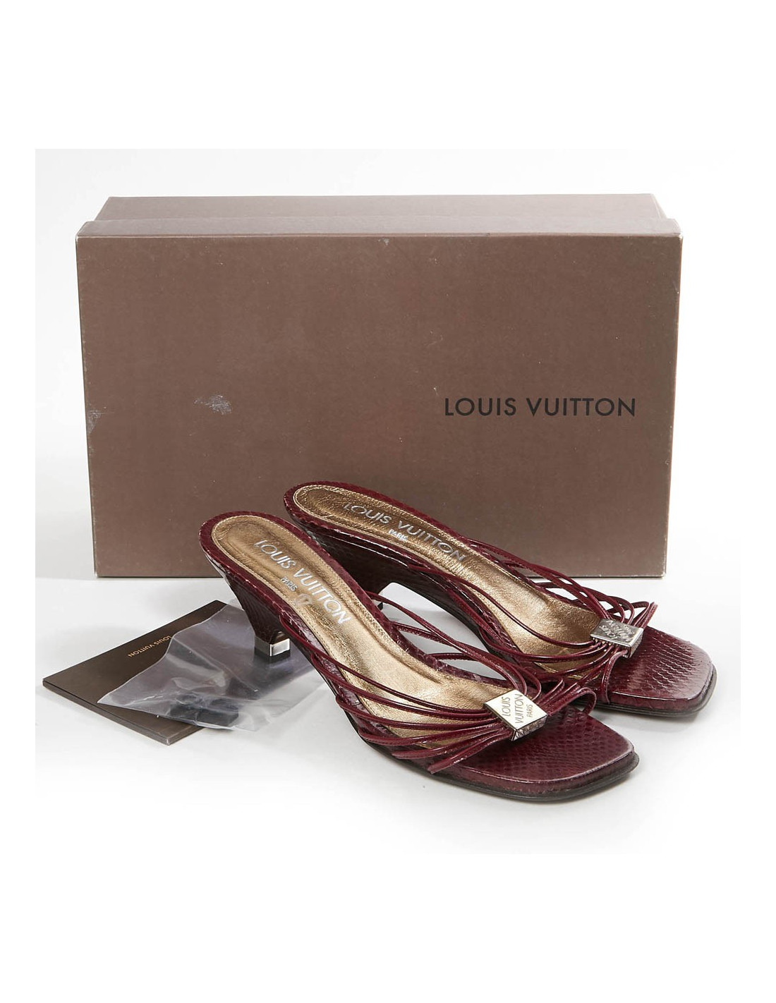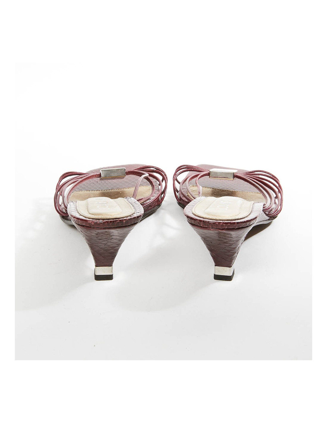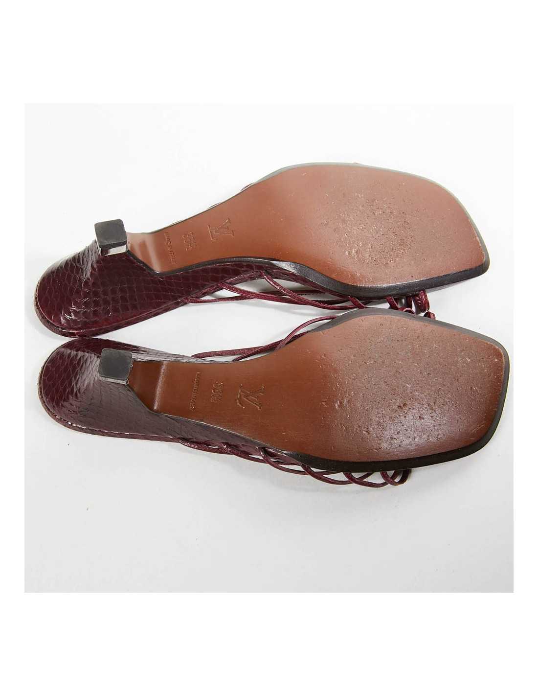 Elles ont été fabriquées en Italie. En très bon état. Taille 36.5. Matière python bordeaux. Il y a le petit livret et une paire de talonnettes de remplacement.