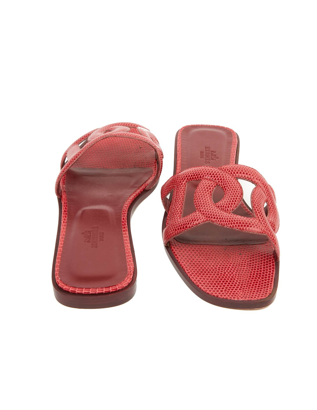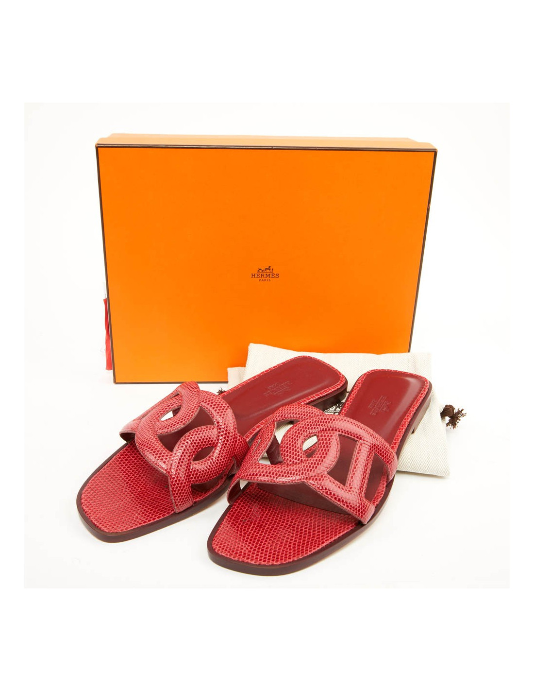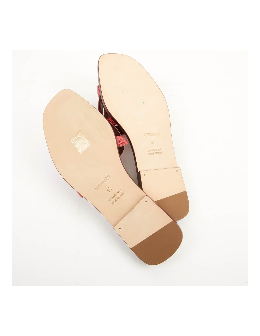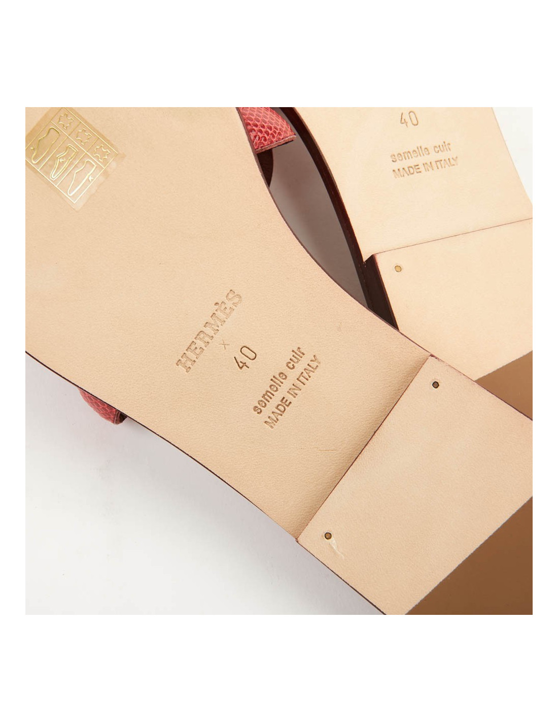 Sandales Omaha HERMES T 40 lézard brillant carmin