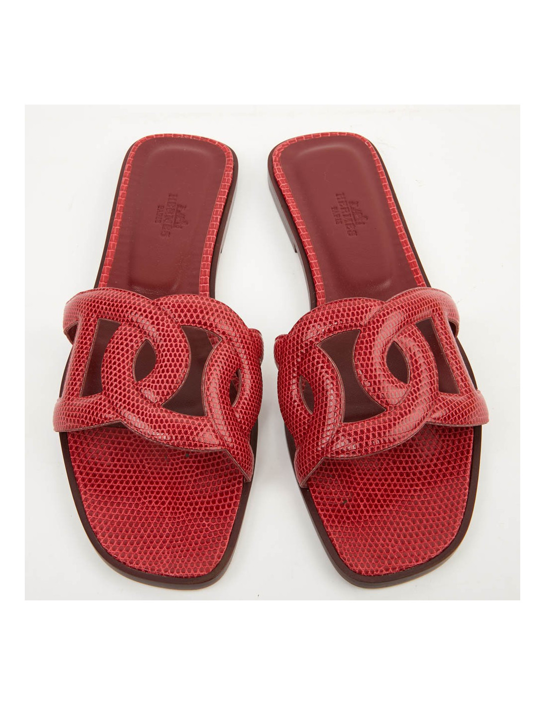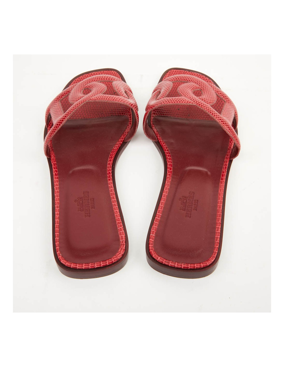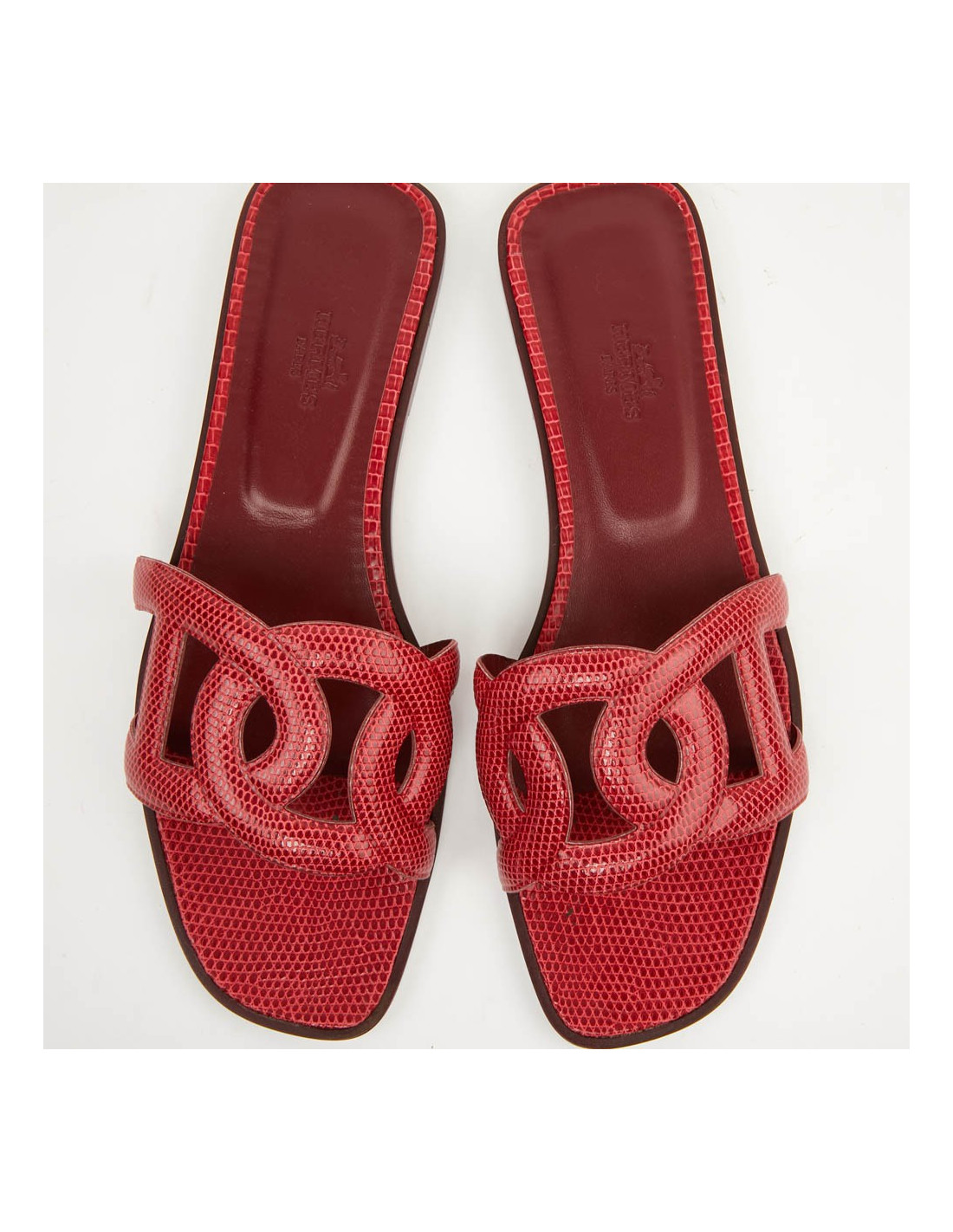 Sandales Omaha HERMES T 40 lézard brillant carmin