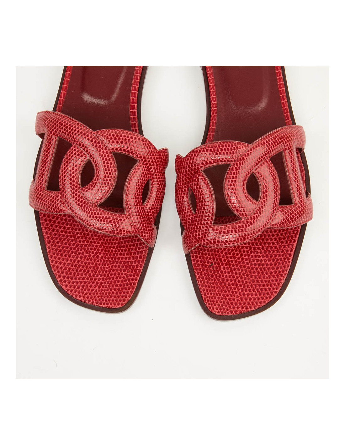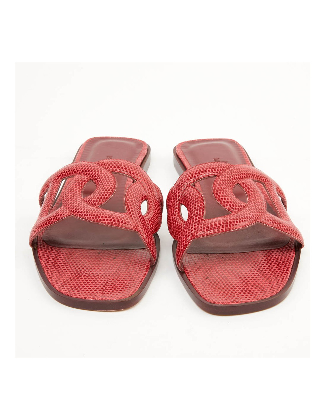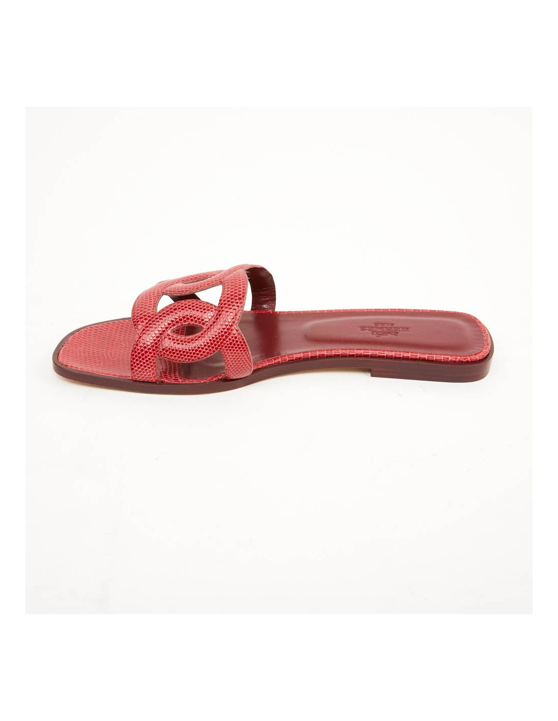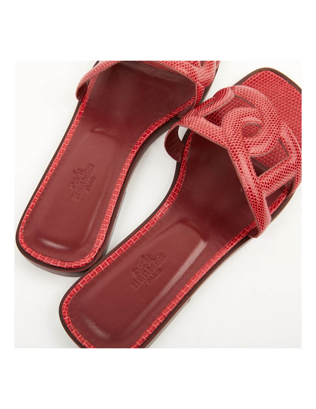 Sandales Omaha HERMES T 40 lézard brillant carmin