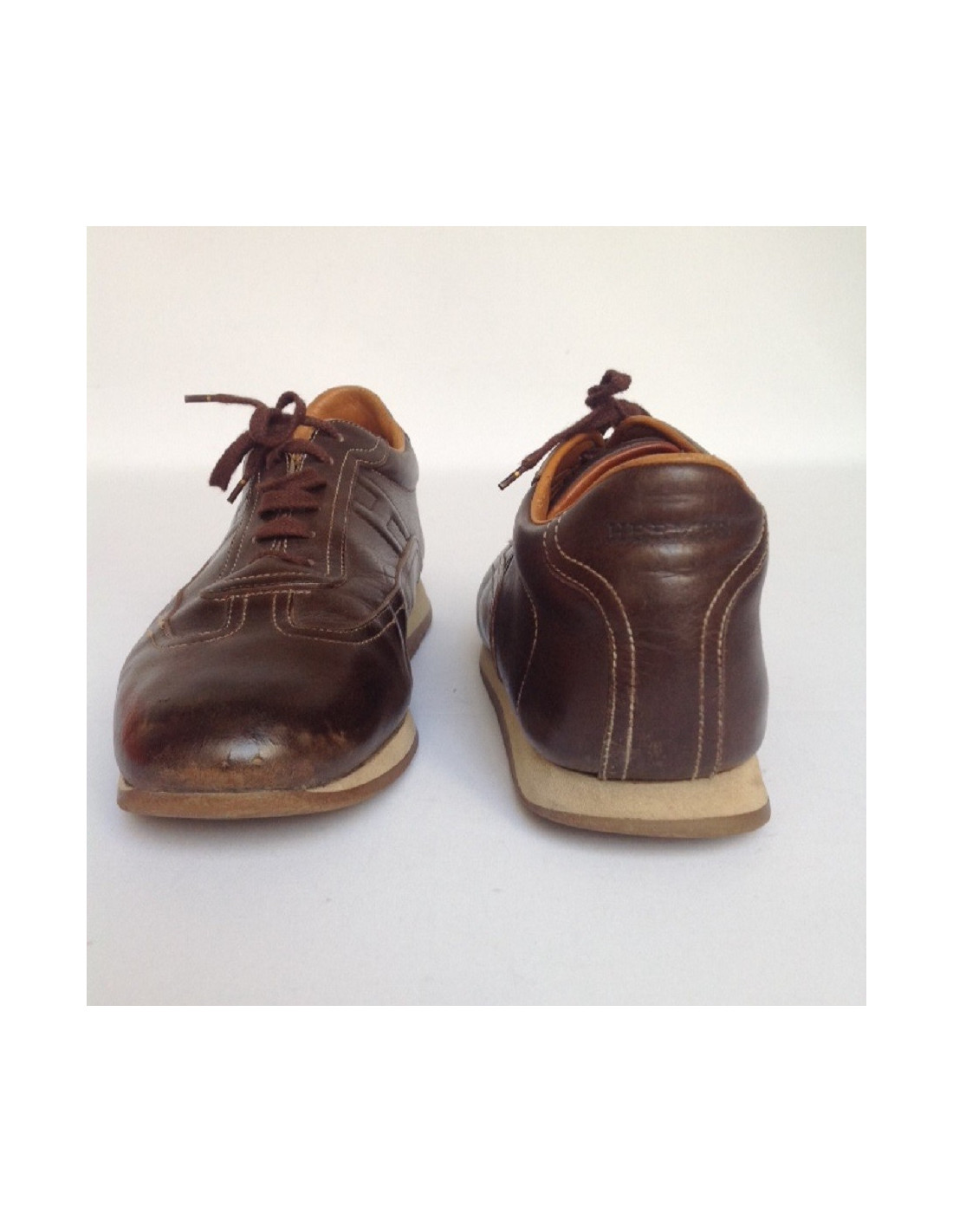 Baskets en cuir marron de la maison Hermès T43,5 pour homme. En bon état. Le cuir est légèrement usé par l'utilisation de tous les jours.